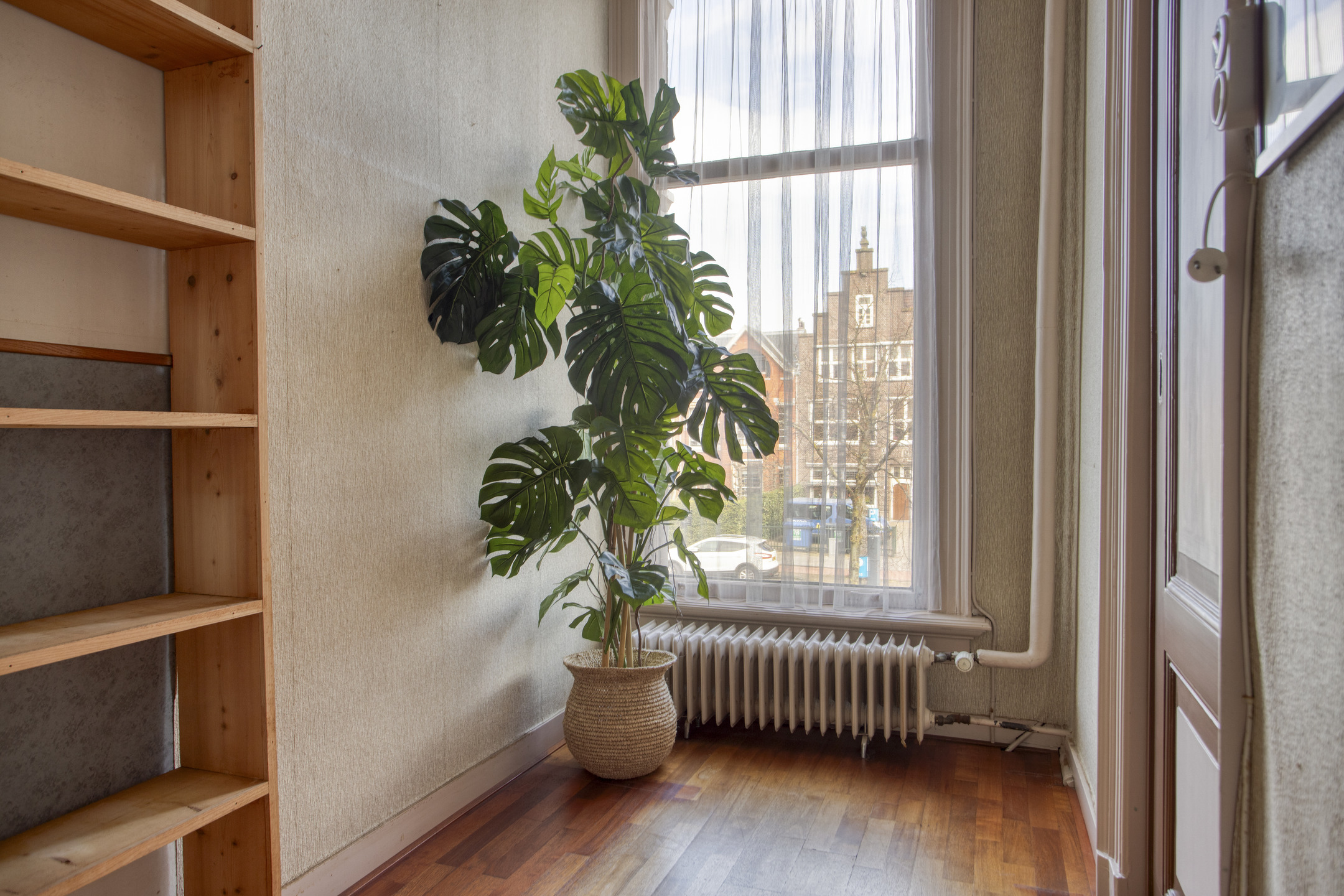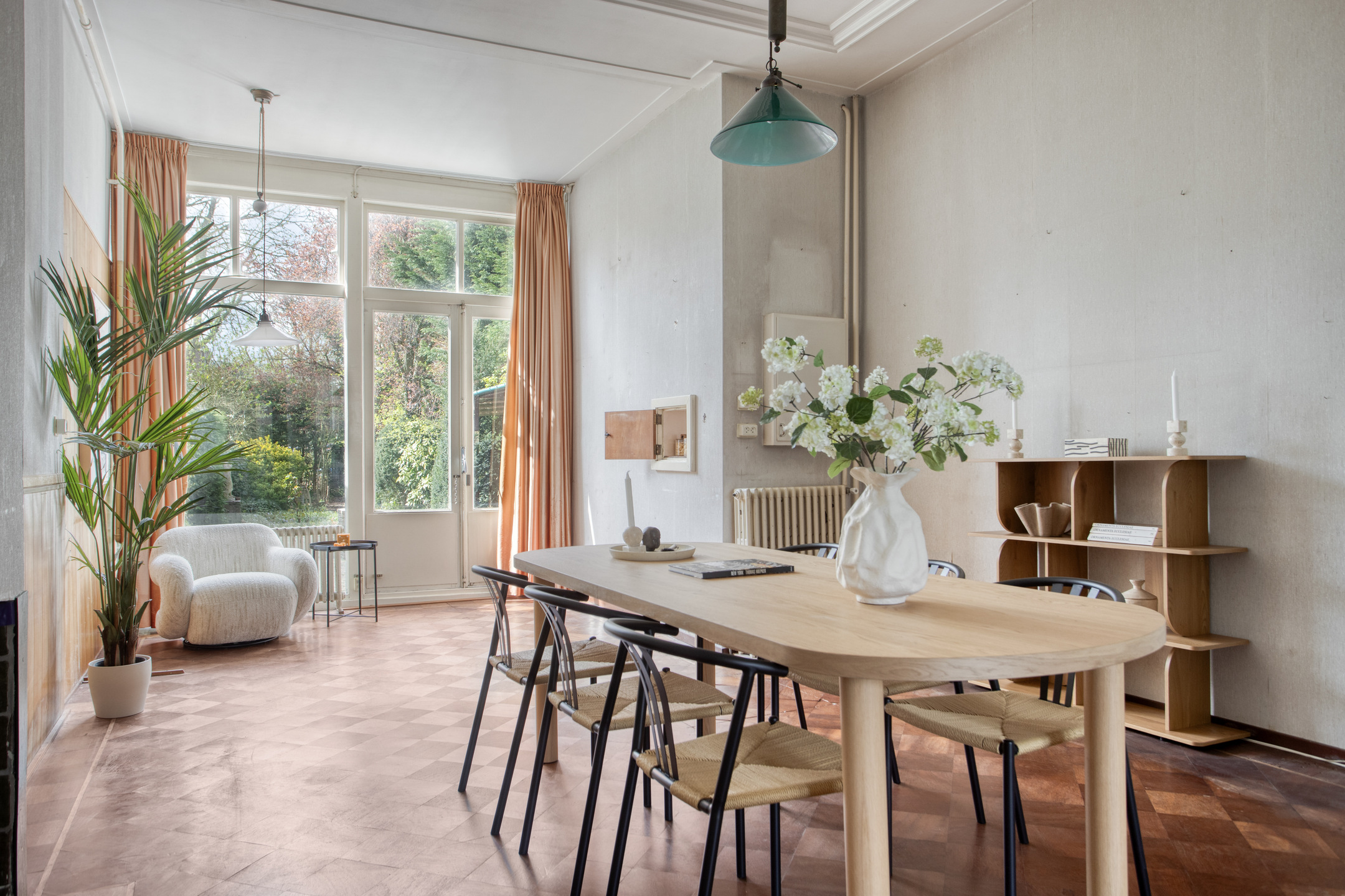 La casa adosada en Leiden, con un profundo jardín orientado al suroeste, irradia dignidad arquitectónica a escasos pasos del corazón histórico de la ciudad. Esta residencia debe su origen a finales del siglo XIX, época en la que surgieron viviendas señoriales en las afueras de la ciudad, equilibrando la proximidad al centro cultural de Leiden con las cualidades reparadoras de los espacios al aire libre.