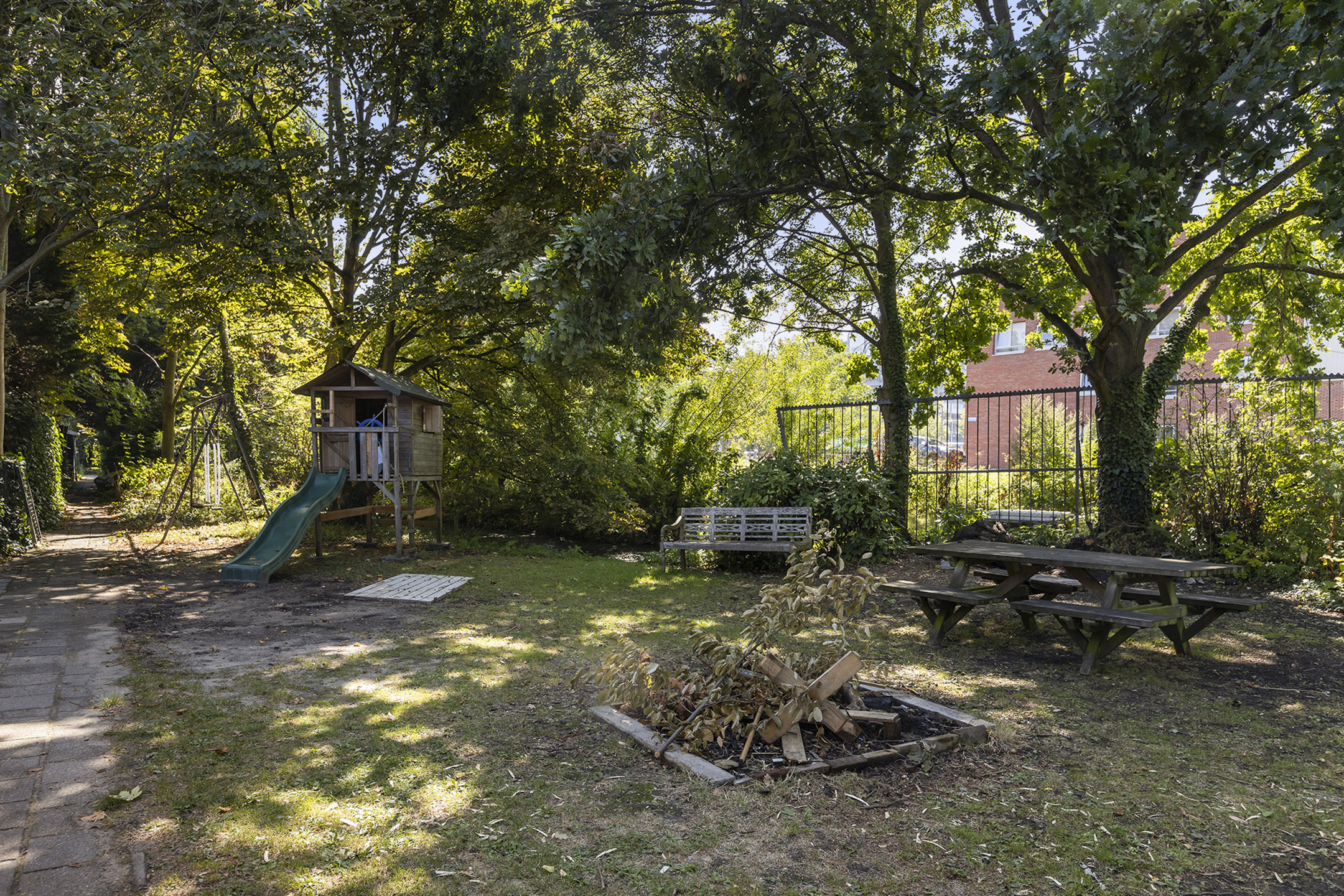 En el exterior, el profundo jardín trasero orientado al suroeste asegura abundante luz natural, aunque ofrece zonas de sombra proporcionadas por árboles maduros. Más allá, se extiende una parcela privada y cerrada de 1.318 m² de uso compartido con los vecinos, espacio pensado para el juego de los niños, reuniones y acceso al agua. Todos los servicios esenciales, colegios, transporte, parques y atractivo urbano se encuentran cerca. Esta casa adosada, catalogada como monumento municipal, conserva carácter histórico, cuenta con acristalamiento doble parcial, calefacción central y pertenencia a la asociación de propietarios.