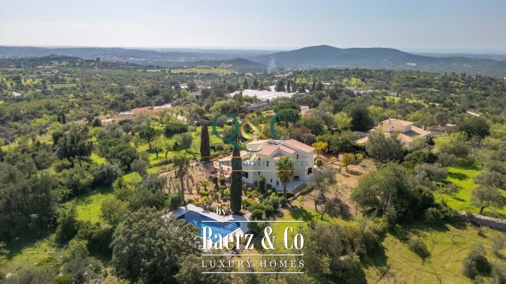 Villa Loulé ofrece una rara sensación de calma a solo cinco minutos del animado pueblo de Loule, con cautivadoras vistas al mar y al campo. Esta villa se asienta sobre una parcela de 6.720 m², rodeada de jardines consolidados y un ritmo único de espacios y luz natural. La vivienda, de 440 m², le acoge con una zona de estar y comedor de planta abierta, presidida por una chimenea y con acceso directo a una amplia terraza. La cocina es espaciosa y está equipada para el día a día. En la planta principal, la suite principal dispone de un generoso vestidor y está complementada por un baño familiar.