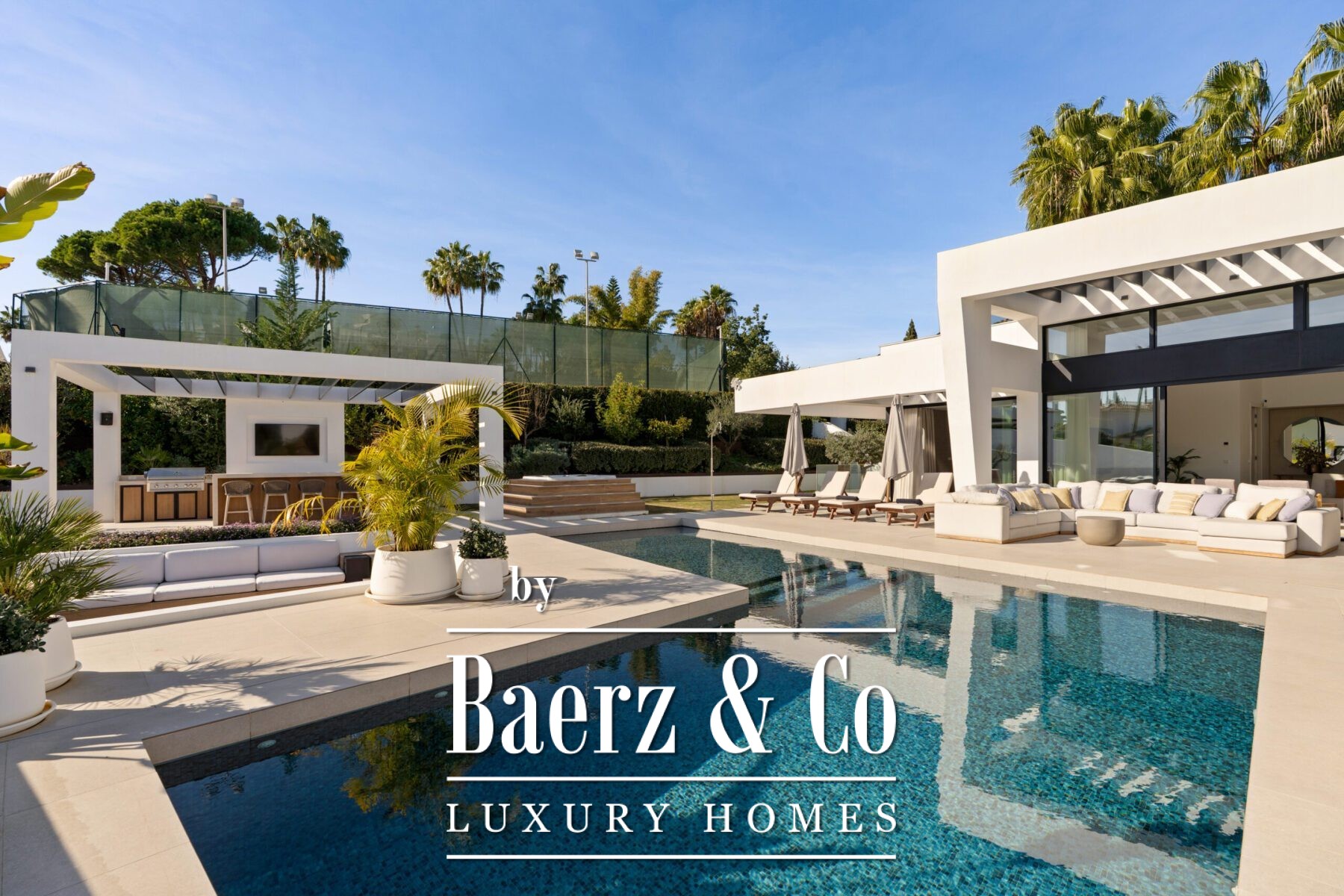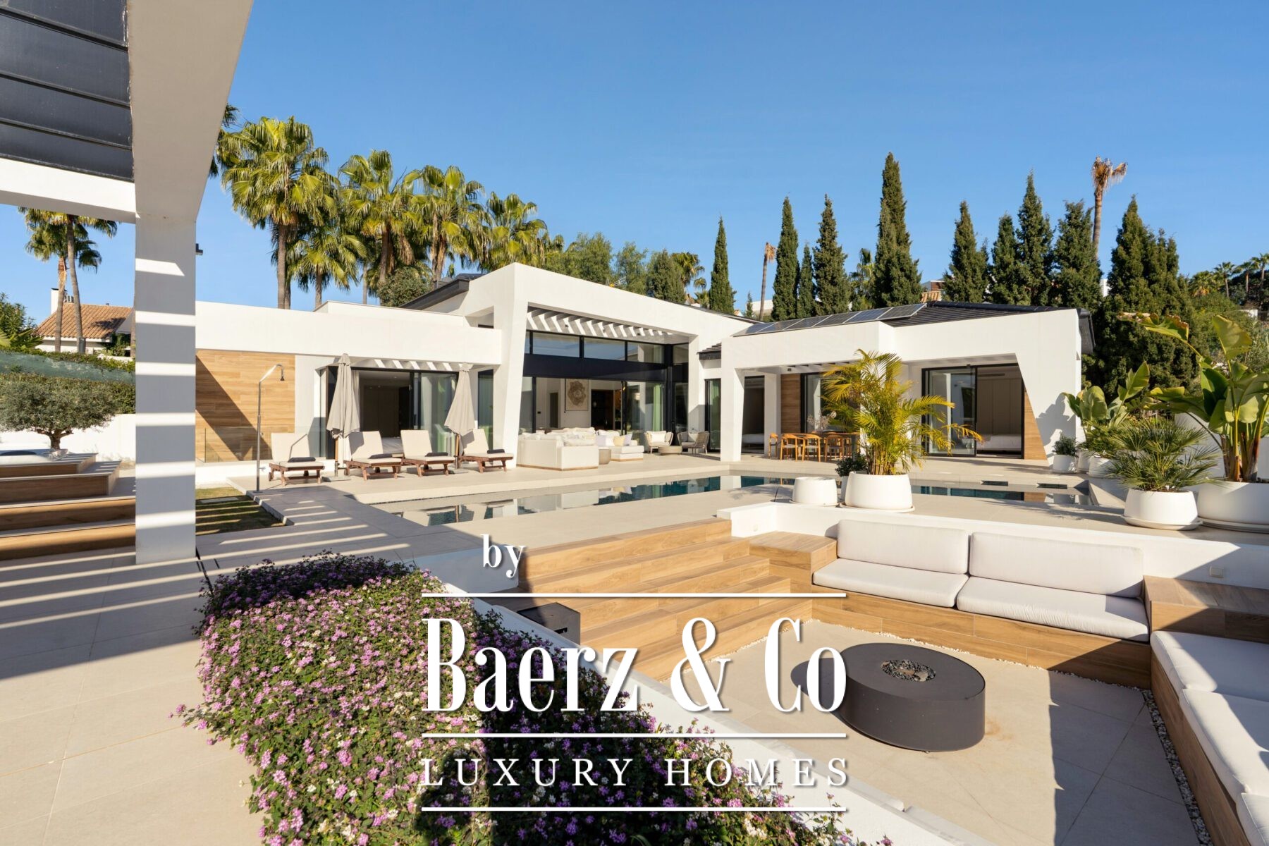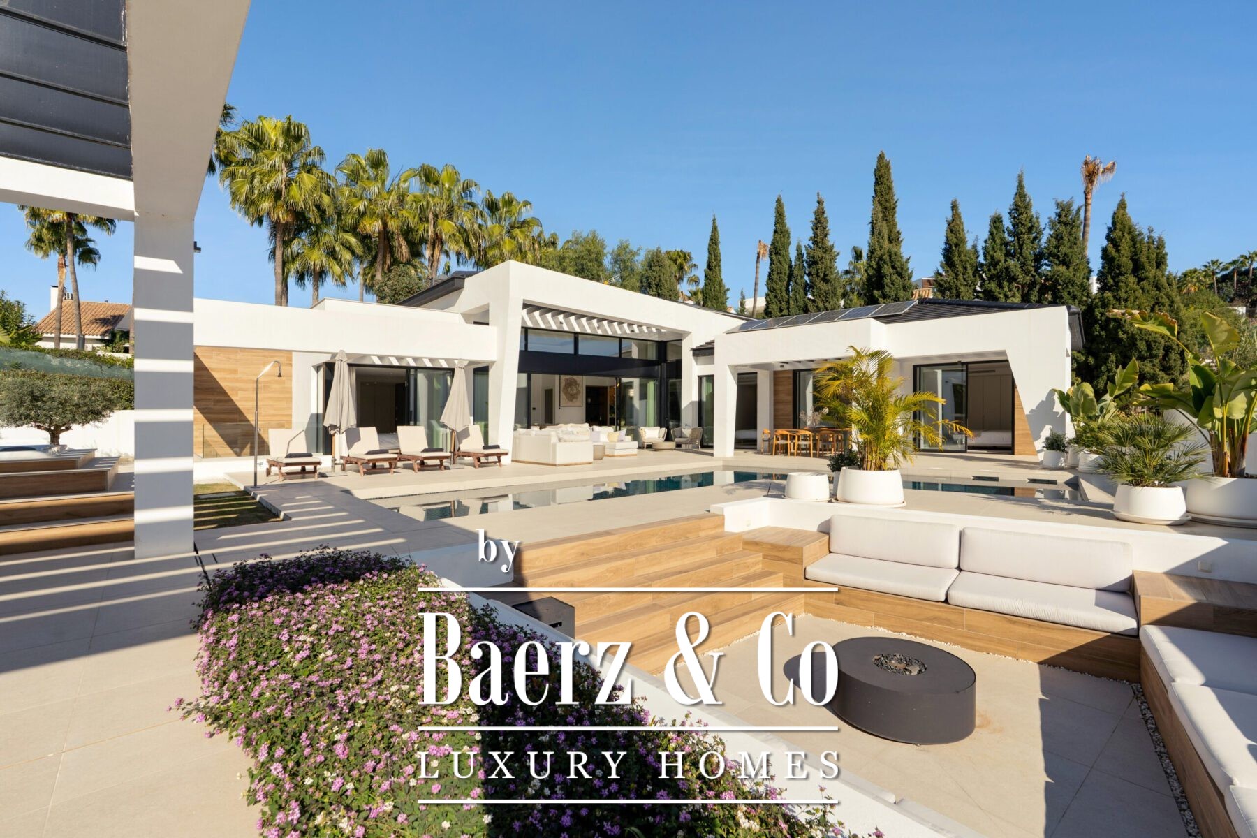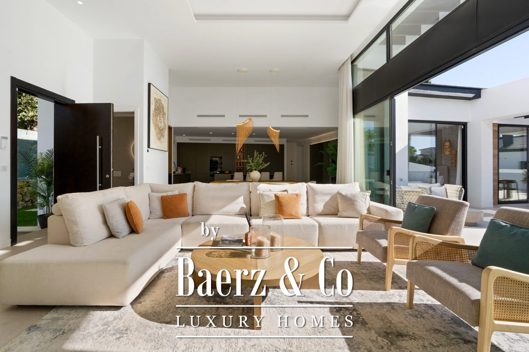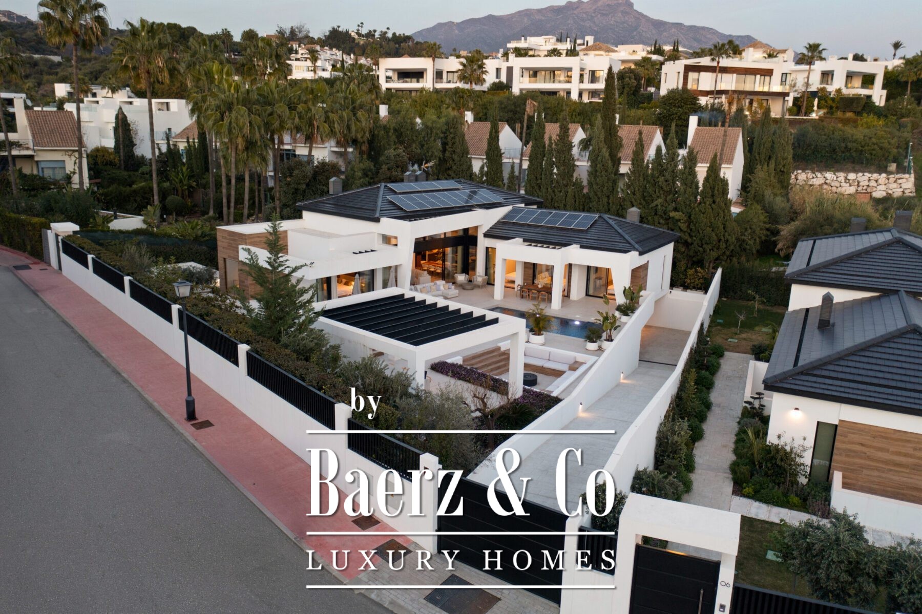 Las especificaciones técnicas incluyen domótica integral, calefacción por suelo radiante, aire acondicionado, sistemas de sonido Sonos, paneles solares, aislamiento avanzado y sistemas de seguridad. La villa está próxima a campos de golf, colegios internacionales, playas y servicios selectos, invitando a disfrutar de un estilo de vida durante todo el año enfocado en la privacidad y el diseño. Para quienes buscan una villa de lujo en venta en Marbella, esta dirección combina claridad arquitectónica con una ubicación codiciada.