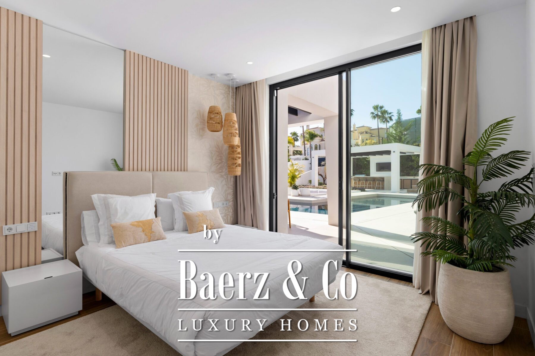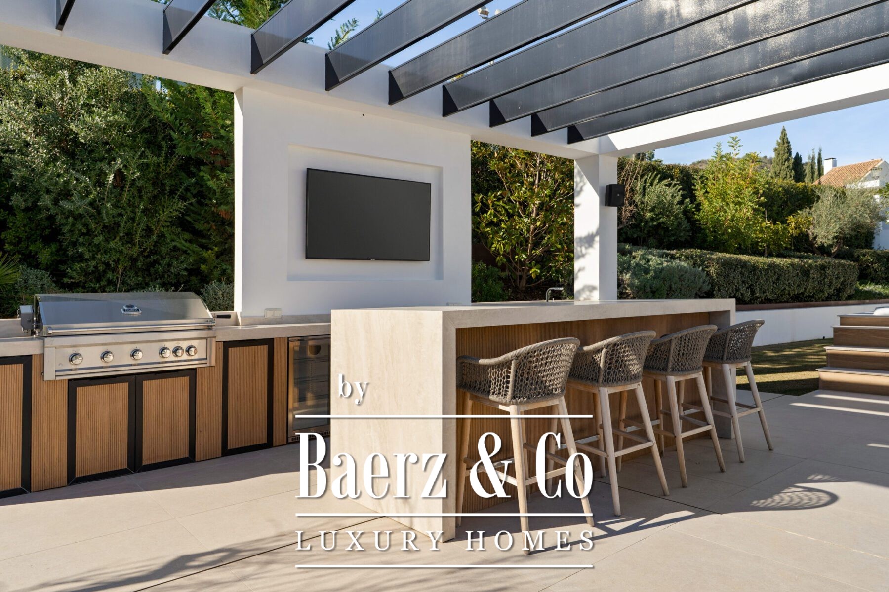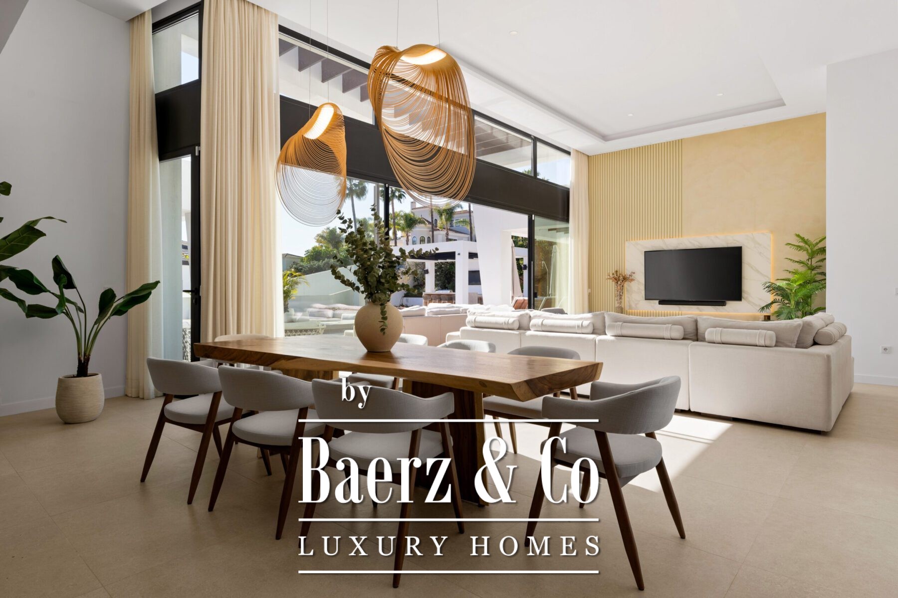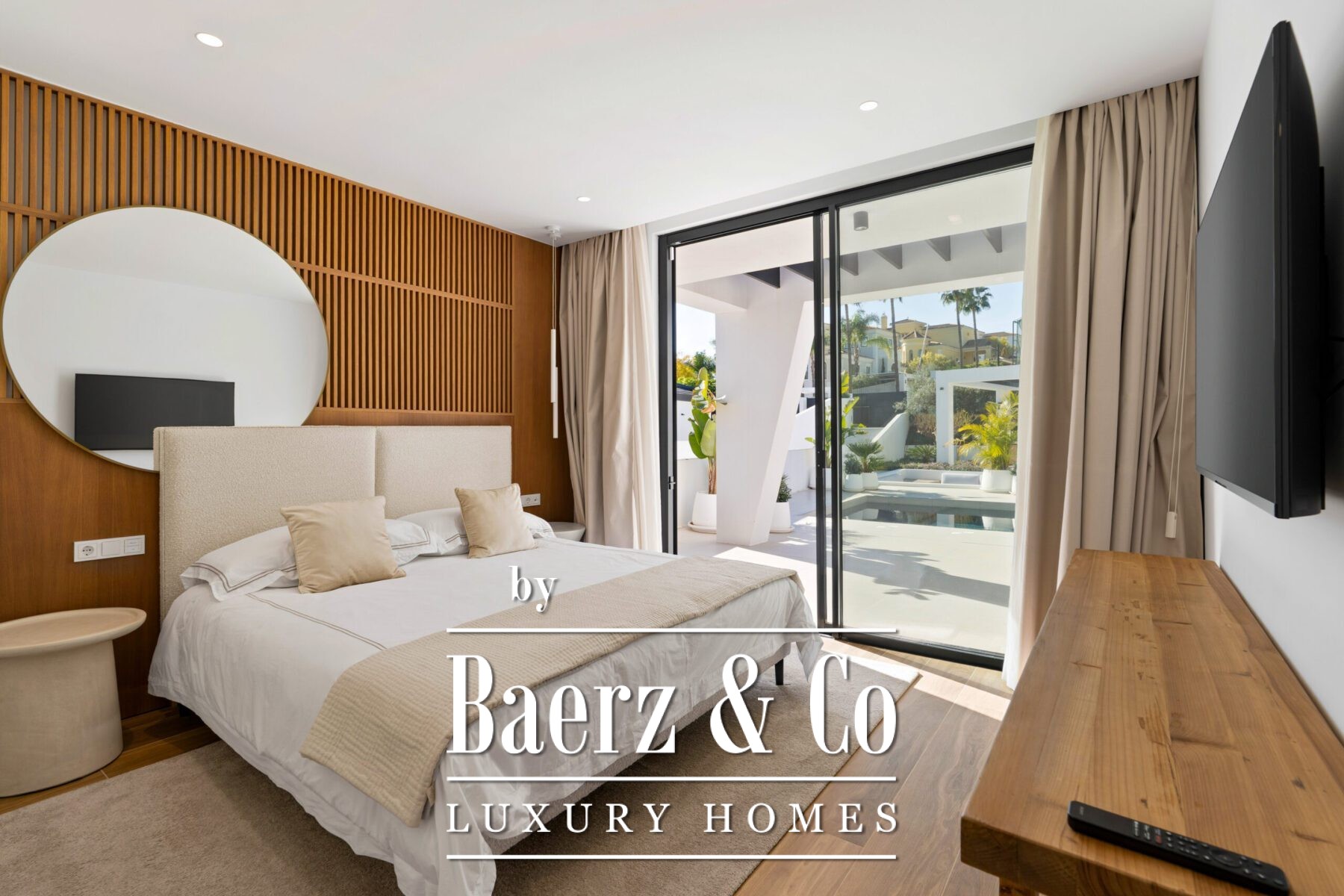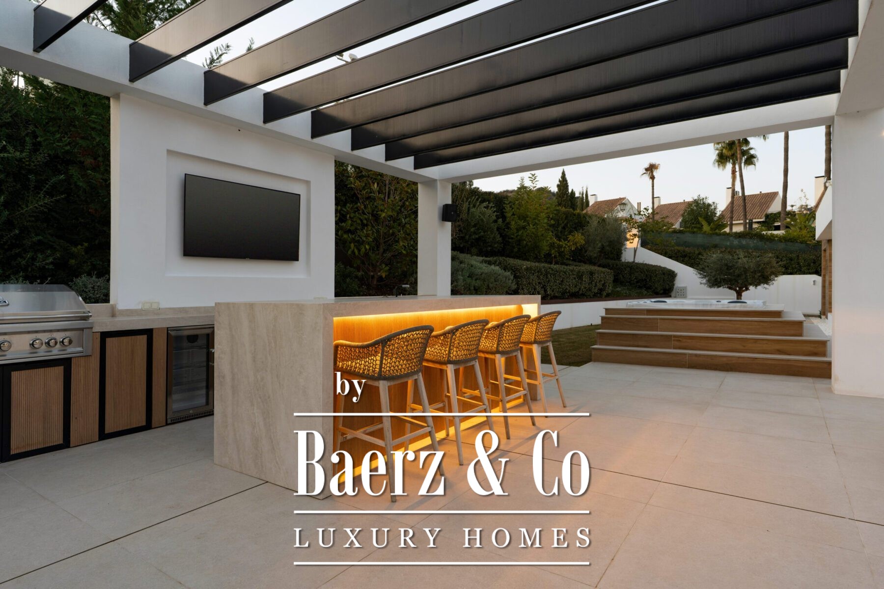 Las especificaciones técnicas incluyen domótica integral, calefacción por suelo radiante, aire acondicionado, sistemas de sonido Sonos, paneles solares, aislamiento avanzado y sistemas de seguridad. La villa está próxima a campos de golf, colegios internacionales, playas y servicios selectos, invitando a disfrutar de un estilo de vida durante todo el año enfocado en la privacidad y el diseño. Para quienes buscan una villa de lujo en venta en Marbella, esta dirección combina claridad arquitectónica con una ubicación codiciada.