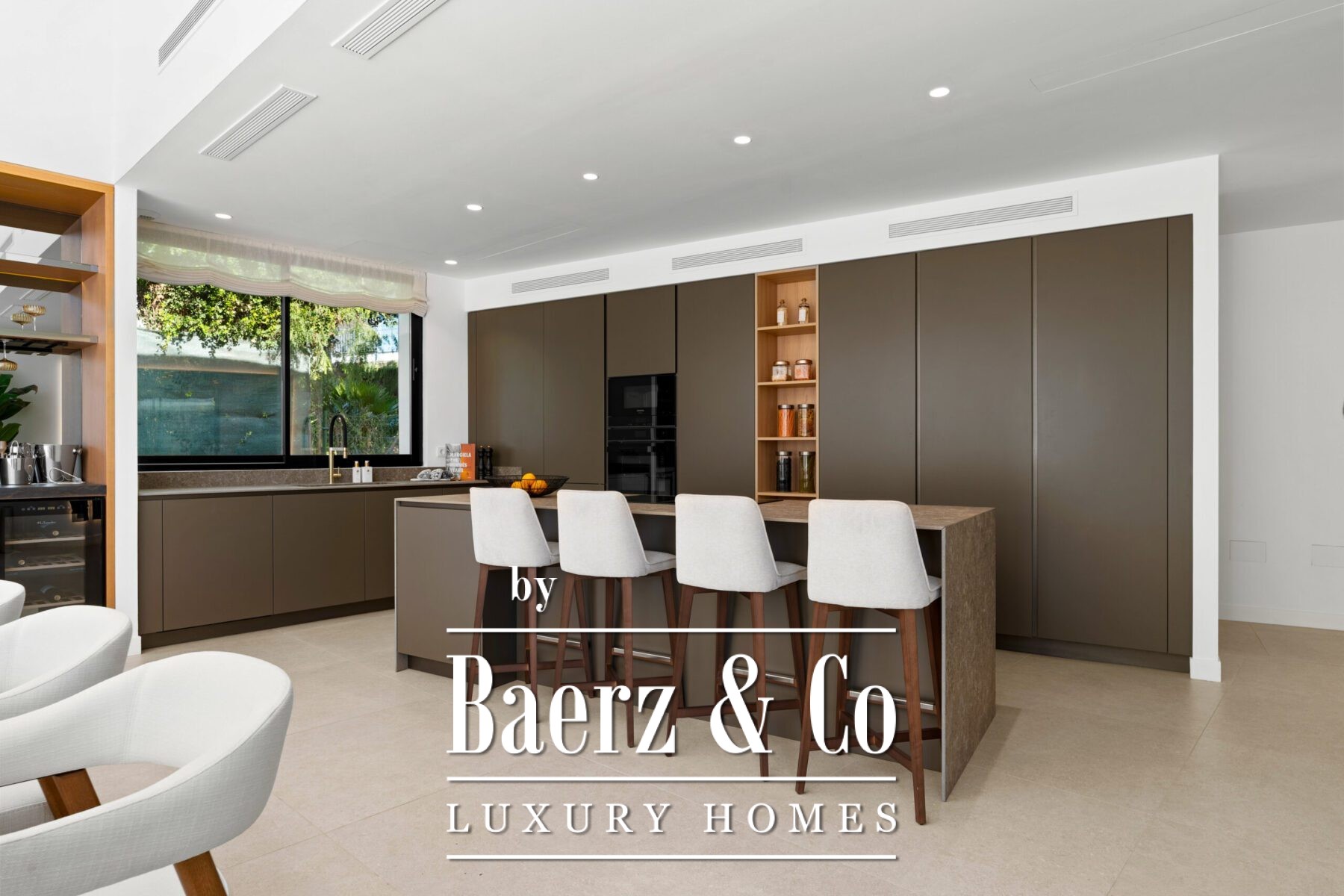 Seis dormitorios brindan flexibilidad para la familia o invitados, cada uno con acceso directo al jardín o la terraza. Cuatro dormitorios en suite se ubican en la planta principal, ofreciendo privacidad mientras la suite principal permanece aislada. La sofisticada cocina incluye electrodomésticos integrados Siemens, dos vinotecas y una barra seca, facilitando tanto la vida tranquila como el entretenimiento a gran escala.