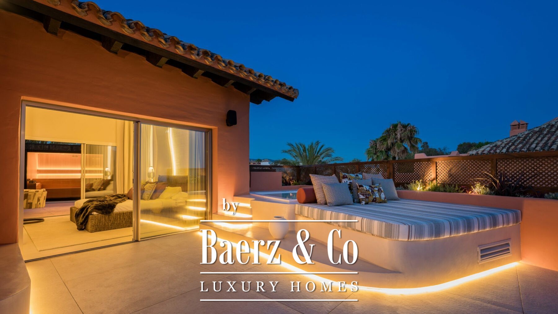 This outstanding property impresses with an exclusive interior design, elegant contemporary furniture, tailormade wardrobes, a new Siematic designer kitchen with Miele appliances, a Bang & Olufsen sound system, an electric fire place and stylish Kettal outdoor furniture. From both terraces you can enjoy the true beauty of a frontline beach location, with sea views that follow the shoreline and Mediterranean to the outlines of Gibraltar and North Africa. The penthouse comes with 2 underground parking spaces and a storage room.