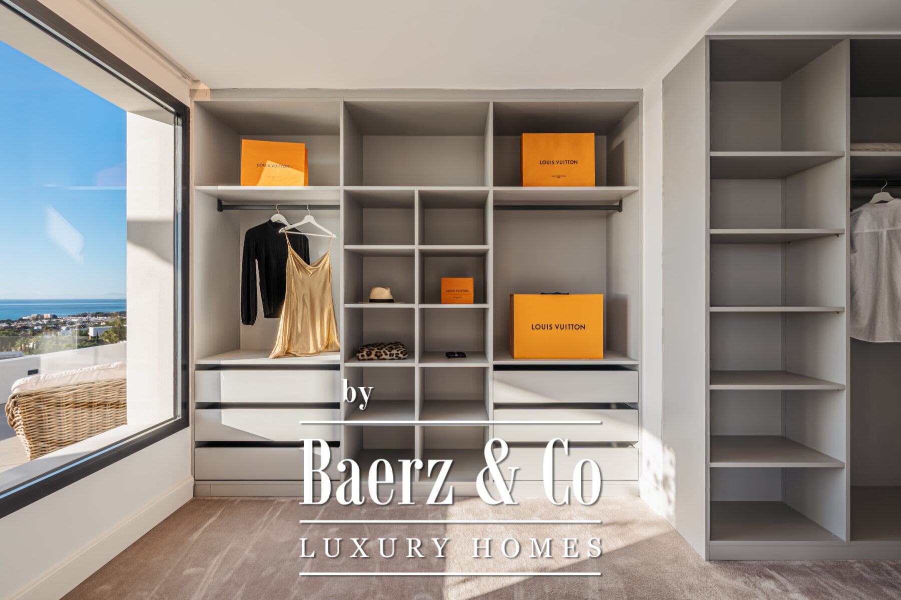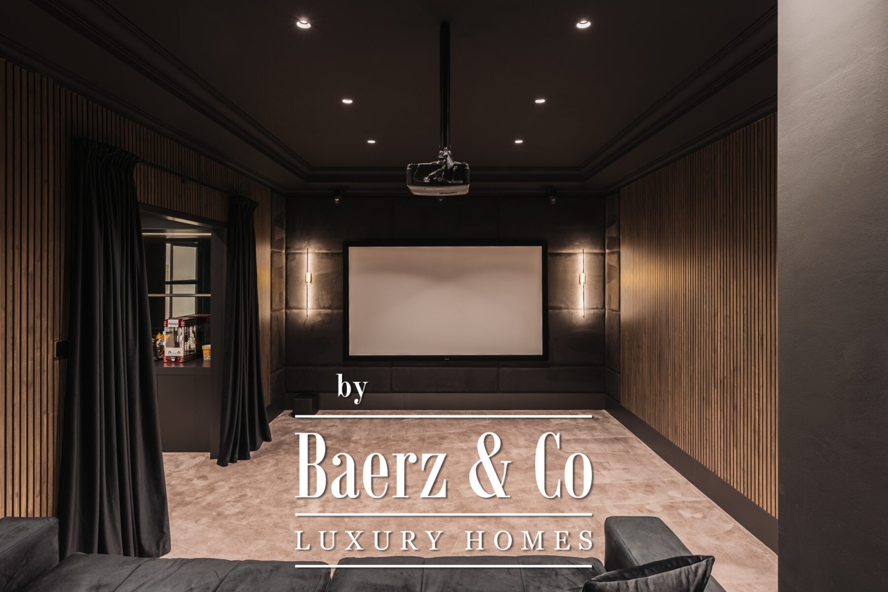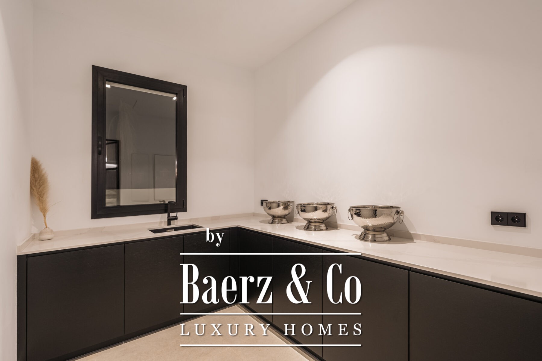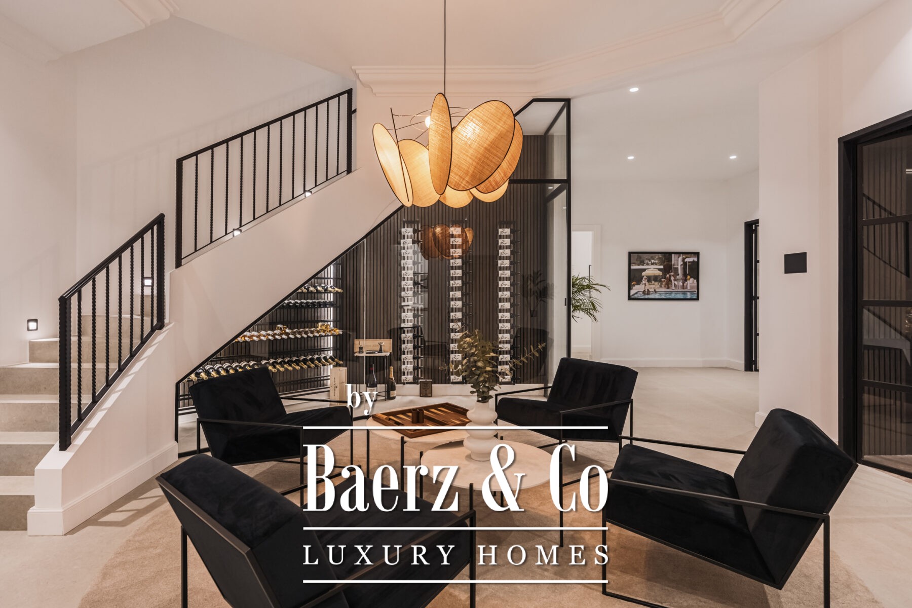 In the basement, this villa continues to impress with a fully stocked wine cellar, a state-of-the-art cinema room, a gym, a spa featuring a plunge pool, laundry facilities, and a spacious garage.