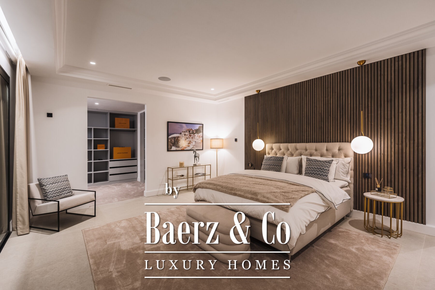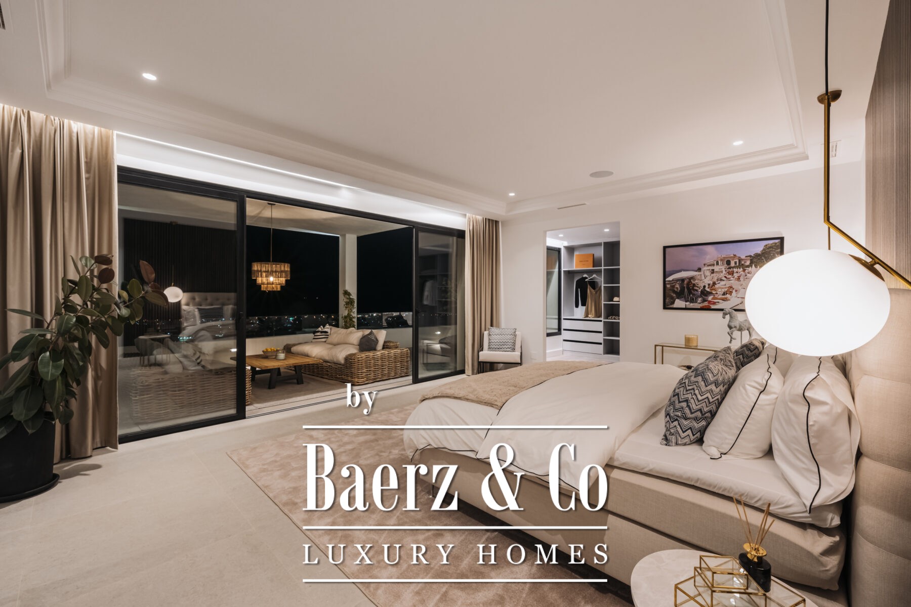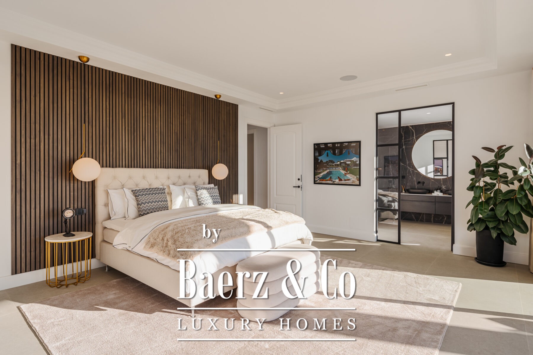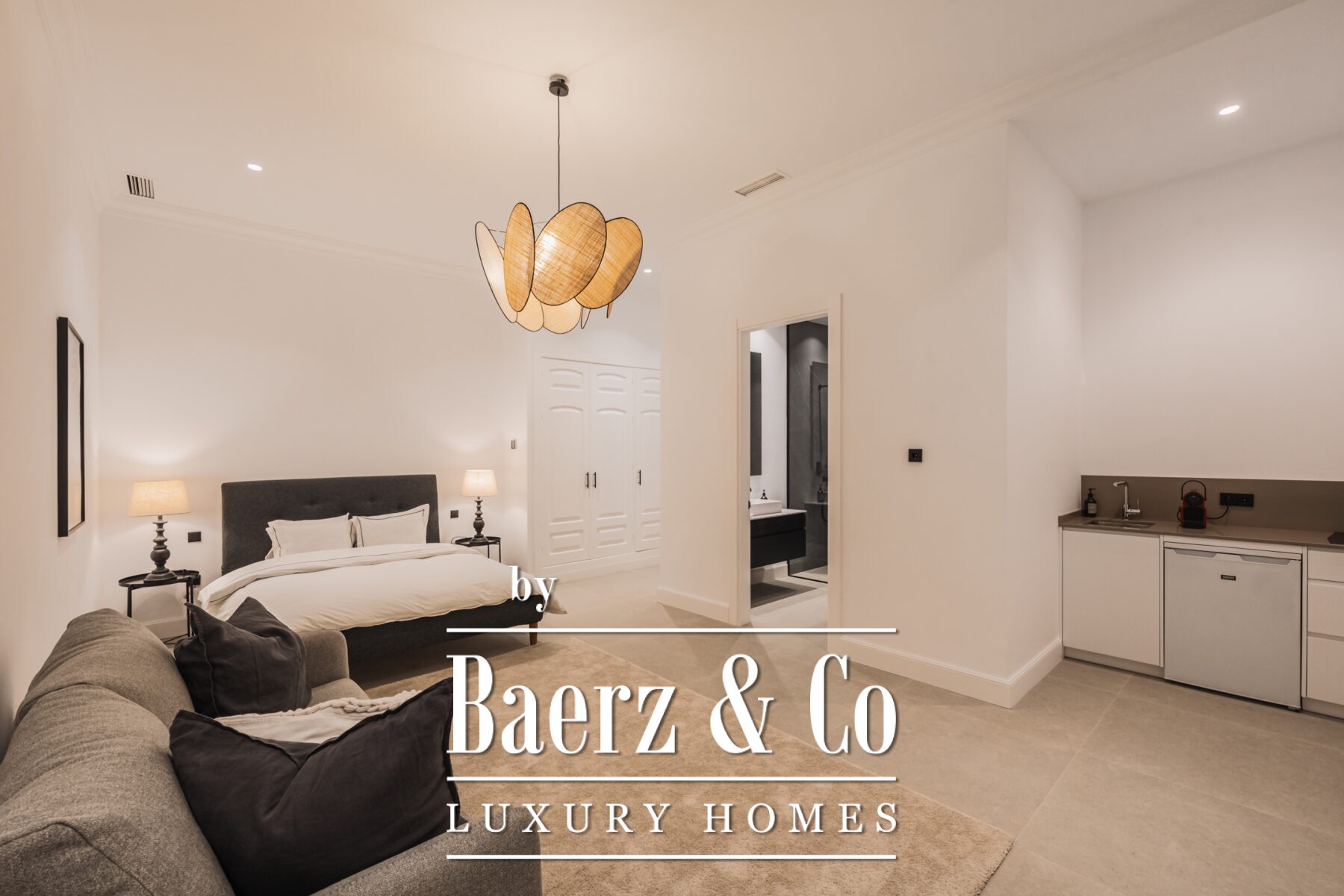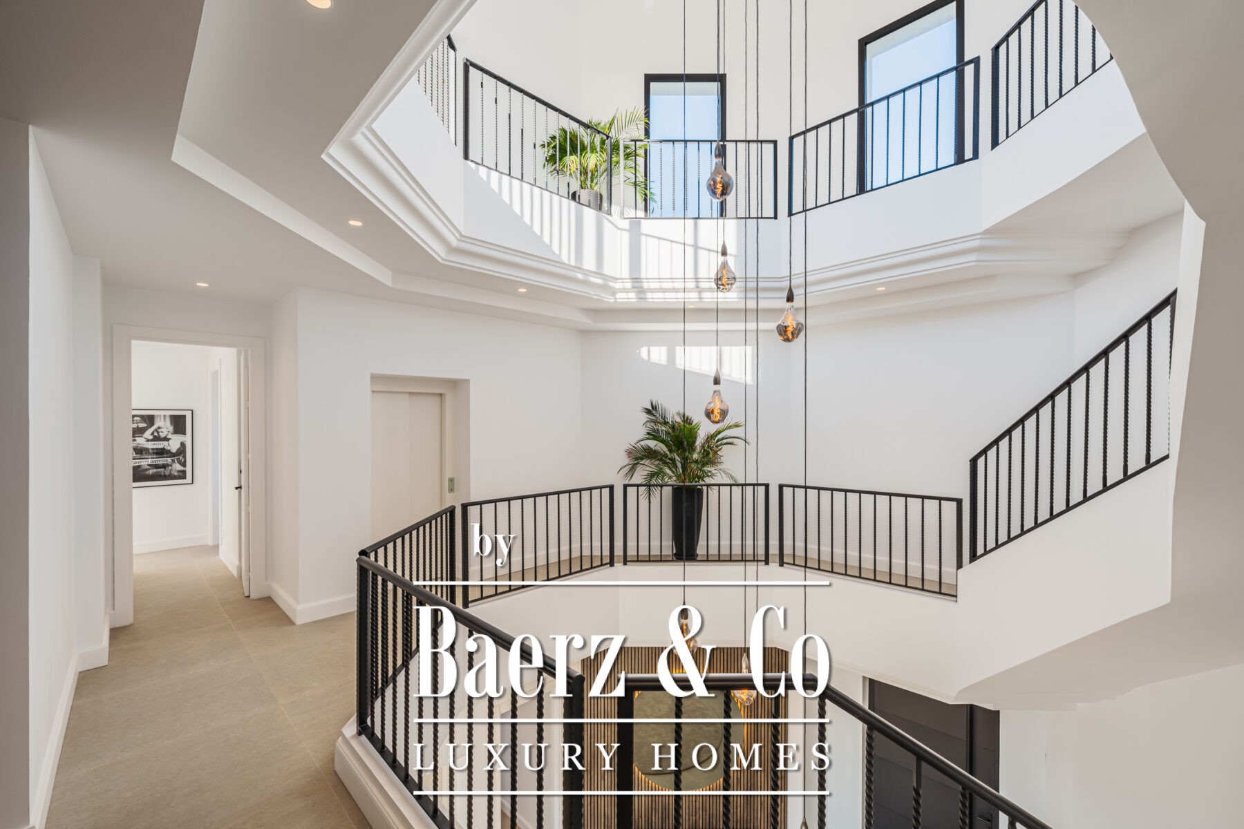 This classic yet contemporary mansion is designed to seamlessly blend luxury, privacy, and comfort, making it ideal for family living and entertaining. Spanning four expansive levels, this luxury illa offers 6 generously sized bedrooms, 7 bathrooms, 3 swimming pools, a cinema room, office spaces, a spa, a gym, a wine cellar, and a stunning rooftop terrace with panoramic views. A private elevator provides convenient access across all floors.
