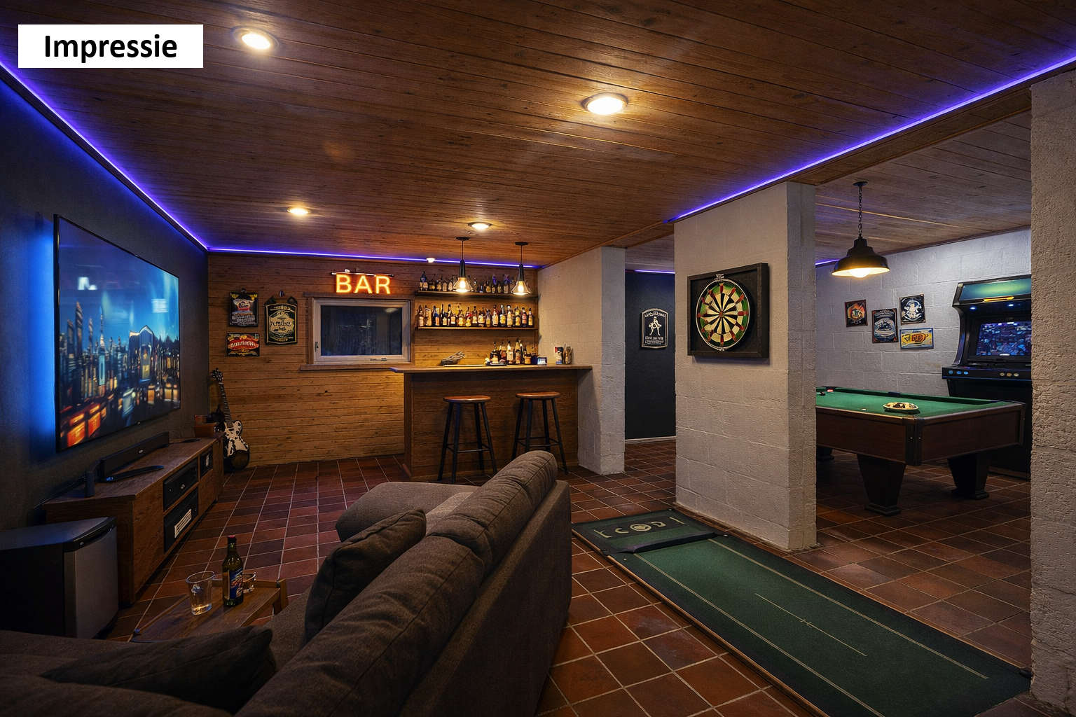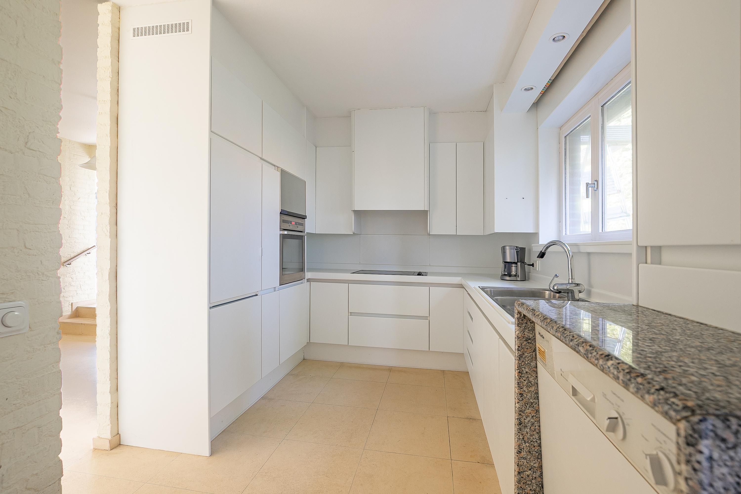 La residencia cuenta con 215 m² de superficie habitable, distribuidos en cuatro dormitorios y tres baños. Un garaje XL y un sótano multifuncional aportan practicidad al día a día. El amplio salón, con un sorprendente altillo y un muro de ventanales, inunda de luz natural el interior y conecta fluidamente con los jardines paisajísticos. La cocina, equipada con mobiliario en U y electrodomésticos integrados, se une a la zona de comedor, ambas con vistas tranquilas al jardín.