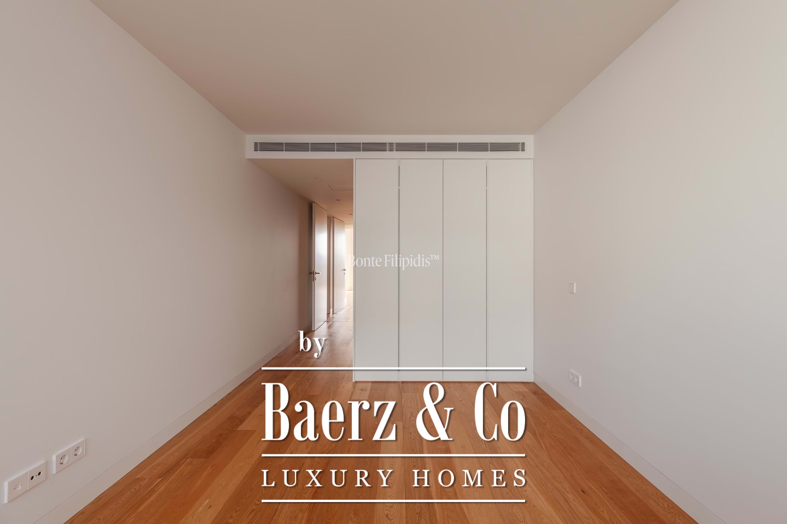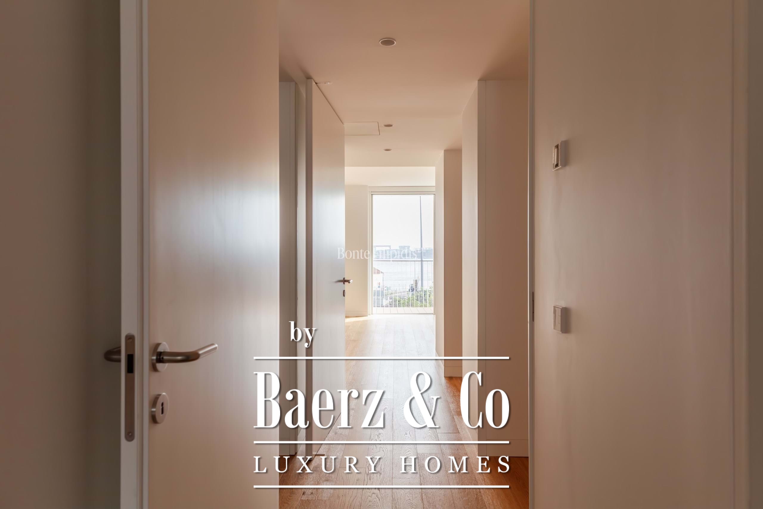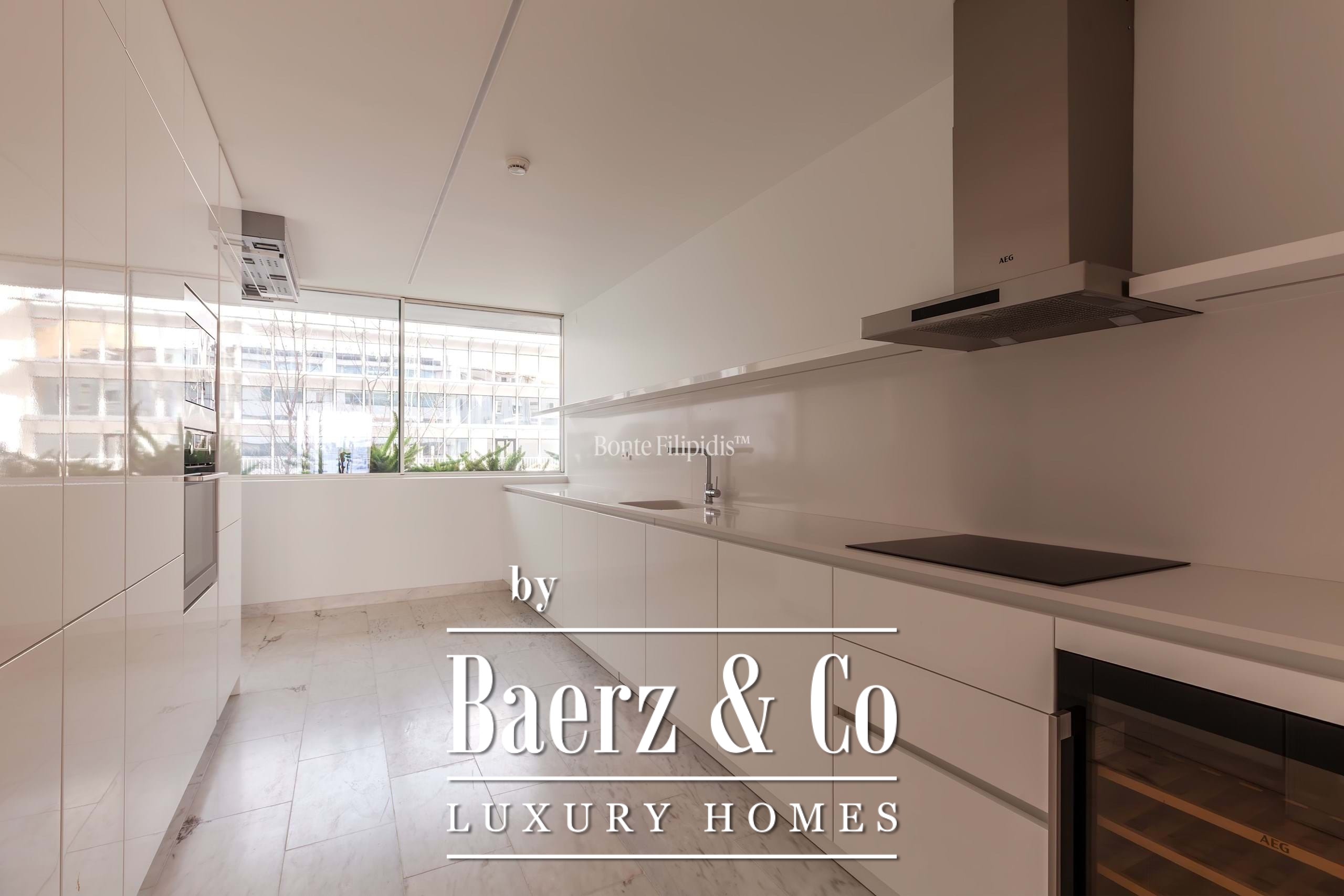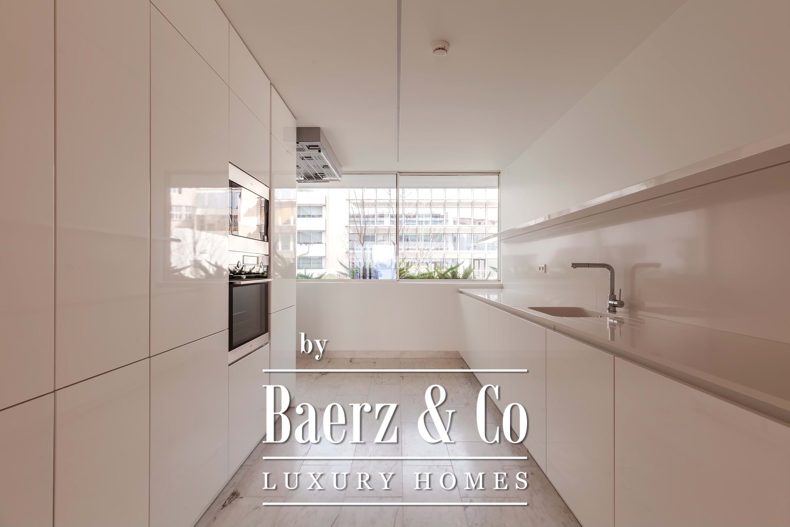 La suite principal cuenta con armarios empotrados y un baño en suite con piedra natural. Los otros dos dormitorios ofrecen dimensiones generosas, amplios ventanales y almacenamiento integrado, complementados por un total de tres baños. Suelos de madera maciza, carpintería refinada y una cocina completamente equipada con electrodomésticos de alta gama subrayan el énfasis en la comodidad contemporánea.
