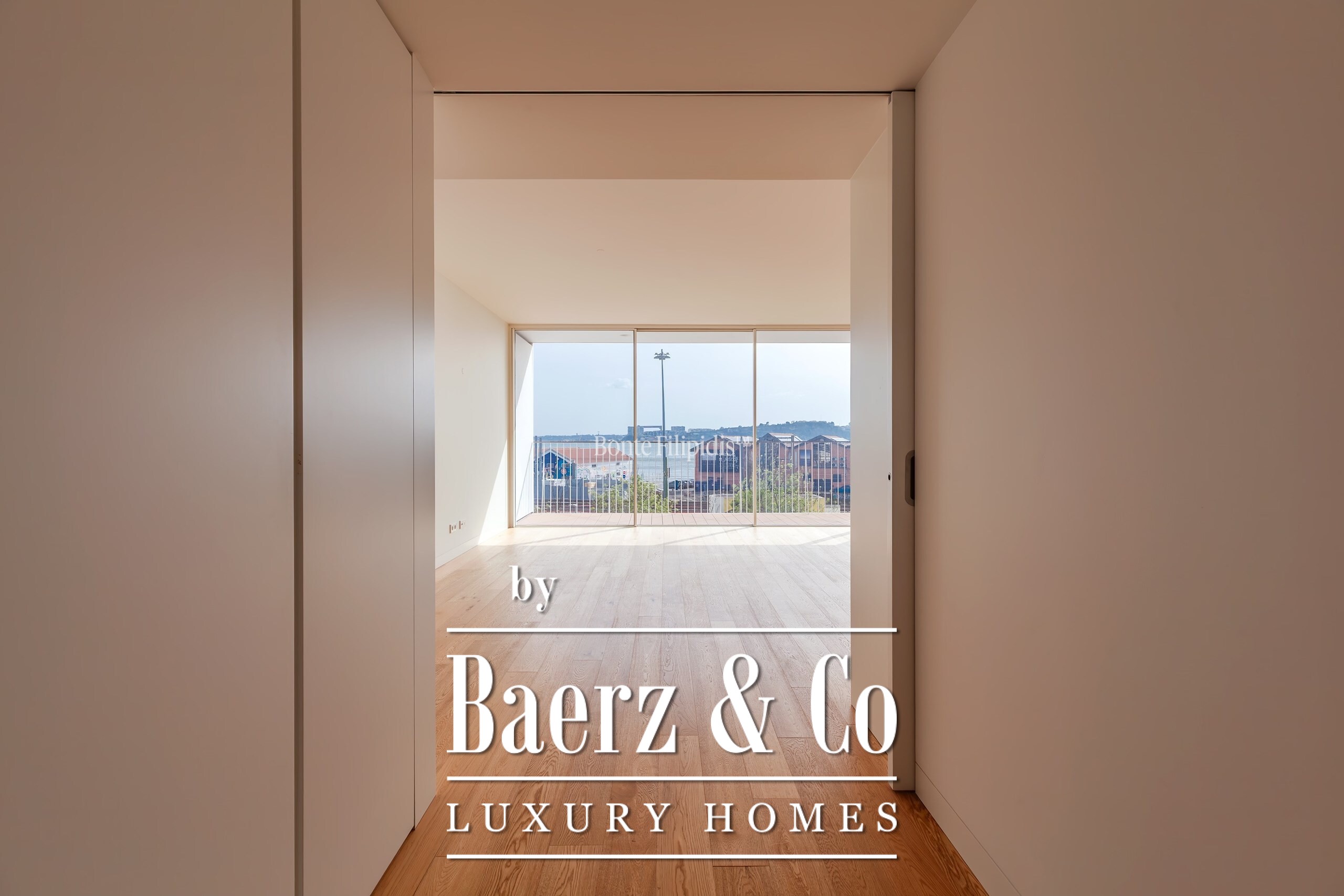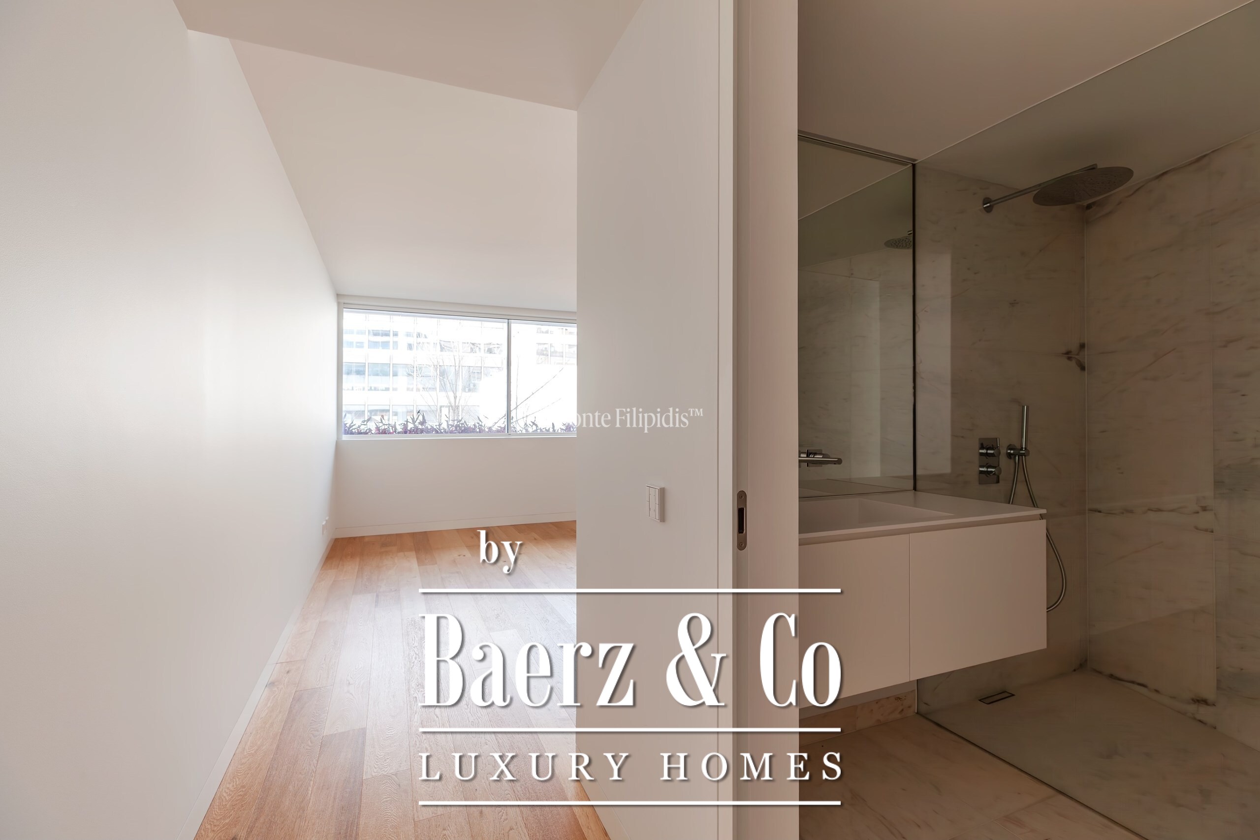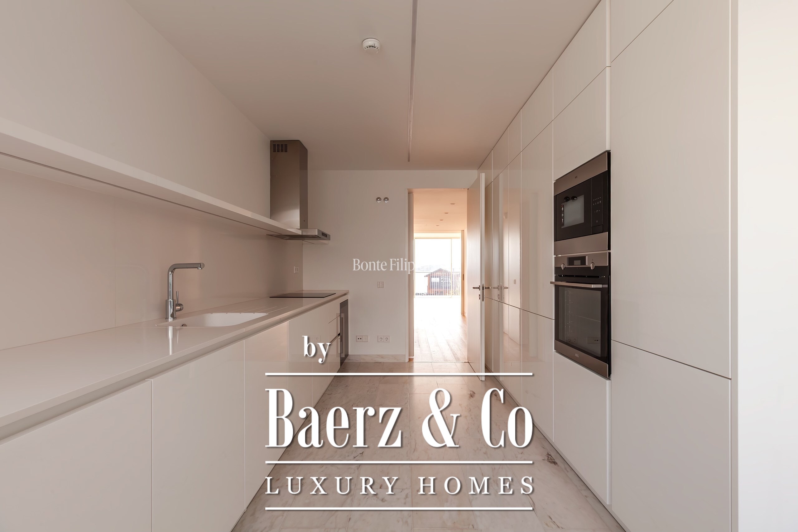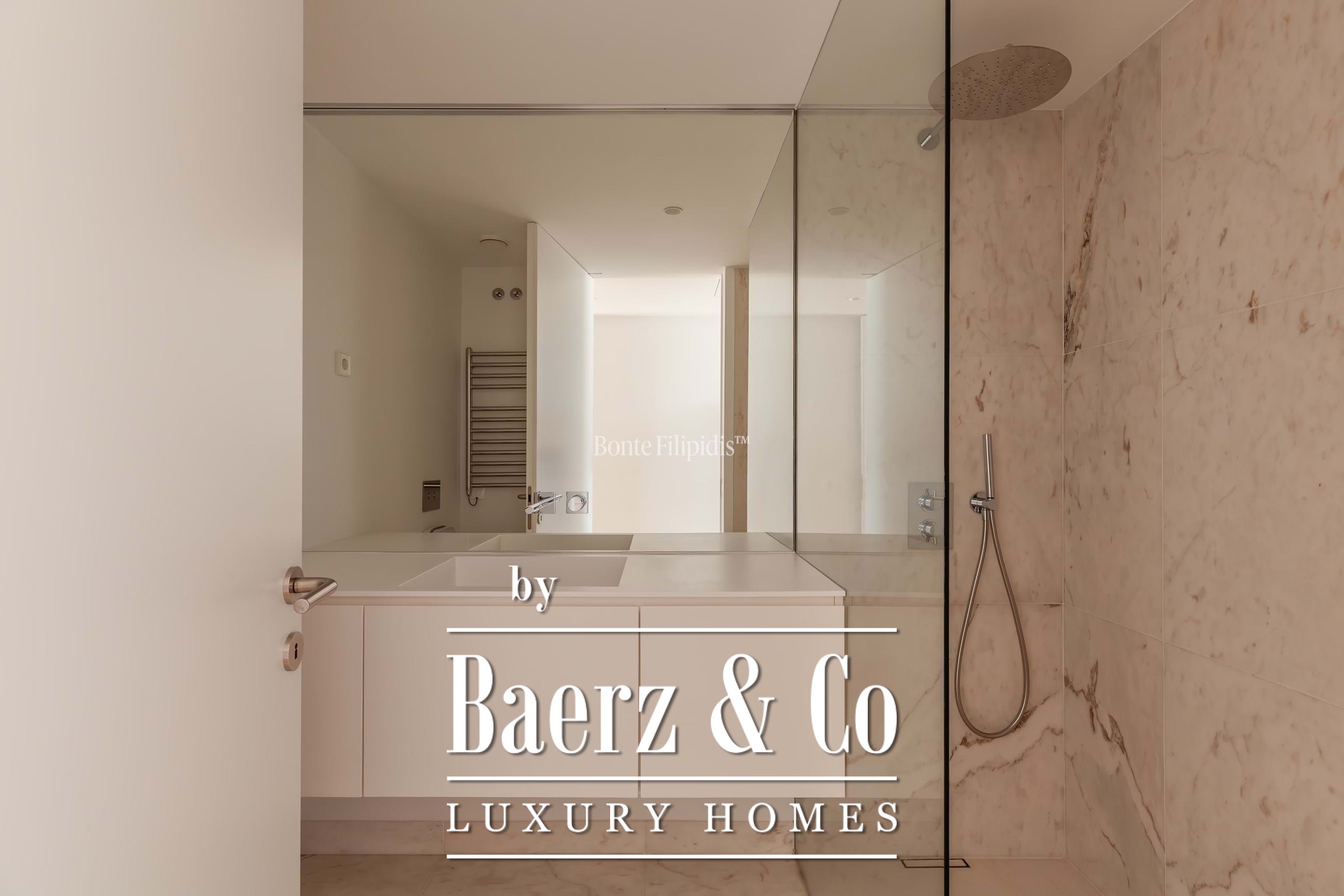 La suite principal cuenta con armarios empotrados y un baño en suite con piedra natural. Los otros dos dormitorios ofrecen dimensiones generosas, amplios ventanales y almacenamiento integrado, complementados por un total de tres baños. Suelos de madera maciza, carpintería refinada y una cocina completamente equipada con electrodomésticos de alta gama subrayan el énfasis en la comodidad contemporánea.