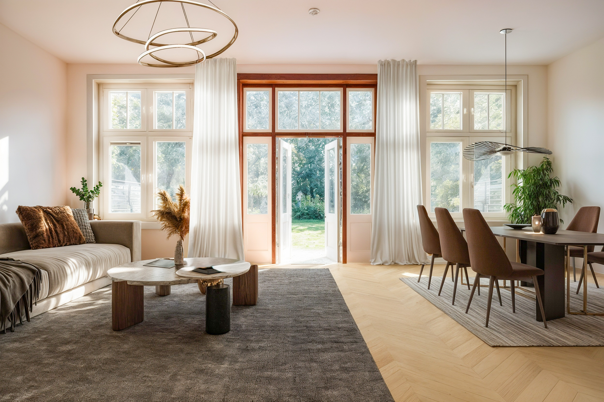 De bosvilla’s ademen nog altijd de sfeer van het verleden, met hoge plafonds, authentieke details en grote raampartijen die je het bos in al zijn pracht doen beleven. Tegelijkertijd zijn de villa’s volledig toekomstbestendig: gasloos, voorzien van vloerverwarming en -koeling via een eigen bodembron, HR++ glas en optimale isolatie. Het resultaat? Een energielabel A++, lage energielasten én met het comfort van een hypermoderne verwarming.