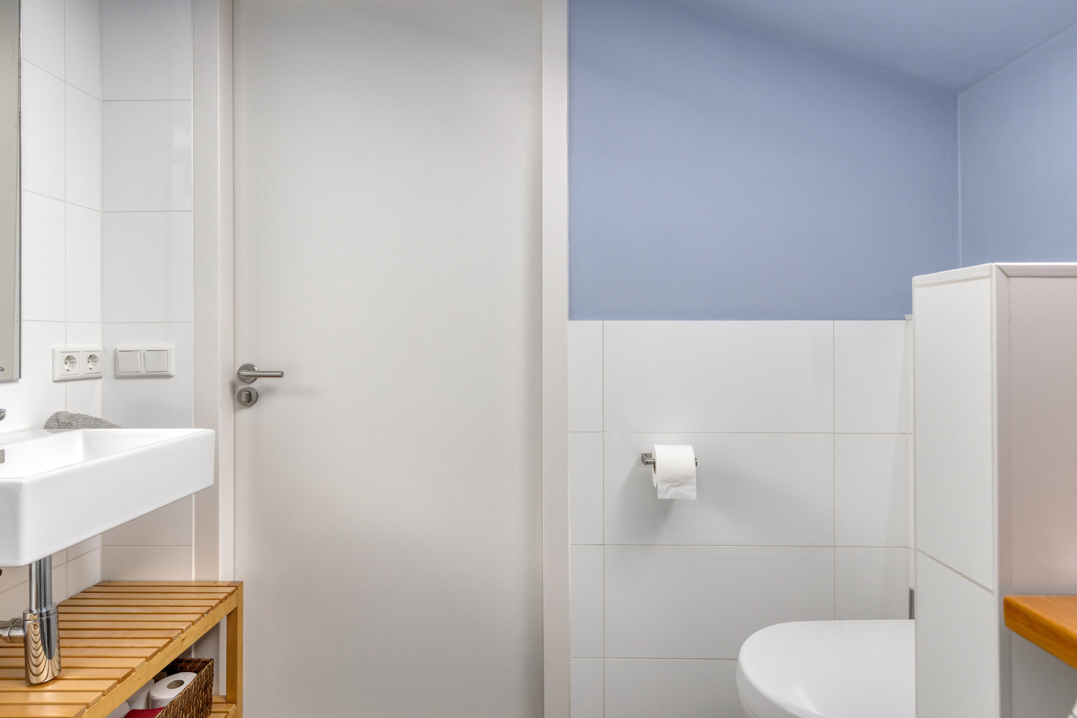 En la planta superior, la suite principal cuenta con baño privado con bañera y ducha a ras de suelo, mientras los dormitorios secundarios mantienen la sensación de amplitud y luz. Entre los equipamientos técnicos destacan la ventilación mecánica, calefacción por suelo radiante y conexión de fibra óptica, reflejando la completa modernización y excelente estado de conservación.