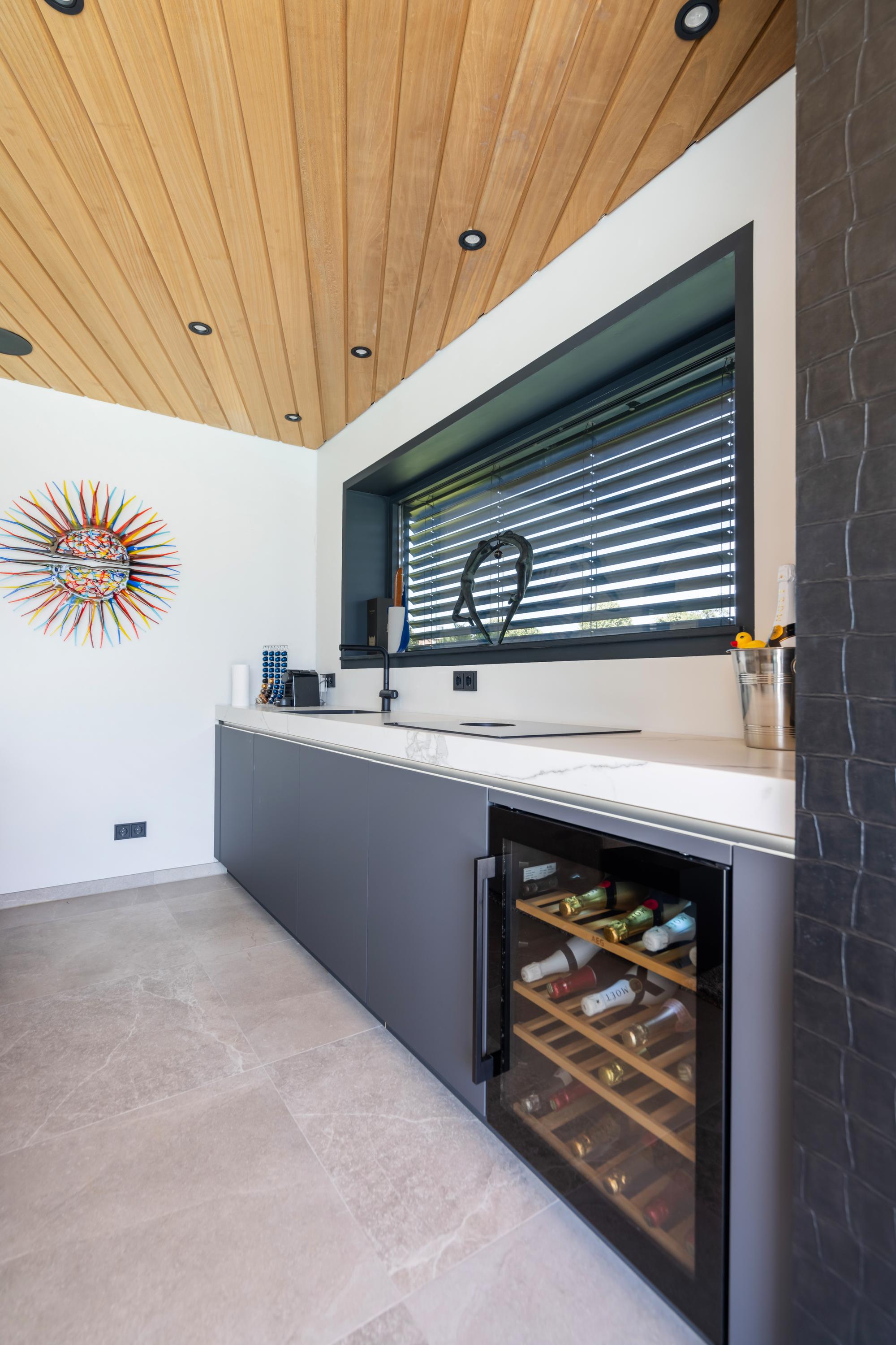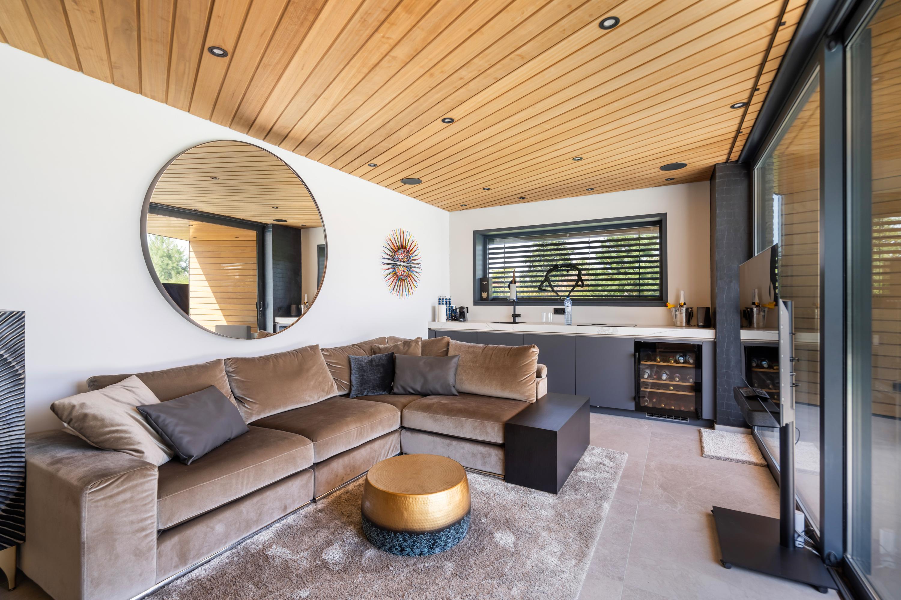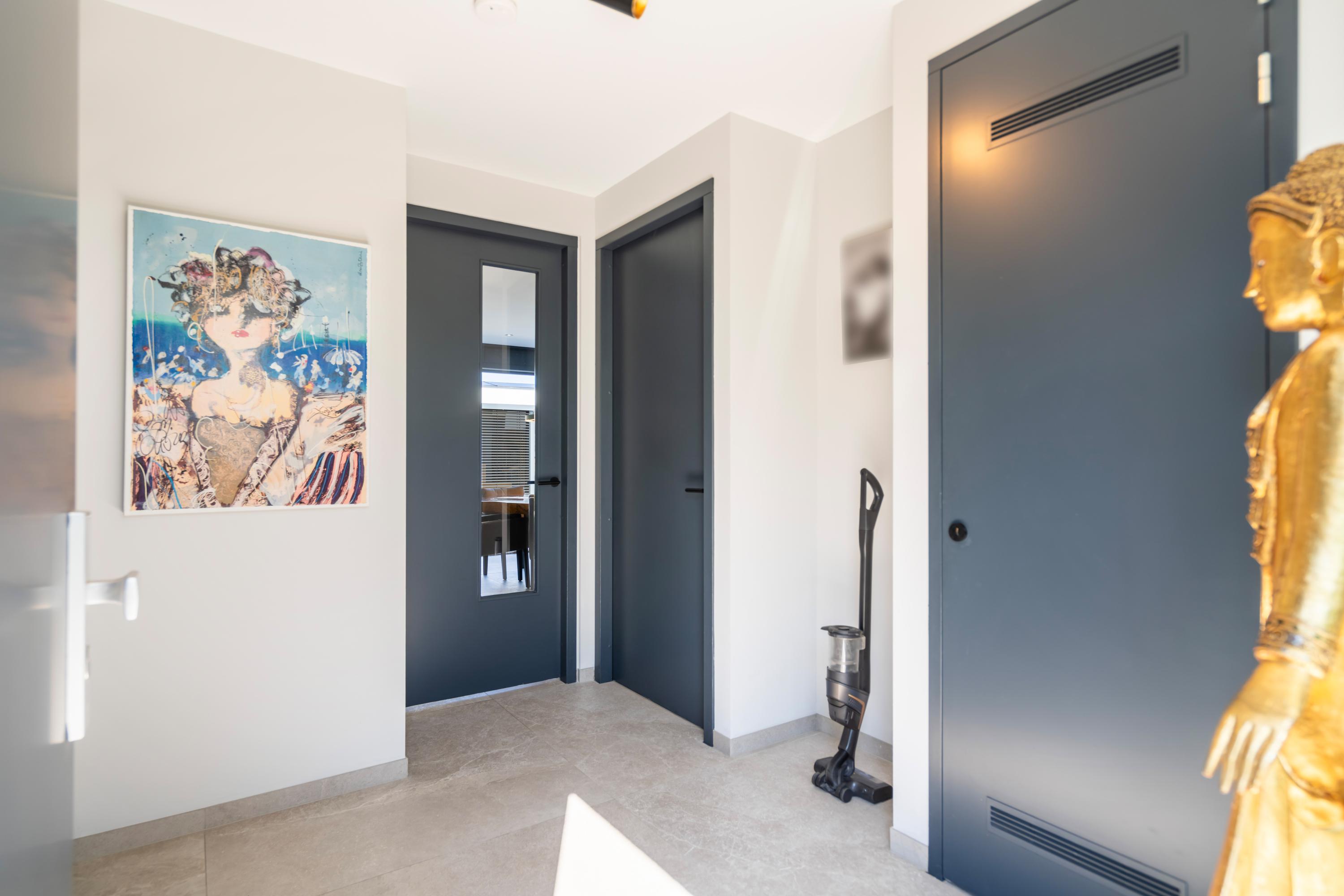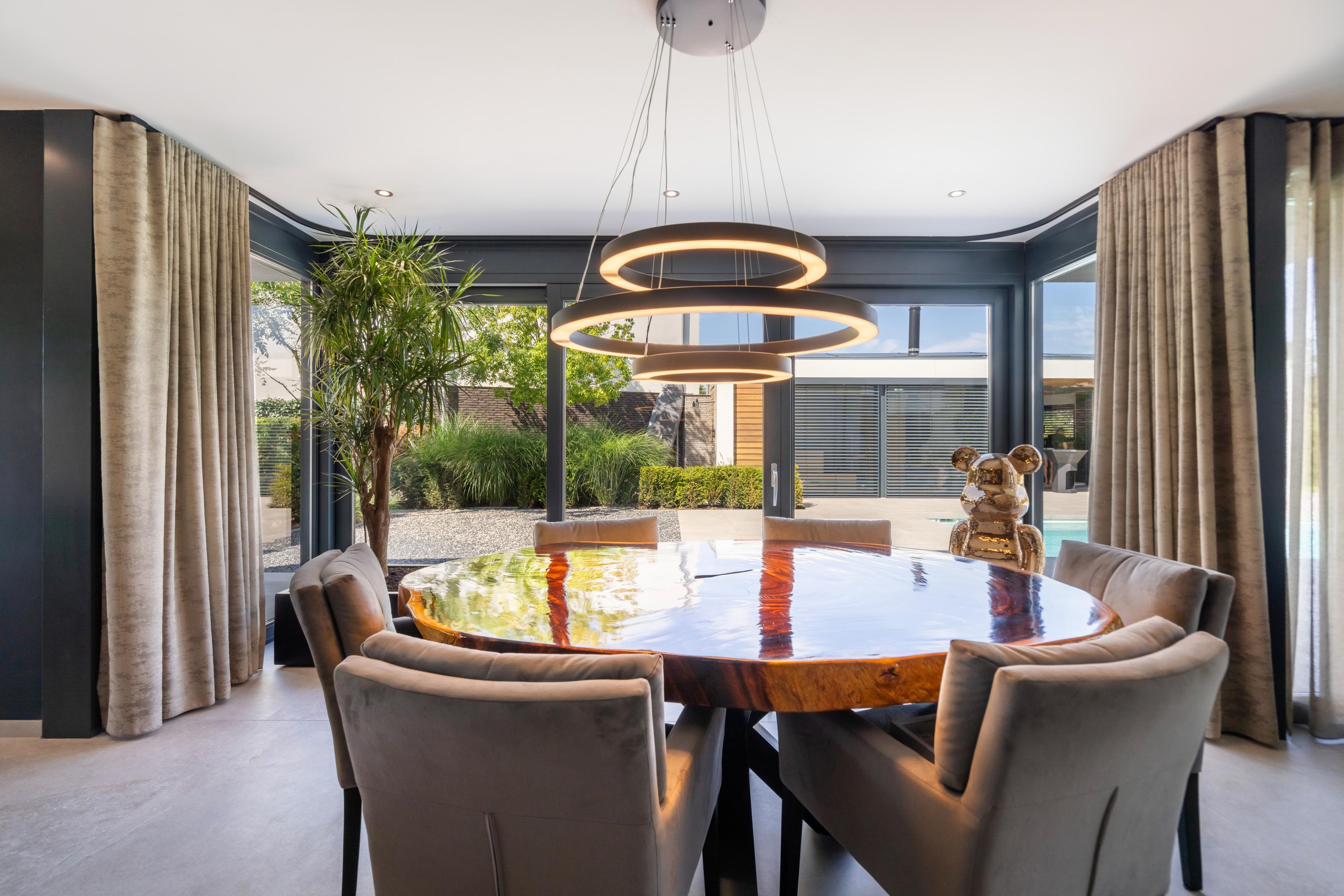Diseñada para expresar un lujo discreto, la villa cuenta con 237 m² de superficie habitacional, que incluyen una casa de piscina de 36 m², todo construido con materiales de alta calidad y eficiencia energética clase A+++. Los amplios interiores de concepto abierto están bañados de luz natural, gracias a ventanales de suelo a techo y a una distribución dinámica que fusiona el interior y el exterior sin esfuerzo. La sala principal se conecta elegantemente con una cocina Miele hecha a medida, ideal tanto para la vida diaria como para recibir invitados. La domótica avanzada, con iluminación Philips Hue, cortinas eléctricas y sistema de alarma premium, garantiza un nivel superior de confort y seguridad en todo el hogar.