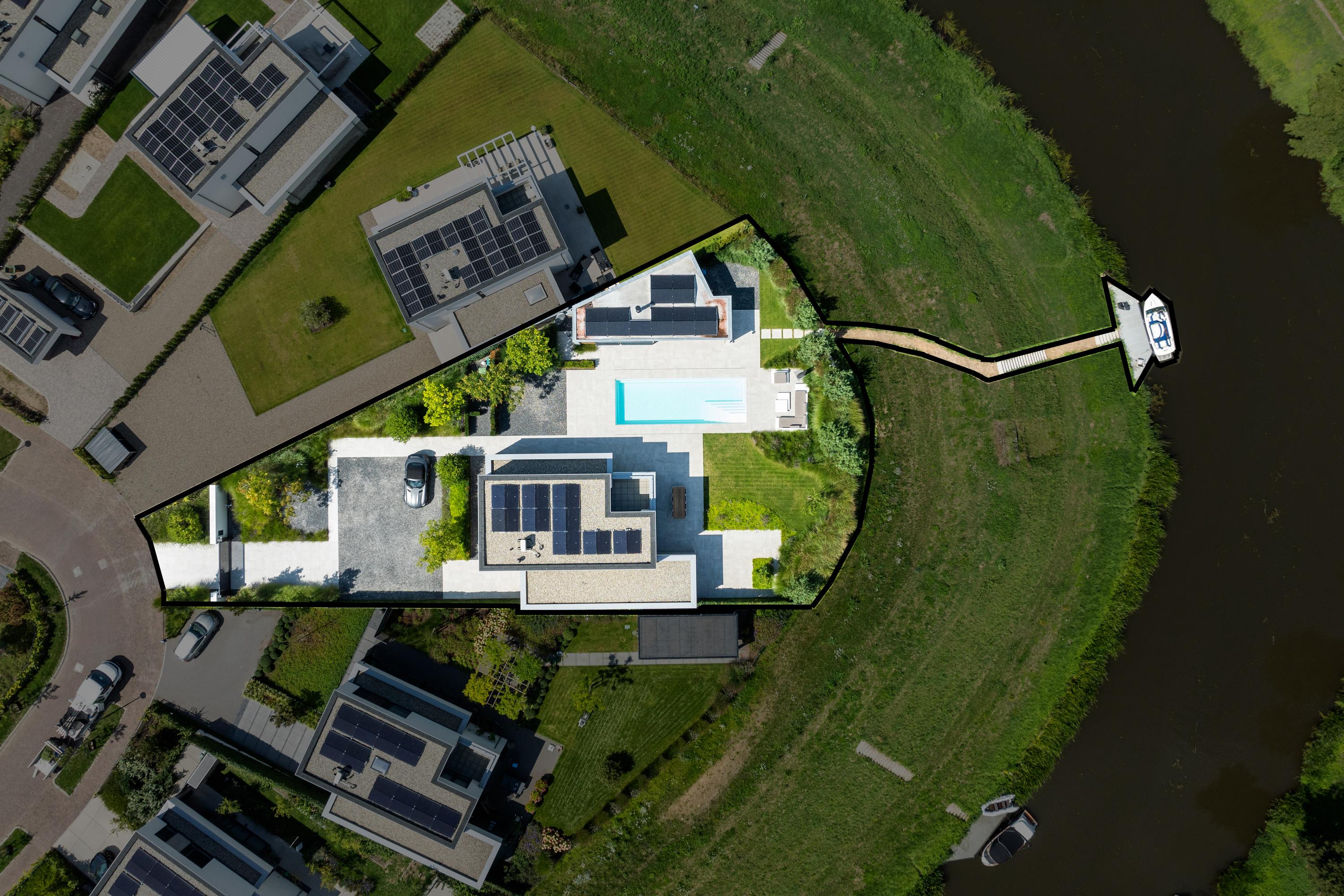 La villa junto al agua en Roermond es una residencia moderna excepcional en un enclave único, ubicada en la última curva del Hambeek antes de su unión con el Maas. Esta villa se alza sobre la mayor parcela de Het Ham, brindando equilibrio entre privacidad, serenidad y acceso directo al agua, todo a pocos pasos del centro de la ciudad. Un embarcadero privado permite acceder al barco directamente desde el jardín, facilitando la llegada a Maasplassen en cuestión de minutos.