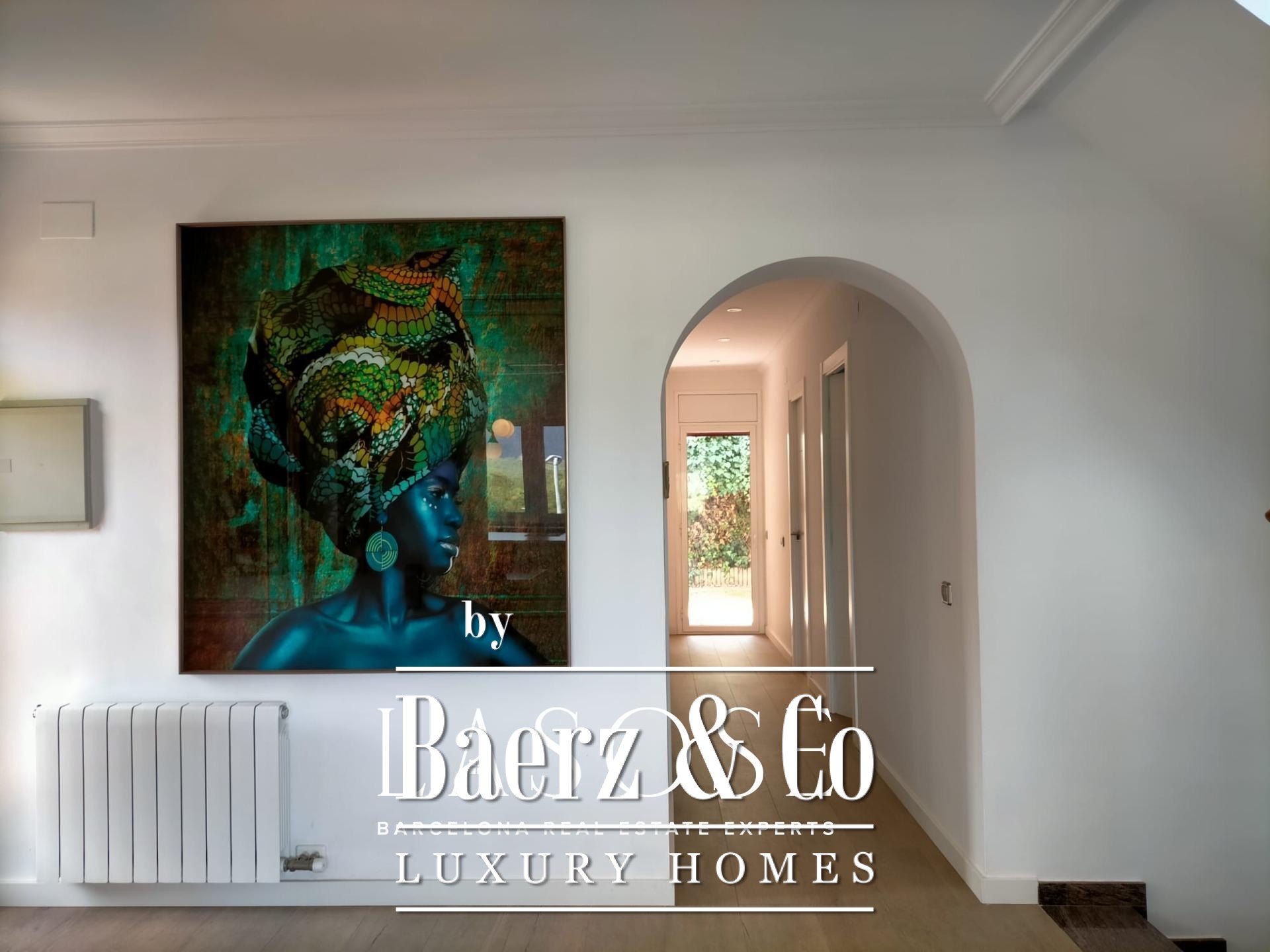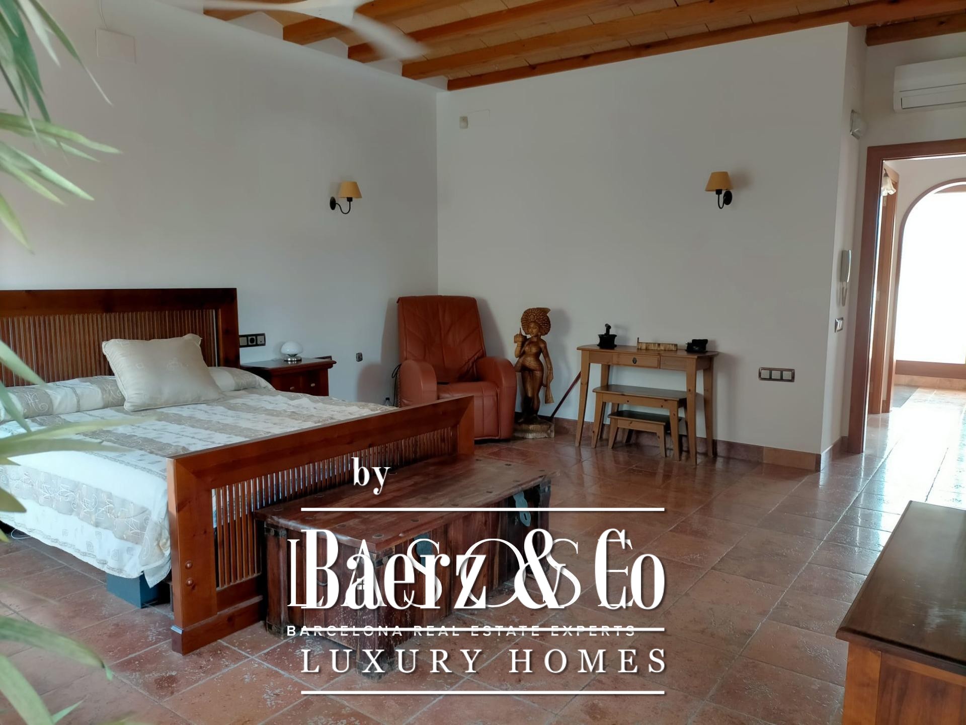 En el exterior, un exuberante jardín con vegetación mediterránea madura, césped y un antiguo olivo enmarca la piscina, que está bordeada con piedra natural y presenta una cascada, creando el entorno ideal para tardes de ocio y eventos sociales. Las zonas funcionales incluyen un amplio garaje privado y trastero, con espacio suficiente para vehículos y enseres de temporada. Aire acondicionado, calefacción, sistemas de seguridad y barbacoa completan el confort y la comodidad.