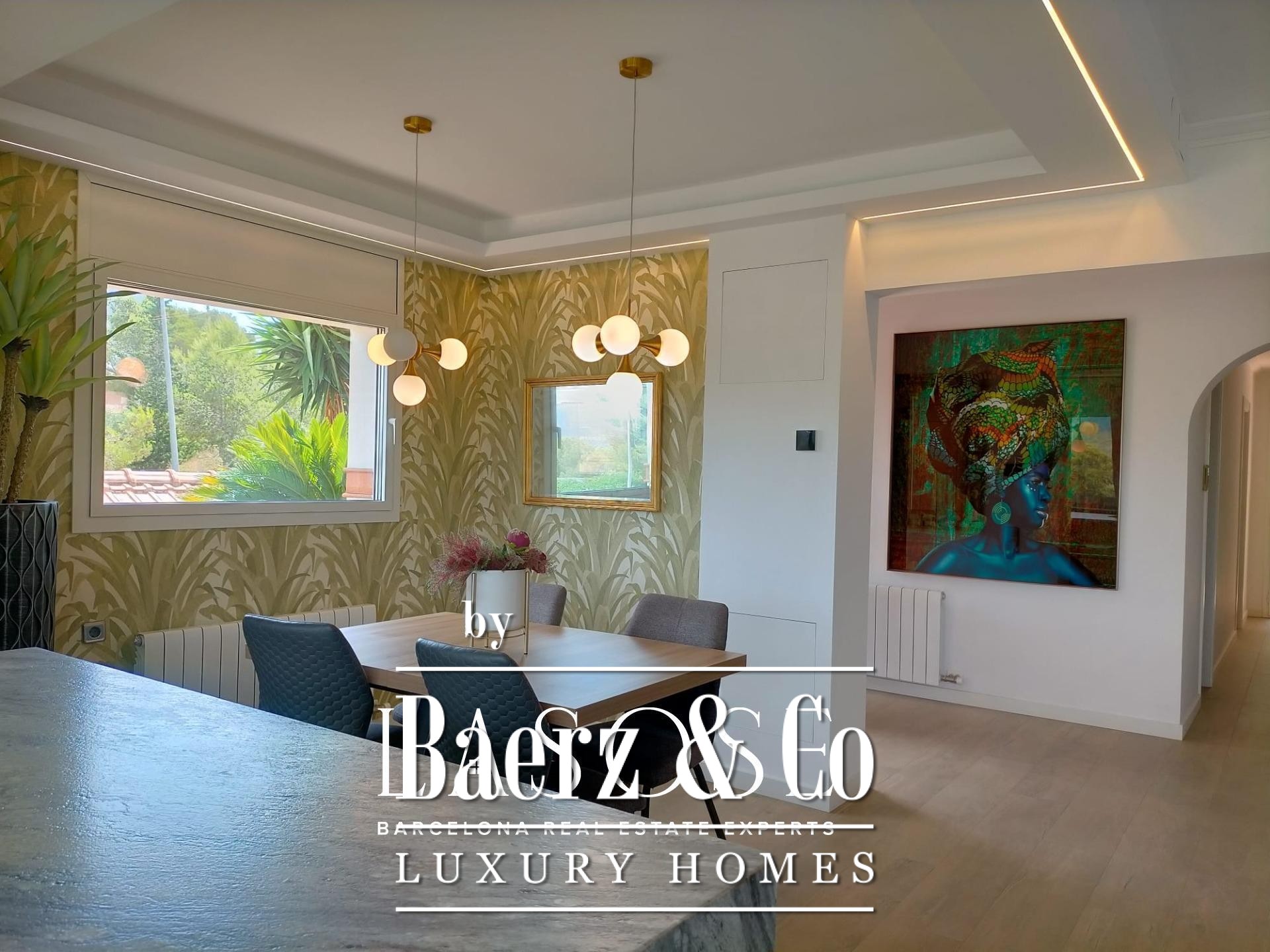 La Villa Sant Pere de Ribes se ubica en una posición tranquila dentro de la prestigiosa zona residencial Els Cards, entre Sitges y Sant Pere de Ribes, donde la privacidad y las vistas panorámicas definen cada momento de vida. Esta villa de cinco dormitorios y tres baños fusiona la arquitectura tradicional española con una elegancia contemporánea. Los interiores, renovados recientemente, conservan detalles auténticos como arcos y texturas naturales, integrando líneas modernas y tonos cálidos. El espacio principal de planta abierta conecta cocina, comedor y salón en una distribución fluida, iluminada por abundante luz natural desde ventanas en dos fachadas. Una chimenea de diseño preside la zona de estar, creando un acogedor punto de reunión durante todo el año.