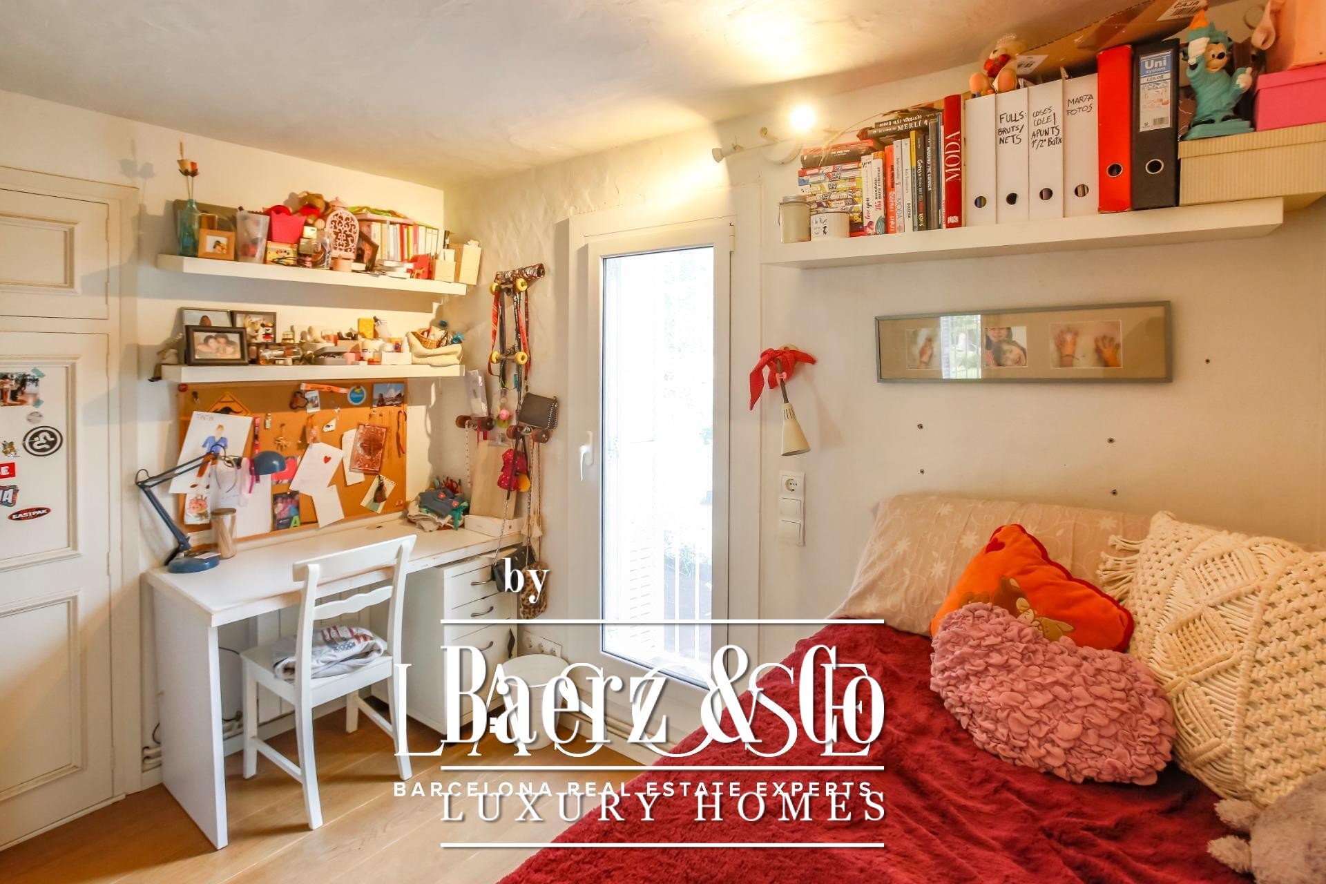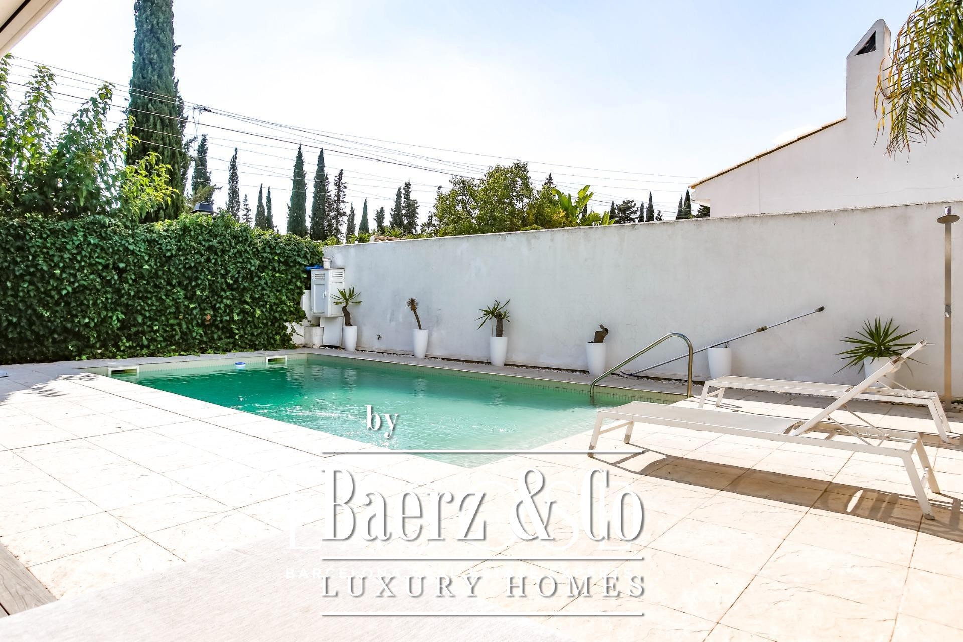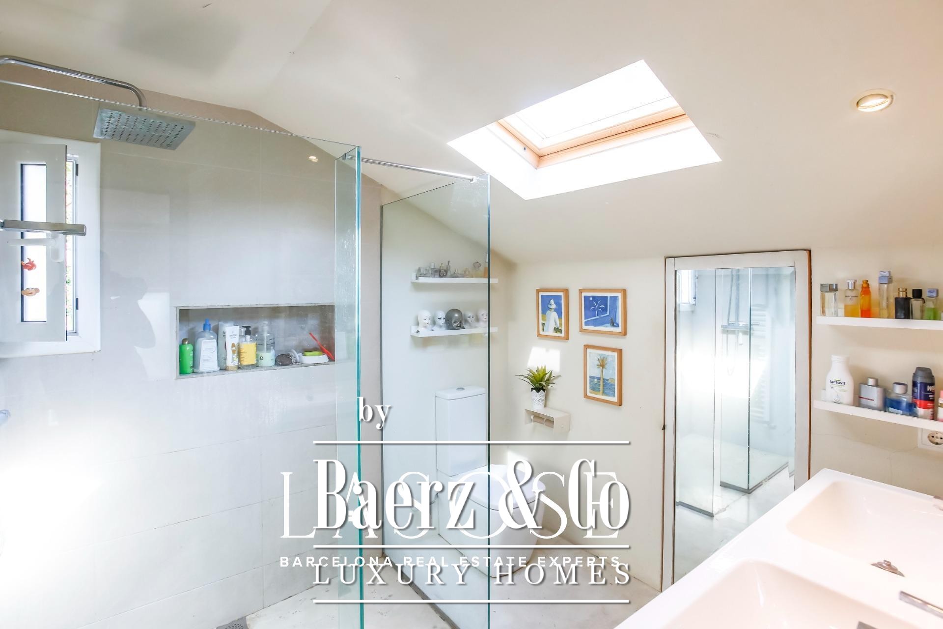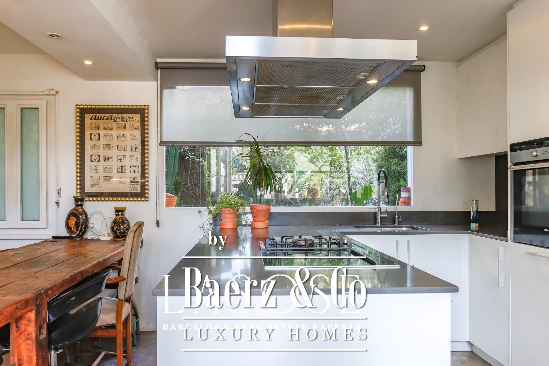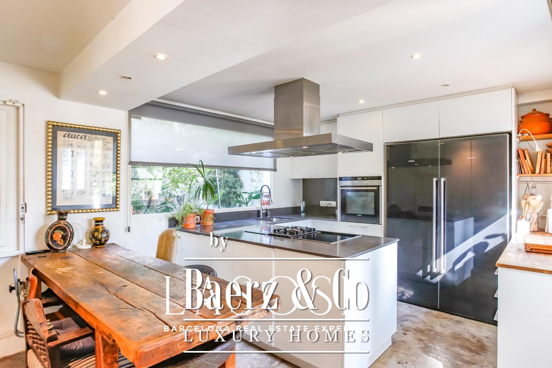 Los interiores se despliegan con ritmo armónico. Un elegante salón con chimenea se abre hacia el jardín. La cocina, totalmente equipada y con isla central, se conecta con un patio privado y zona de aparcamiento. En la planta baja, una suite de invitados o despacho complementa la versatilidad del espacio, mientras que en el primer piso destacan tres luminosos dormitorios dobles con vistas al jardín y techos a doble altura. Acabados refinados y tonos neutros realzan la elegancia natural de la arquitectura en toda la vivienda.