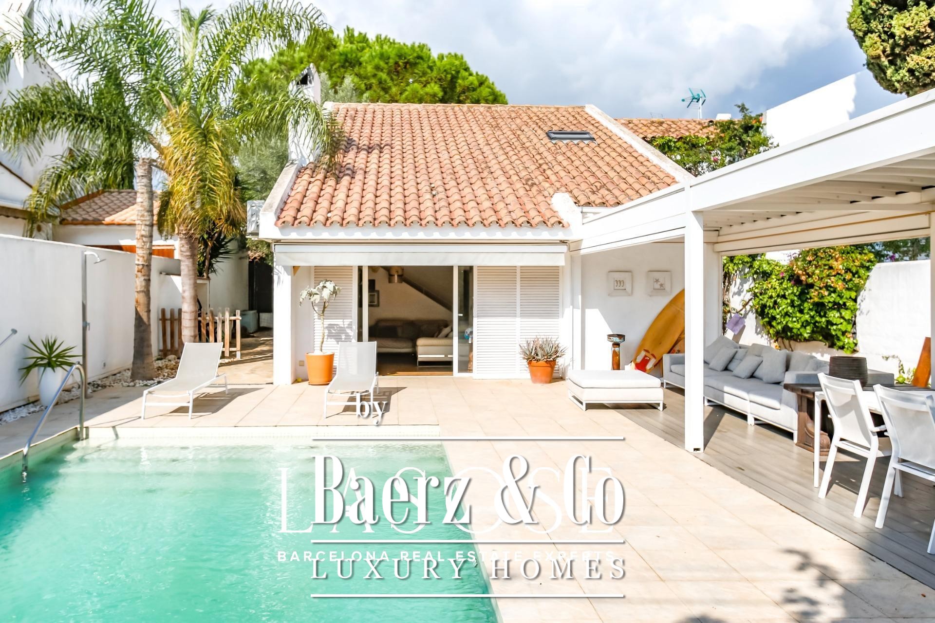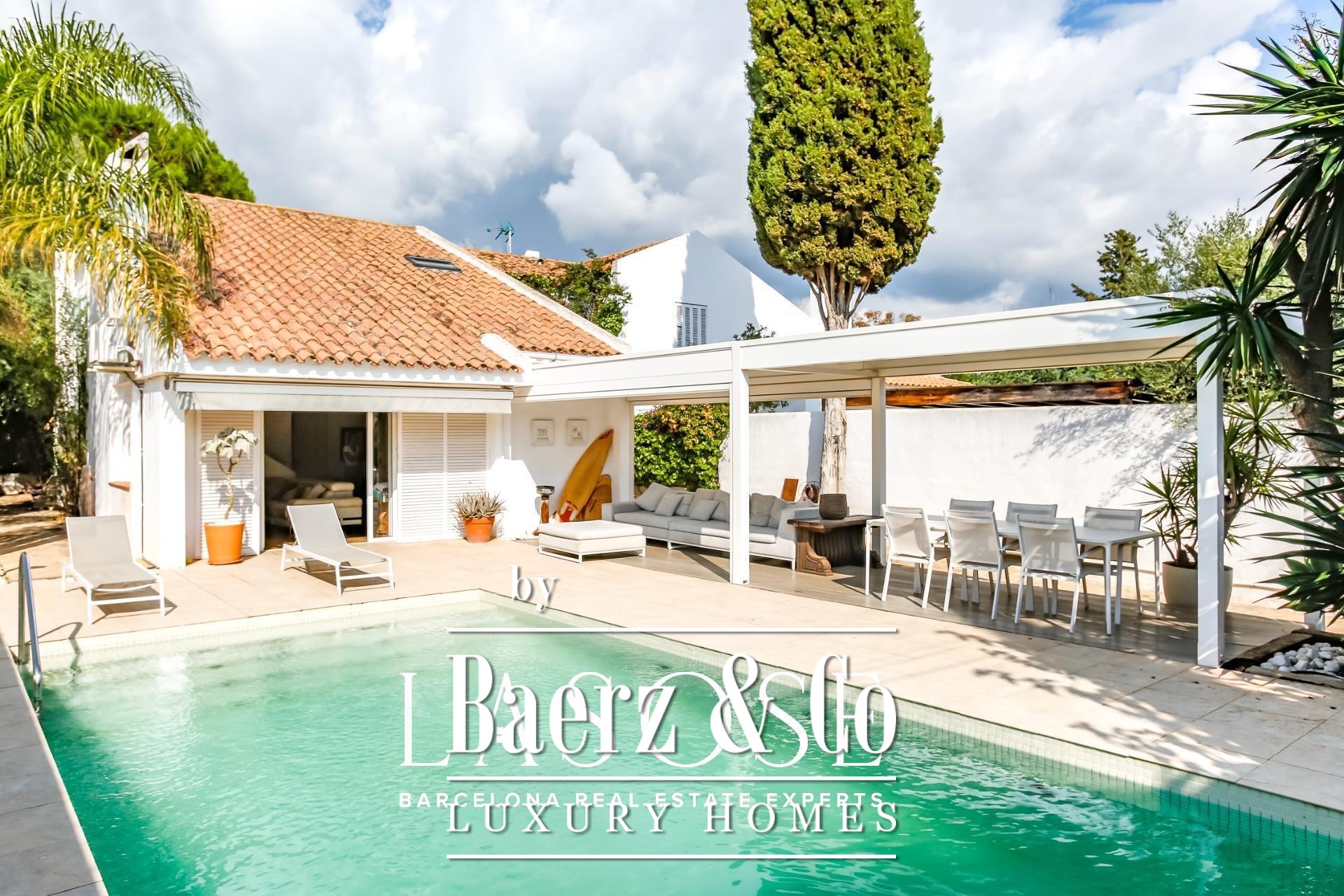 La casa independiente en Sant Pere de Ribes ofrece una estética mediterránea discreta en el exclusivo entorno de Los Viñedos. La vivienda presenta 155 m² de espacio cuidadosamente distribuido en una parcela de 355 m², con cuatro dormitorios y dos baños organizados para garantizar privacidad y fluidez. La luz entra a través de grandes ventanales correderos, conectando los espacios interiores con jardines exuberantes, terrazas lounge y una piscina privada, invitando tanto al sosiego diario como a reuniones tranquilas.