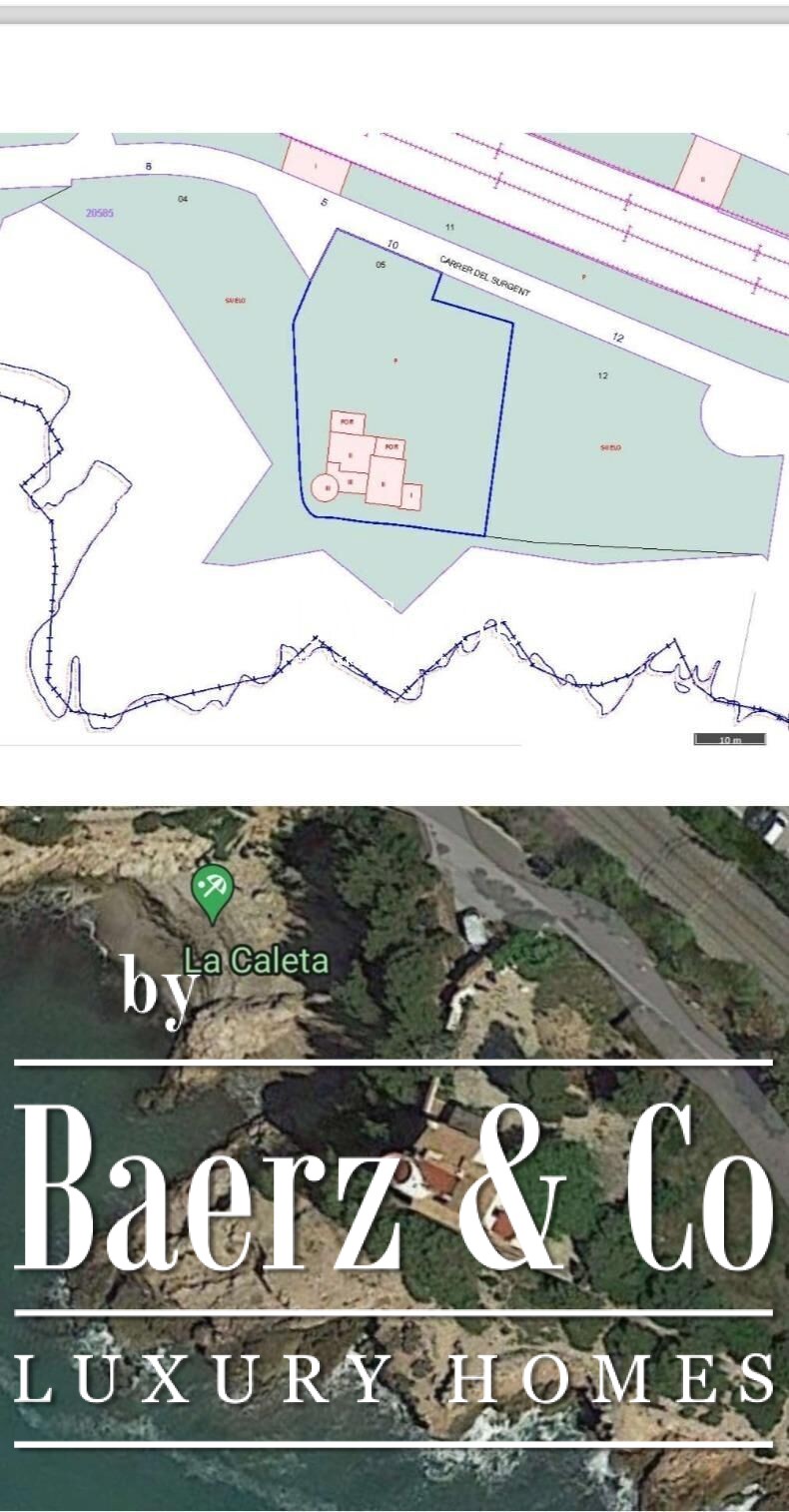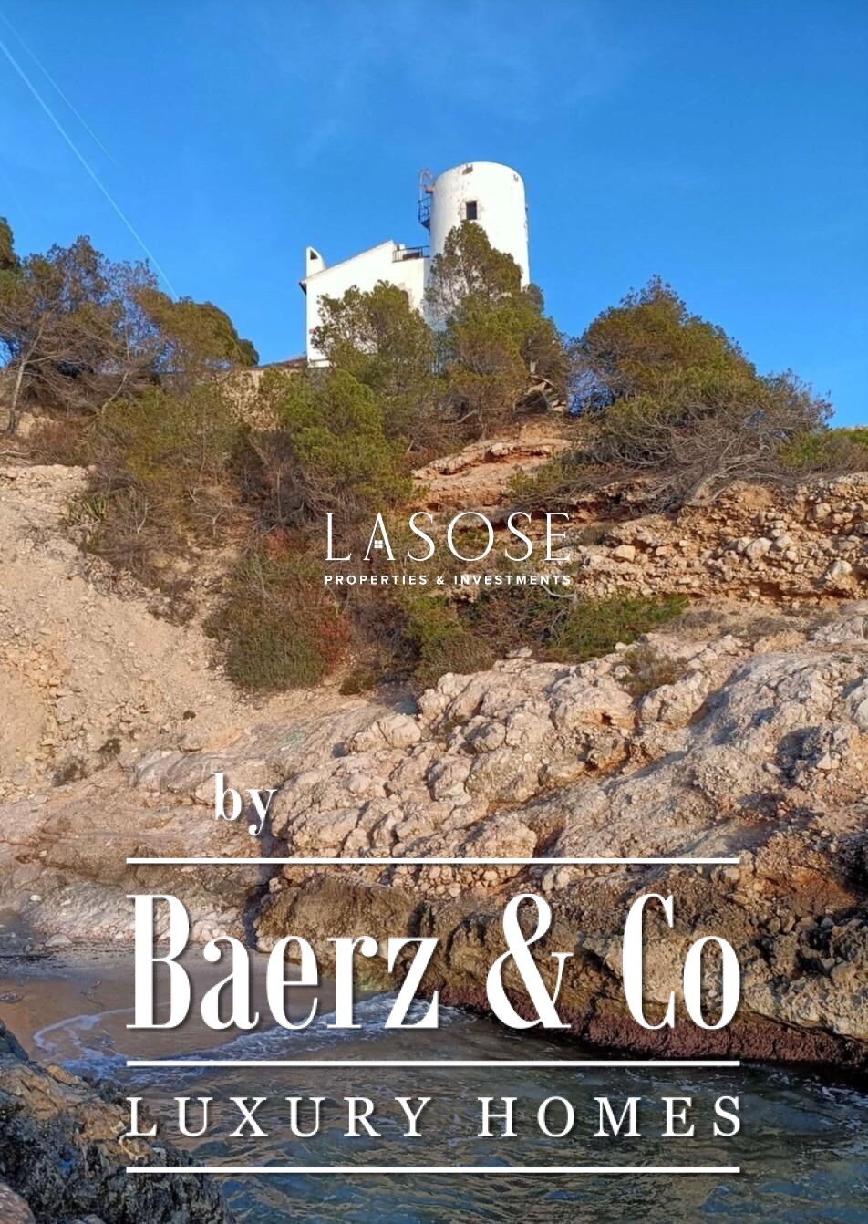 La propiedad dispone de 274 m² de vivienda distribuidos en tres plantas, marcadas por un distintivo estilo mediterráneo y coronadas por una torre vigía original. La planta principal presenta un elegante vestíbulo que da paso a tres luminosos salones, todos con vistas al mar y acceso a una amplia terraza sobre el agua. La cocina integra una zona de oficina y acceso a una bodega, y un baño con ducha completa la planta baja.