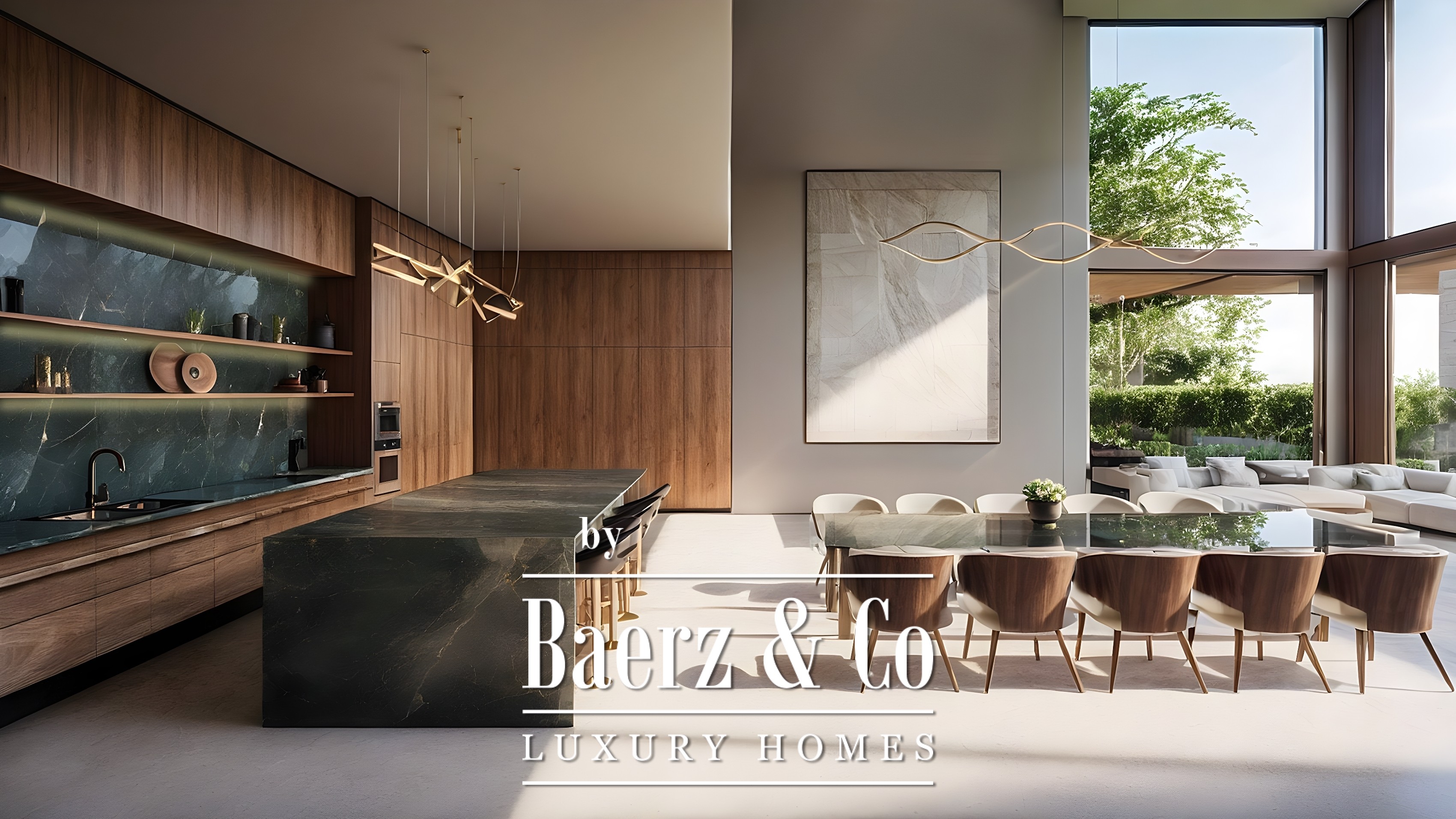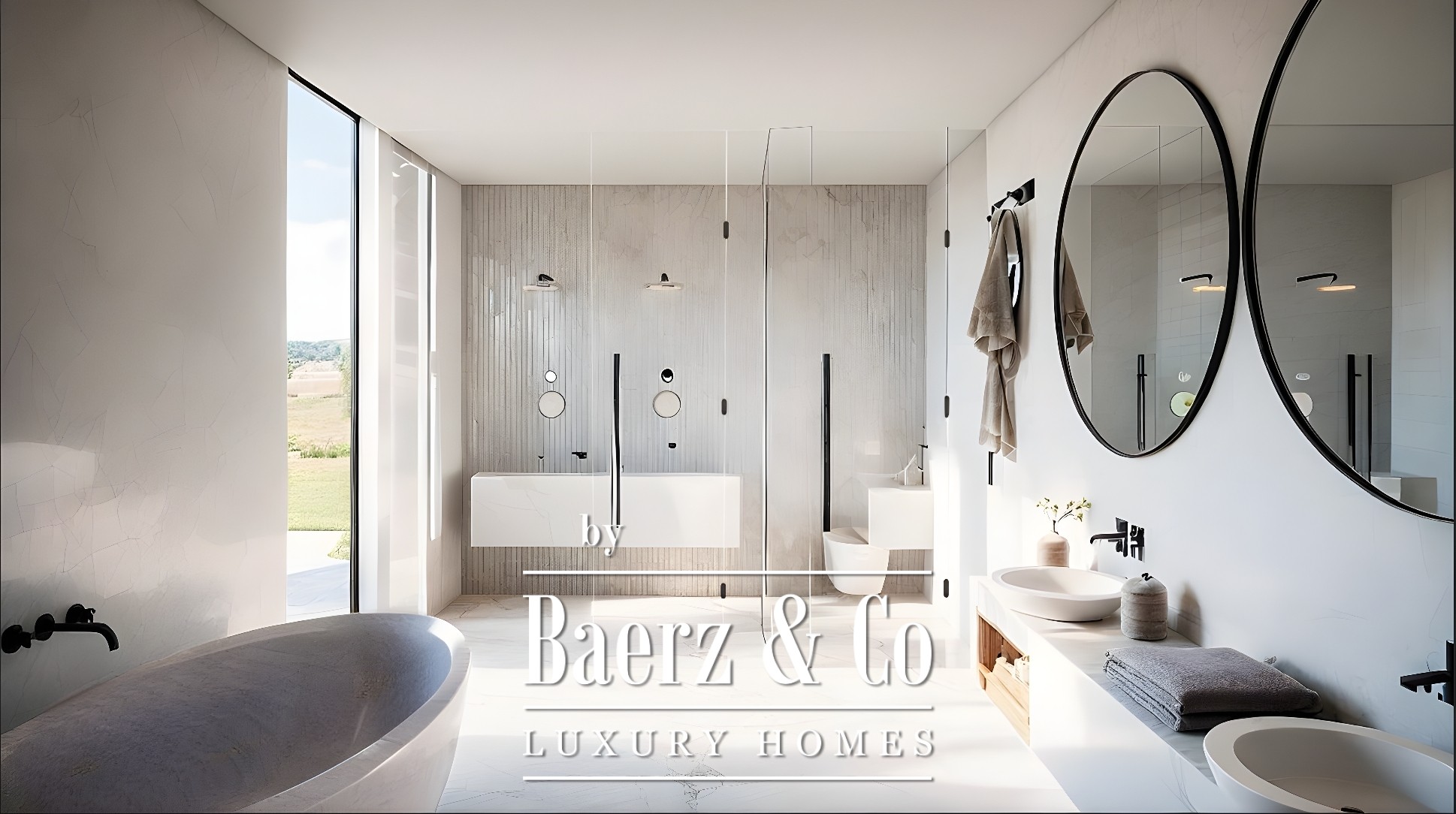 Al ingresar, la planta principal revela un salón, comedor y cocina integrados en más de 150 m², todos orientados hacia el jardín y la piscina mediante grandes ventanales que difuminan los límites entre el interior y el exterior. En este nivel, dos master suites disfrutan de baños privados y vestidores exclusivos.