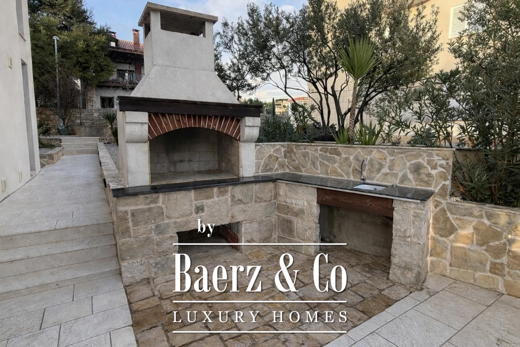 Los espacios exteriores transmiten el ritmo relajado del Mediterráneo, con un área de barbacoa y comedor completamente equipada, jardín cuidado y cuatro plazas de aparcamiento privadas. El sótano ofrece almacenamiento seguro para efectos personales o equipamiento náutico, adaptándose perfectamente al estilo de vida insular. Esta villa en Šolta encarna la esencia de la vida costera con una funcionalidad discreta y una perdurable sensación de refugio.