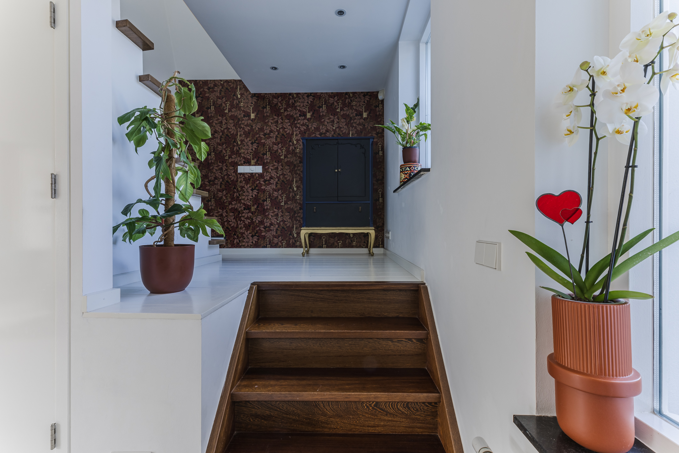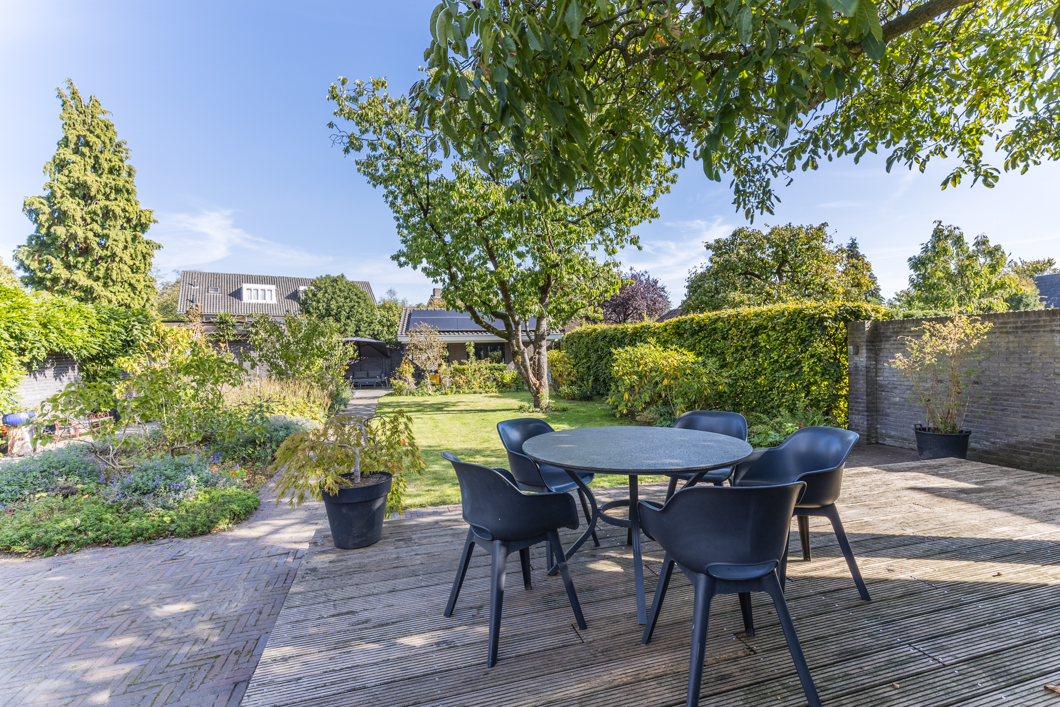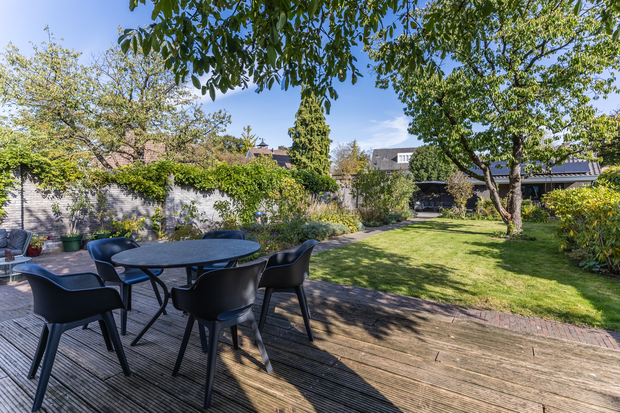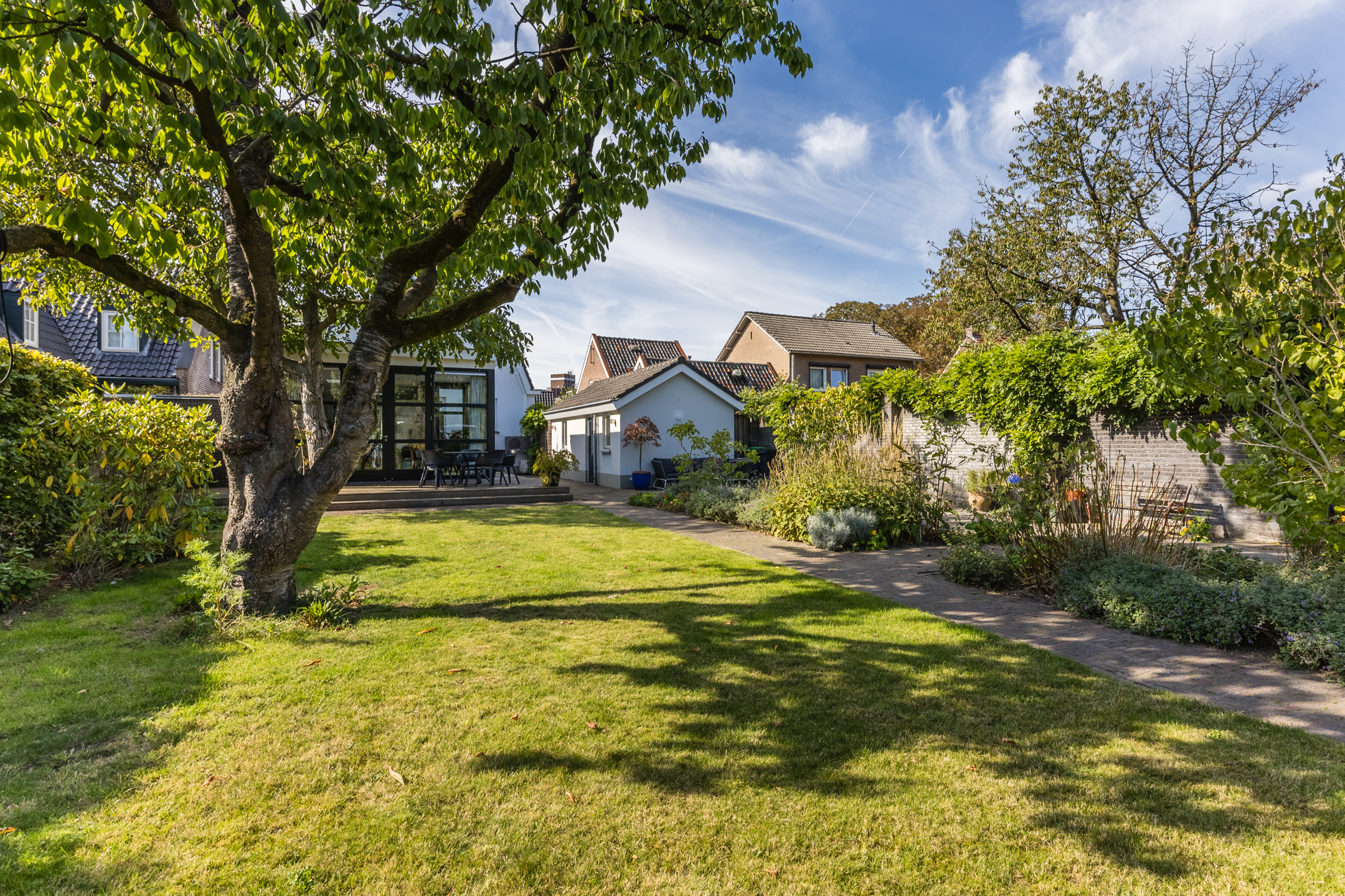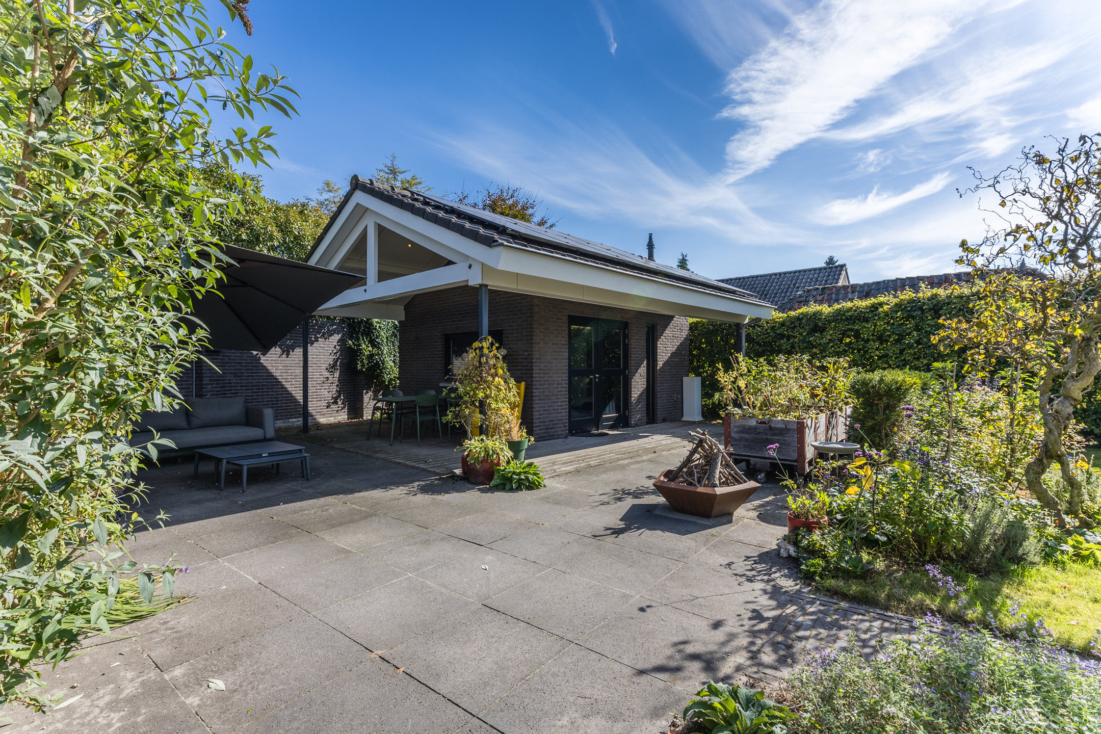 Más allá de la casa principal, el jardín privado y ajardinado se complementa con una construcción auxiliar aislada con baño propio y calefacción, ideal como despacho en casa, suite de invitados o estudio. Un garaje y una amplia entrada añaden comodidad práctica. La vivienda se encuentra en una zona tranquila del antiguo Uden, en una calle arbolada con acceso directo a los servicios del centro. La proximidad a la autopista A50 garantiza comunicación ágil con Eindhoven, Den Bosch y Nijmegen. Las reservas naturales de Maashorst y Lieverlingsbos invitan a disfrutar de actividades al aire libre.