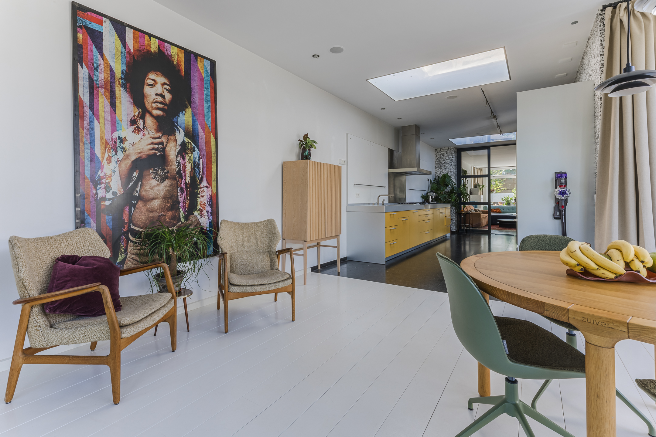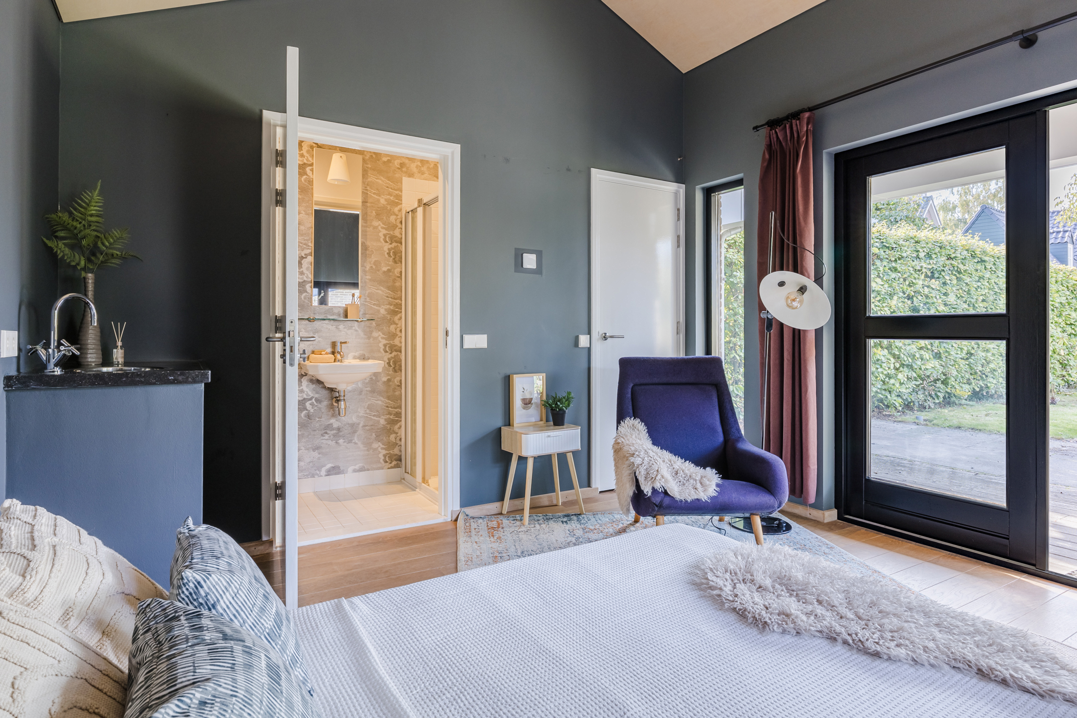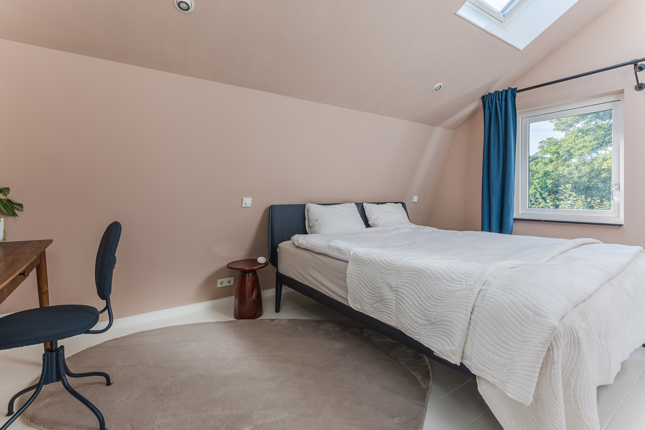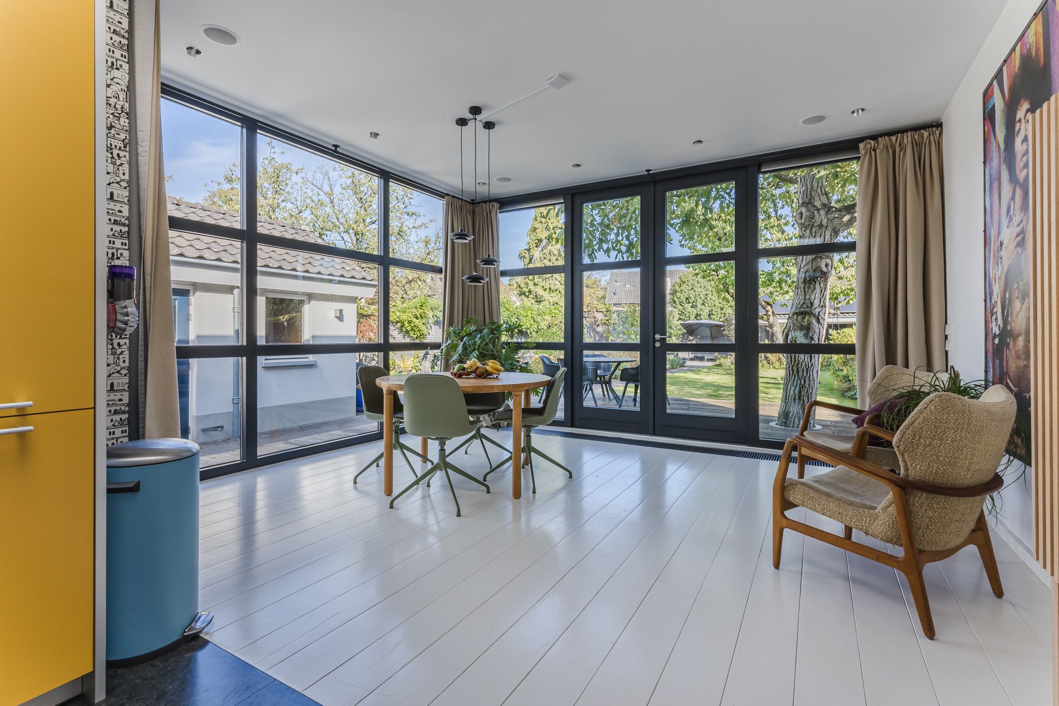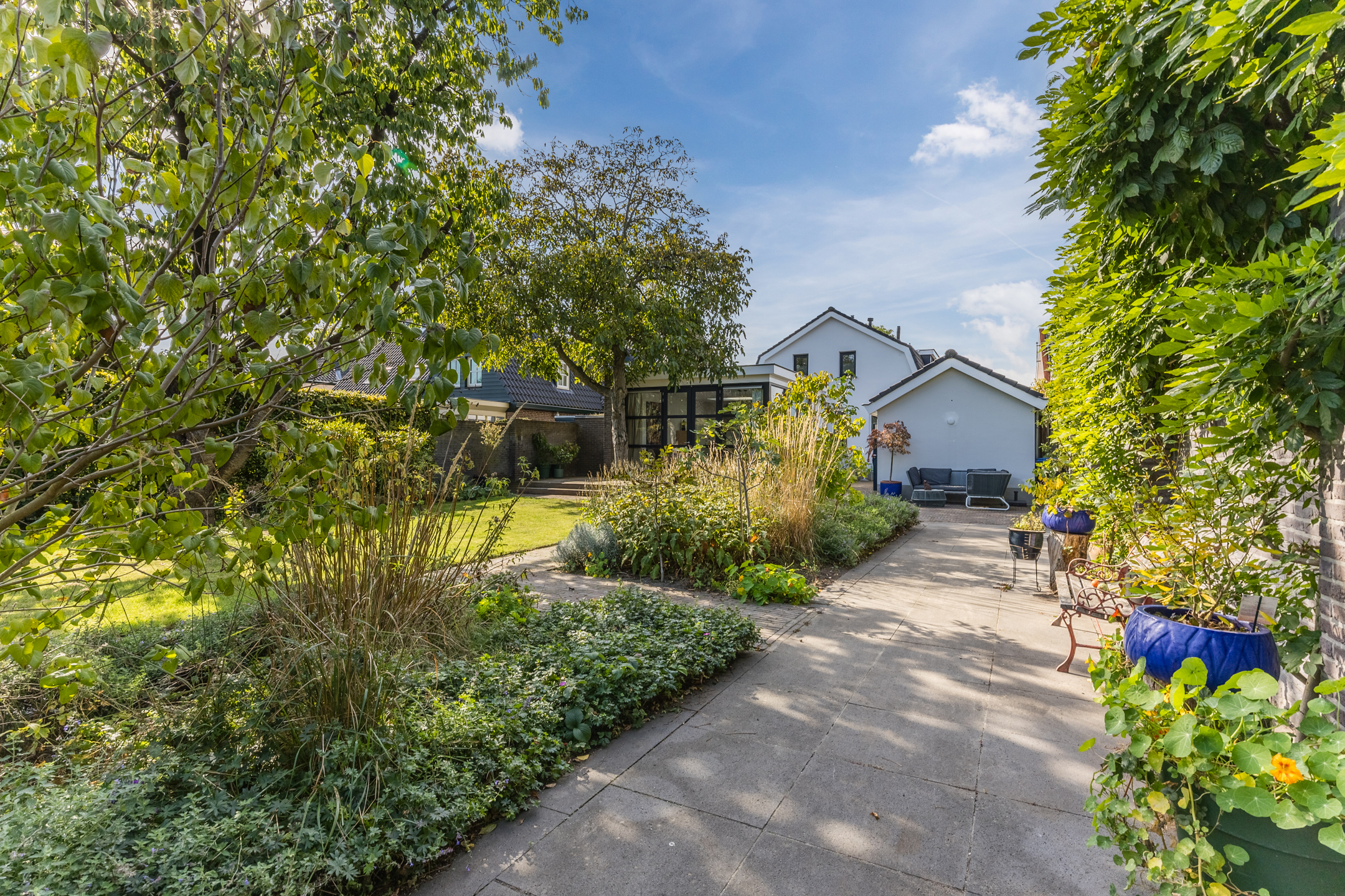 Más allá de la casa principal, el jardín privado y ajardinado se complementa con una construcción auxiliar aislada con baño propio y calefacción, ideal como despacho en casa, suite de invitados o estudio. Un garaje y una amplia entrada añaden comodidad práctica. La vivienda se encuentra en una zona tranquila del antiguo Uden, en una calle arbolada con acceso directo a los servicios del centro. La proximidad a la autopista A50 garantiza comunicación ágil con Eindhoven, Den Bosch y Nijmegen. Las reservas naturales de Maashorst y Lieverlingsbos invitan a disfrutar de actividades al aire libre.