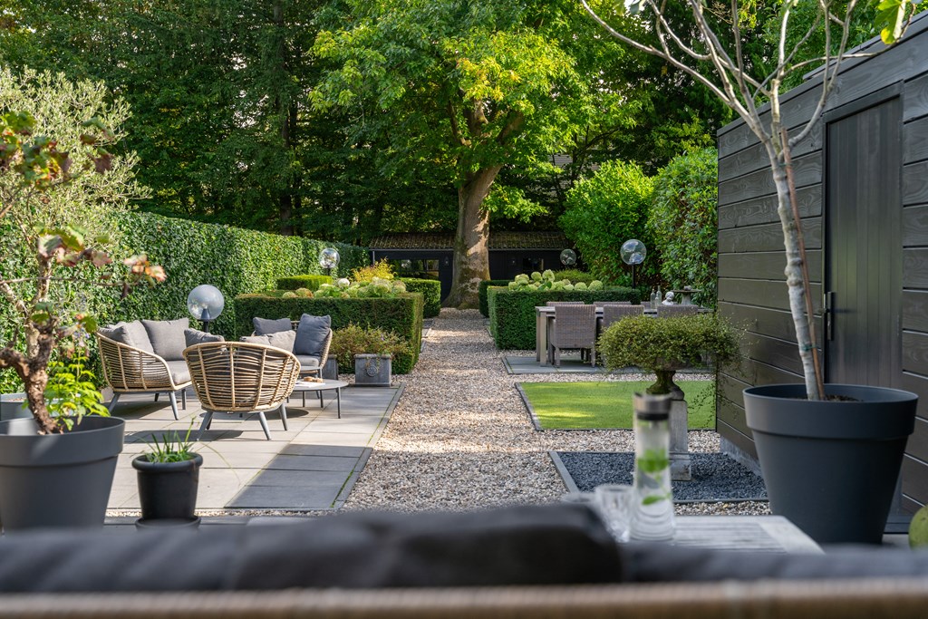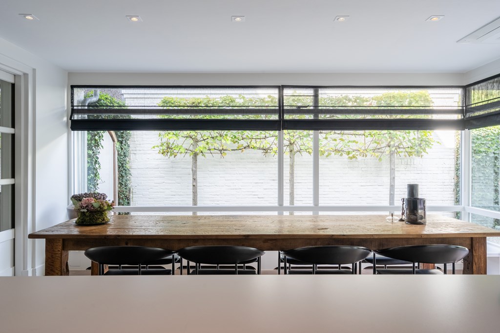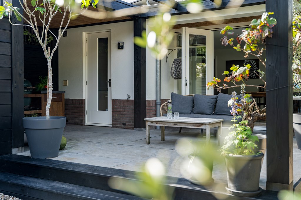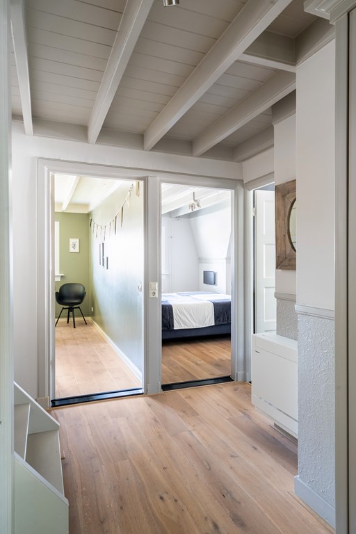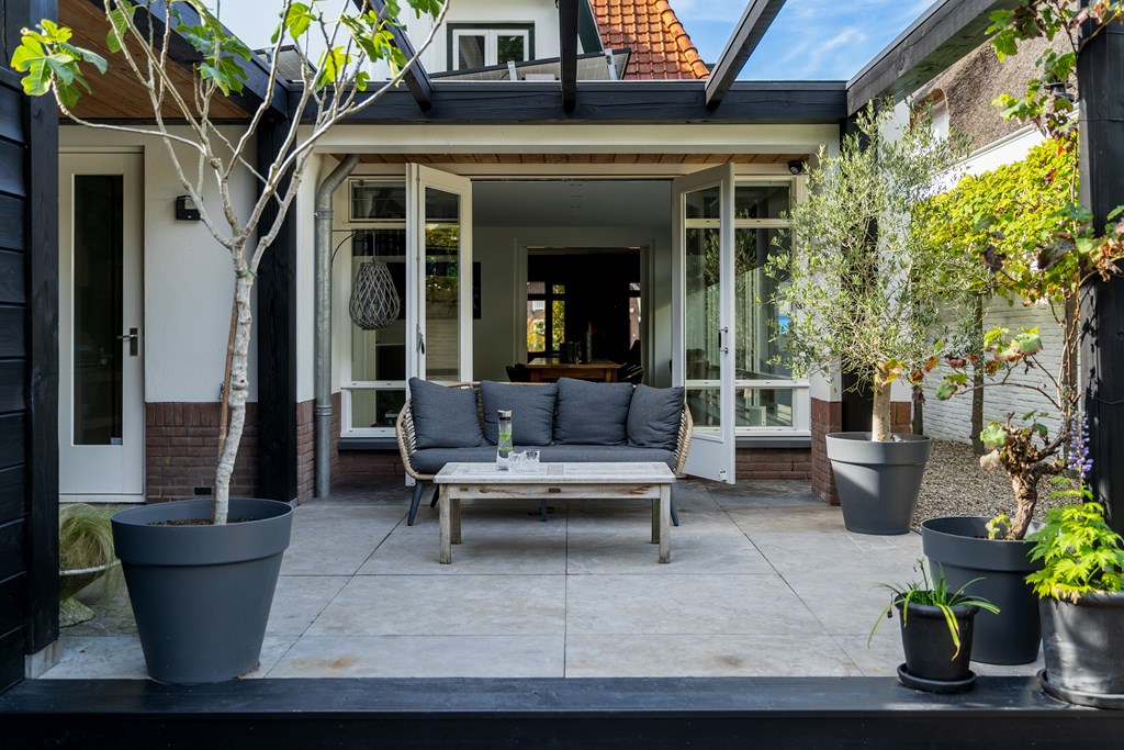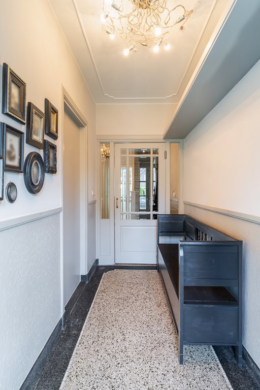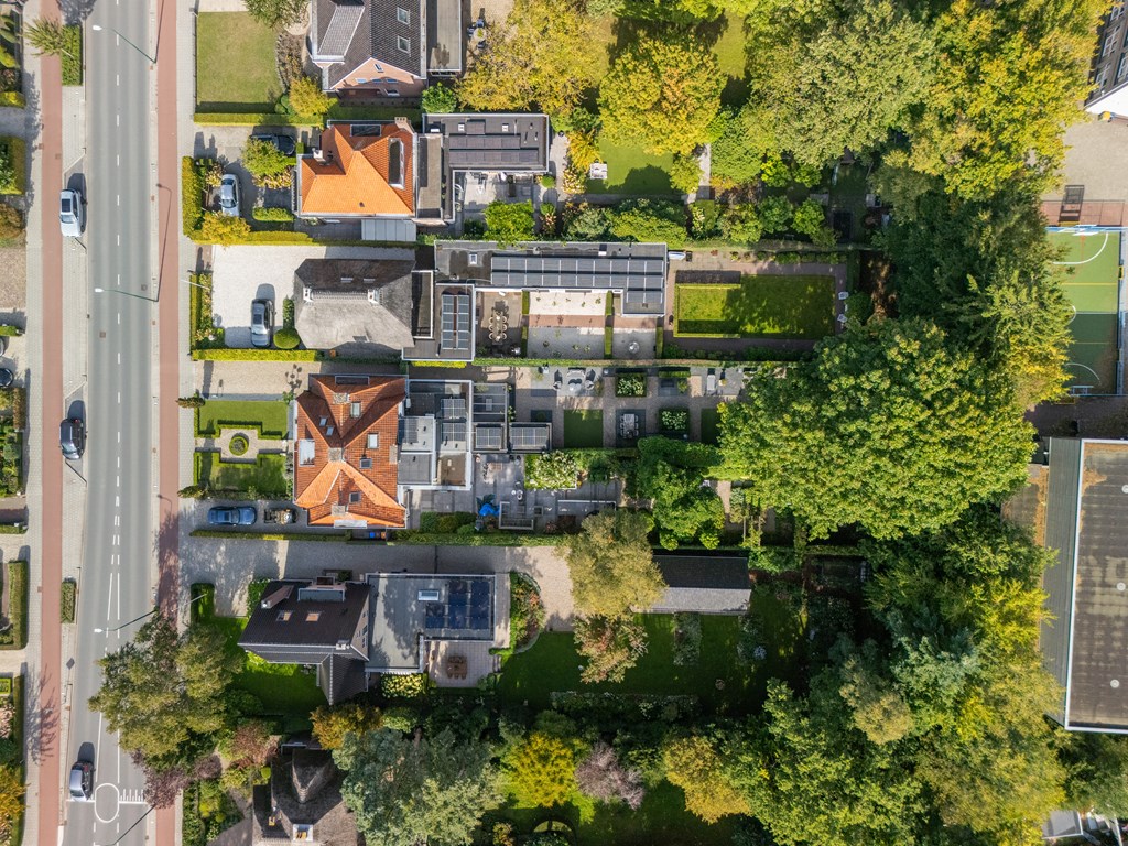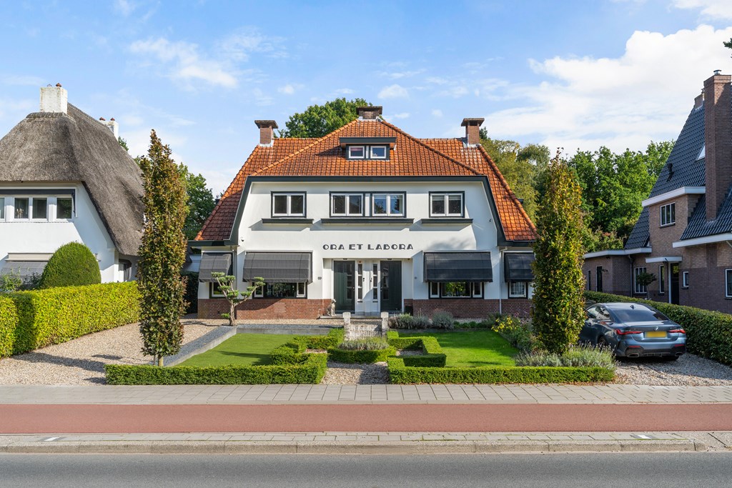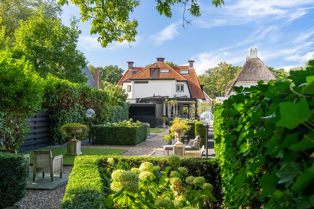 En el exterior, el jardín orientado al sureste se extiende casi 45 metros de profundidad, con varias terrazas, zonas ajardinadas y una veranda acondicionada para cada estación. Los elementos arquitectónicos originales, como el relieve Ora et Labora y su designación como monumento municipal desde 2010, refuerzan la identidad del inmueble. Su ubicación brinda acceso inmediato a la vida cultural de Veenendaal, así como a los bosques y praderas del Utrechtse Heuvelrug.