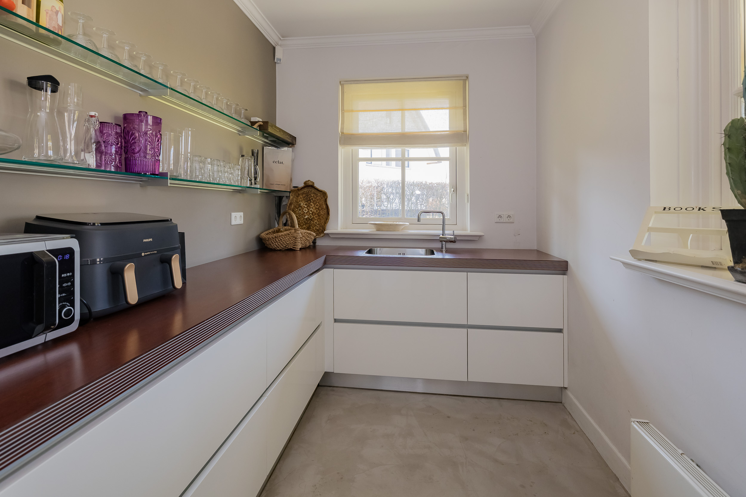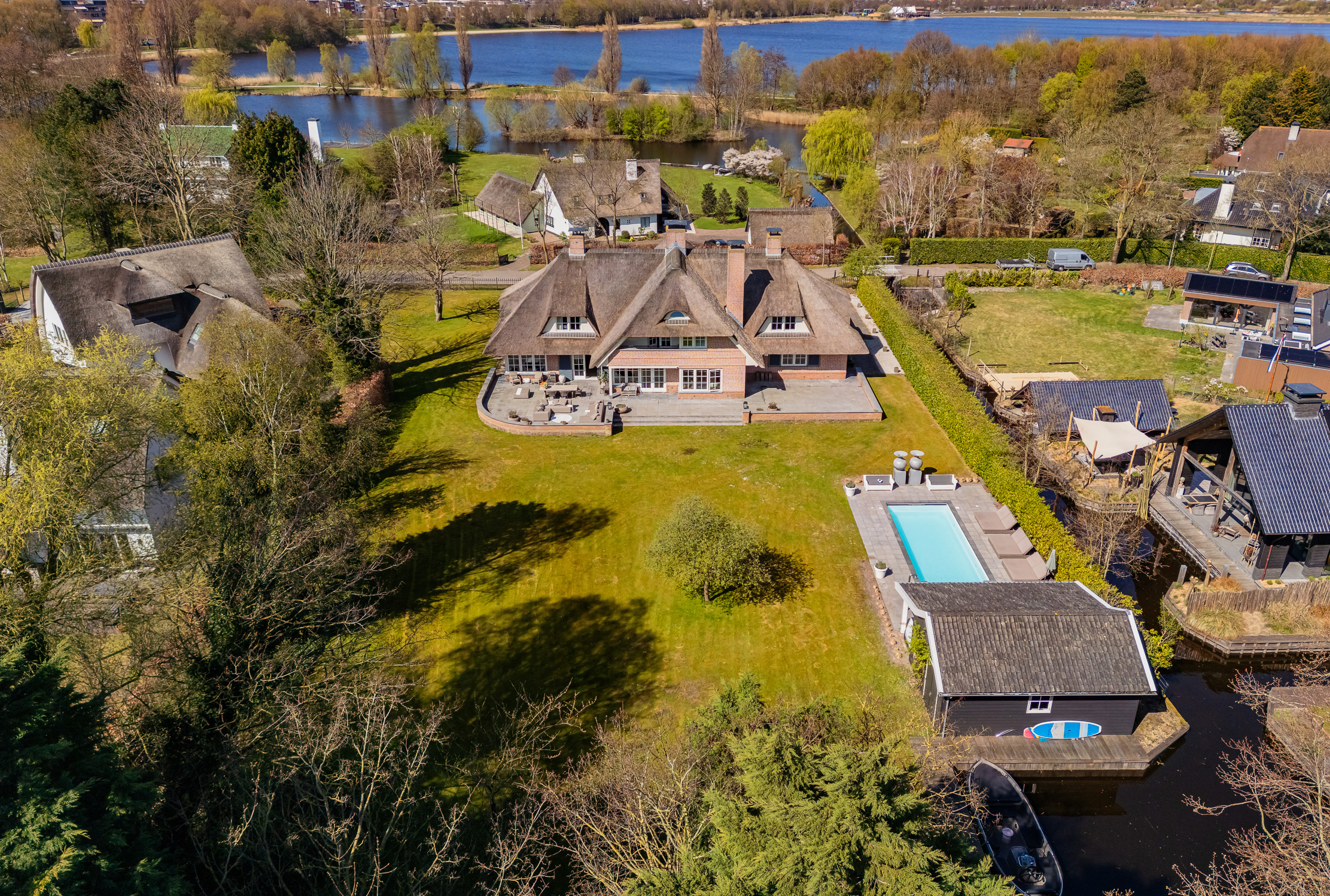 En el exterior, la privacidad y la tranquilidad permanecen intactas gracias a un jardín perimetral maduro, piscina climatizada con casa anexa y amplias terrazas en la parte delantera y trasera. El agua rodea la propiedad, que dispone de un muelle privado para hasta tres embarcaciones, brindando acceso privilegiado a los Kagerplassen y los canales de Leiden. Hay abundante aparcamiento, acceso seguro con portón eléctrico y un garaje doble de 70 m².