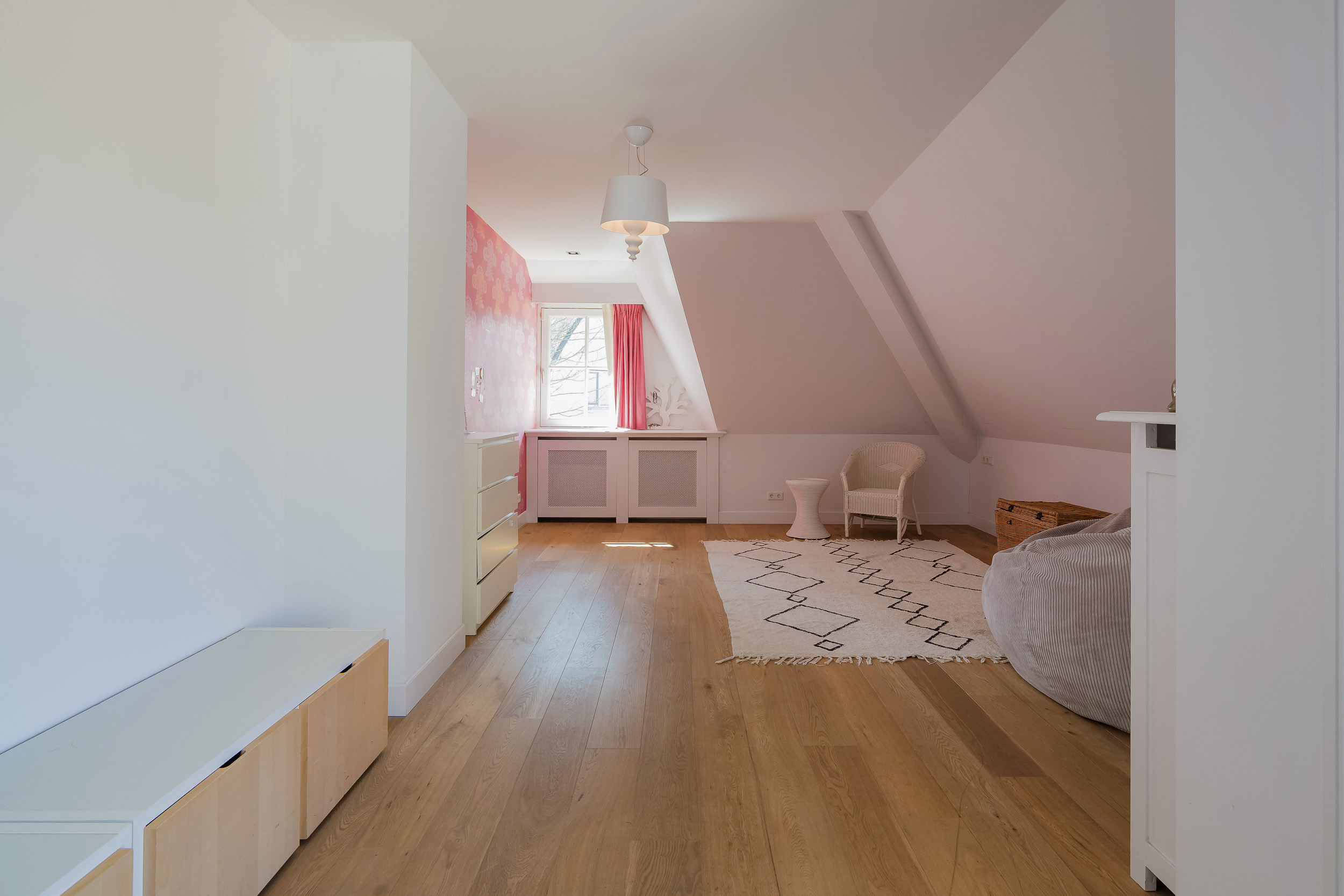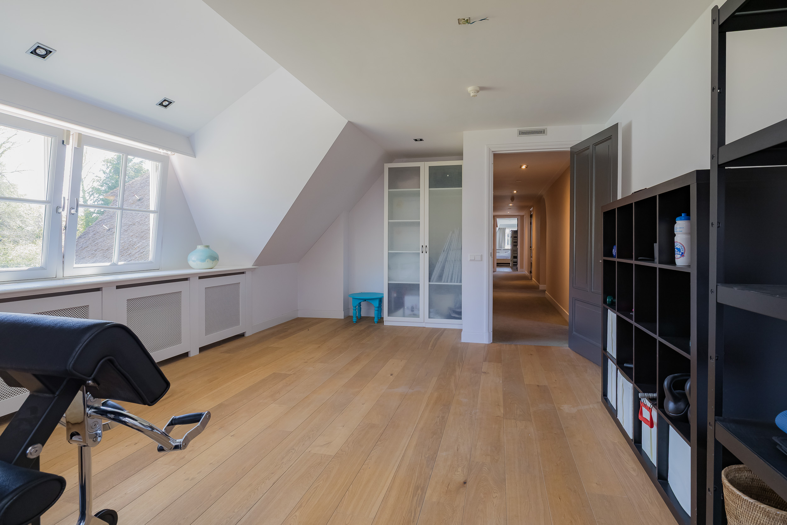 Al entrar, la sensación de amplitud imprime un ambiente sereno y acogedor. El salón principal se organiza en torno a una chimenea de piedra arenisca, mientras los amplios ventanales enmarcan el jardín e inundan las estancias de luz natural. La cocina-comedor, equipada con isla de trabajo y electrodomésticos de alta gama, abre la vista hacia el verde y cuenta con una moderna chimenea de gas. Cinco dormitorios y dos baños se distribuyen en la planta superior; la suite principal disfruta de su propio balcón y cuarto de baño privado. El ático, totalmente diáfano con 81 m², ofrece potencial para más dormitorios o una suite de invitados.