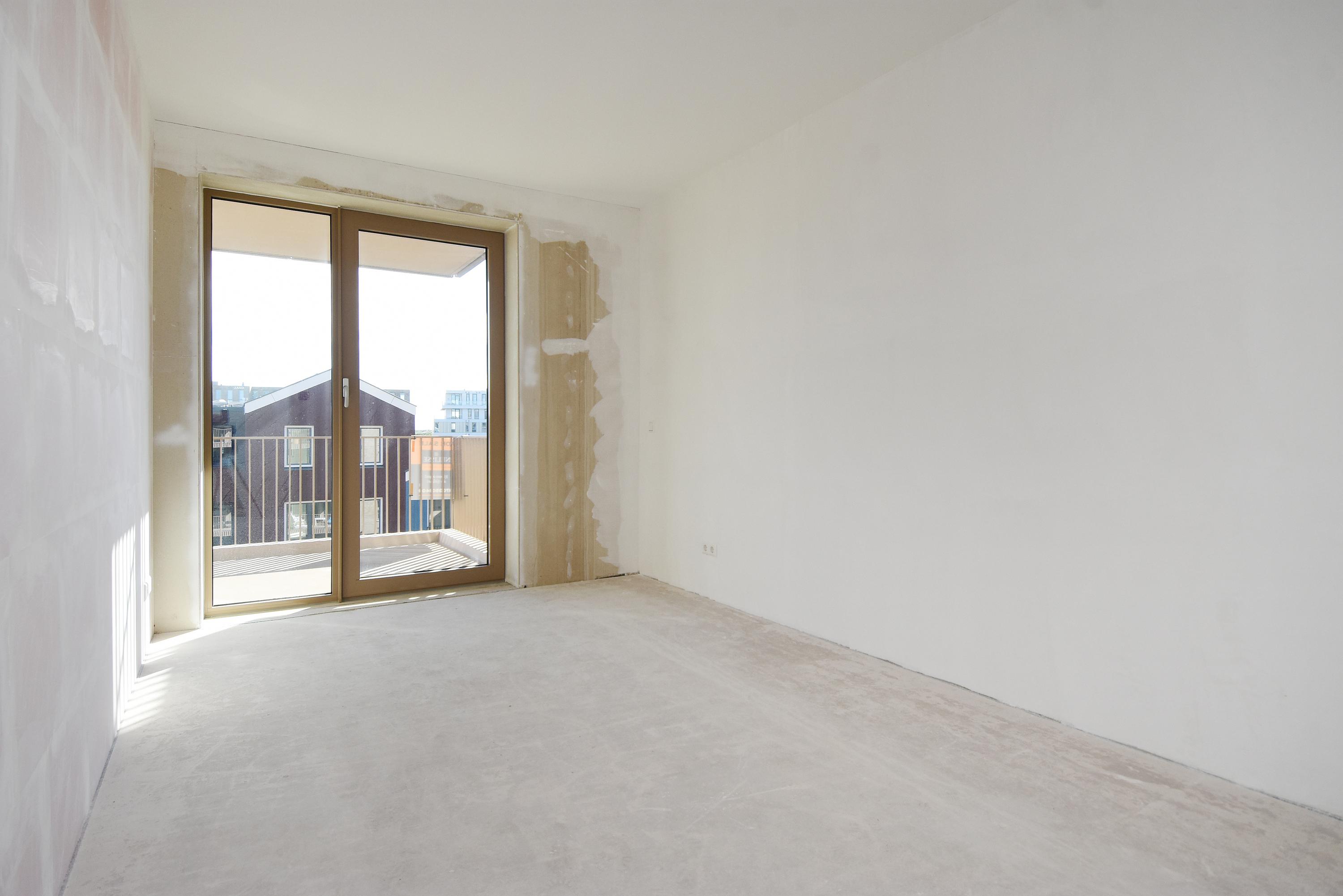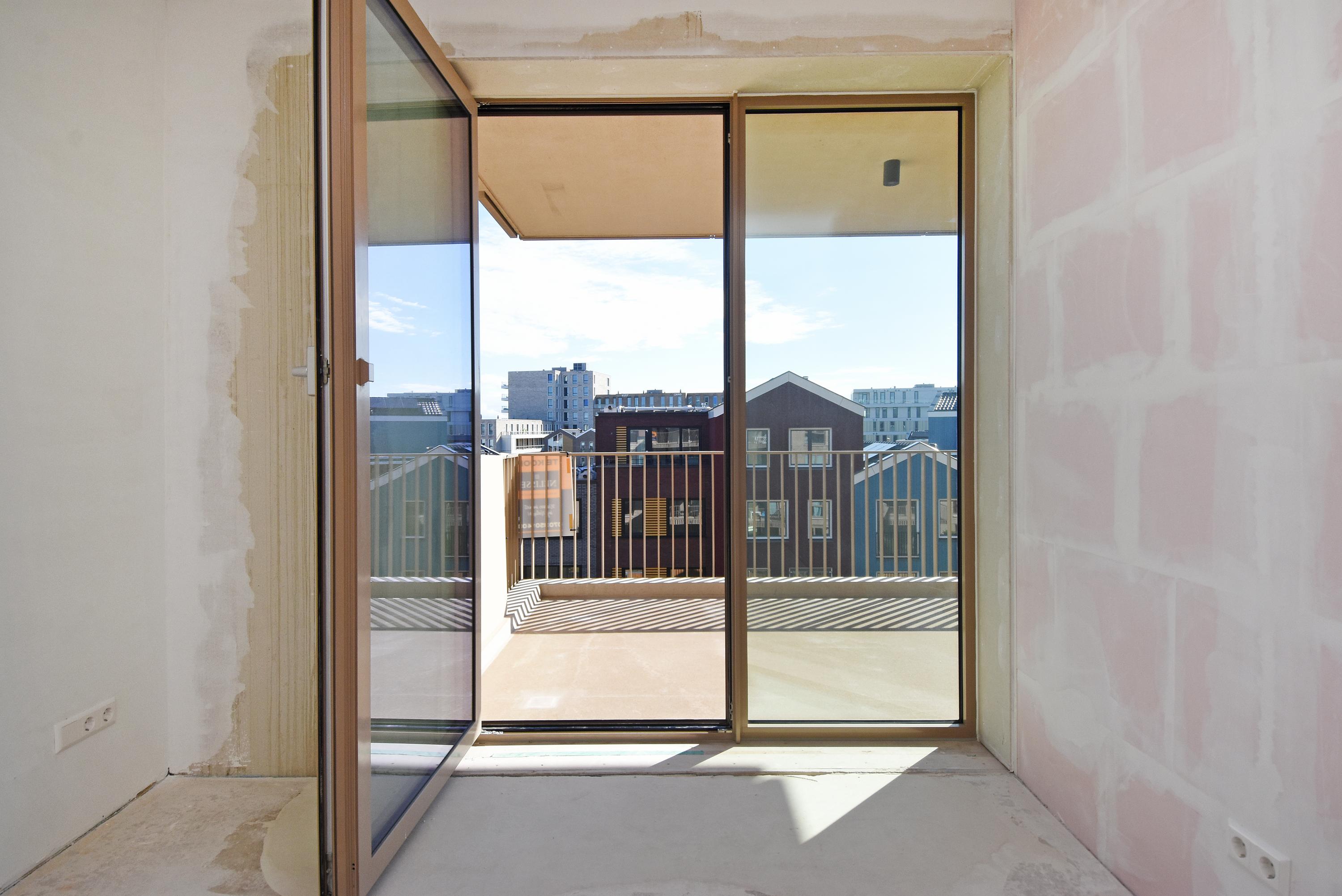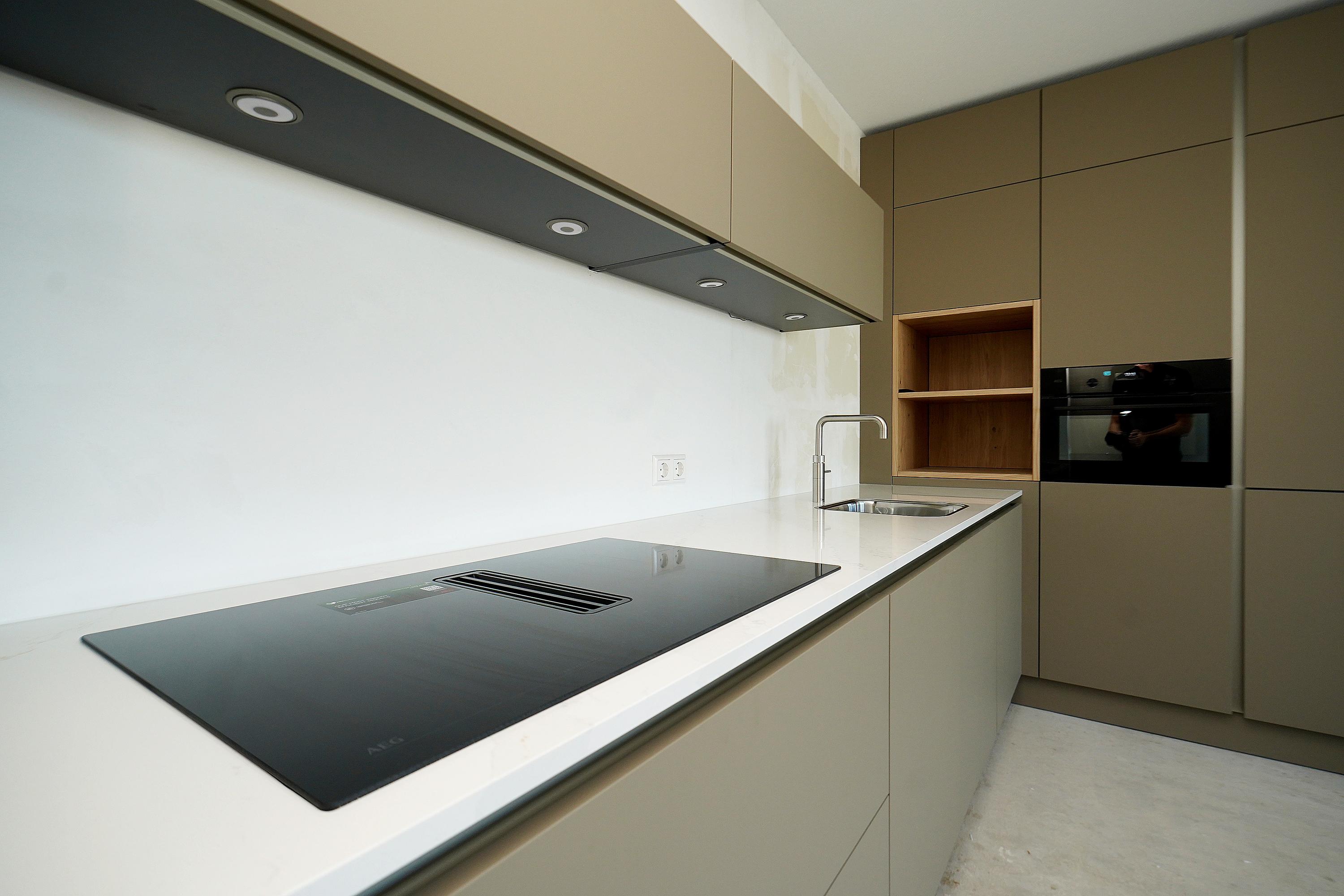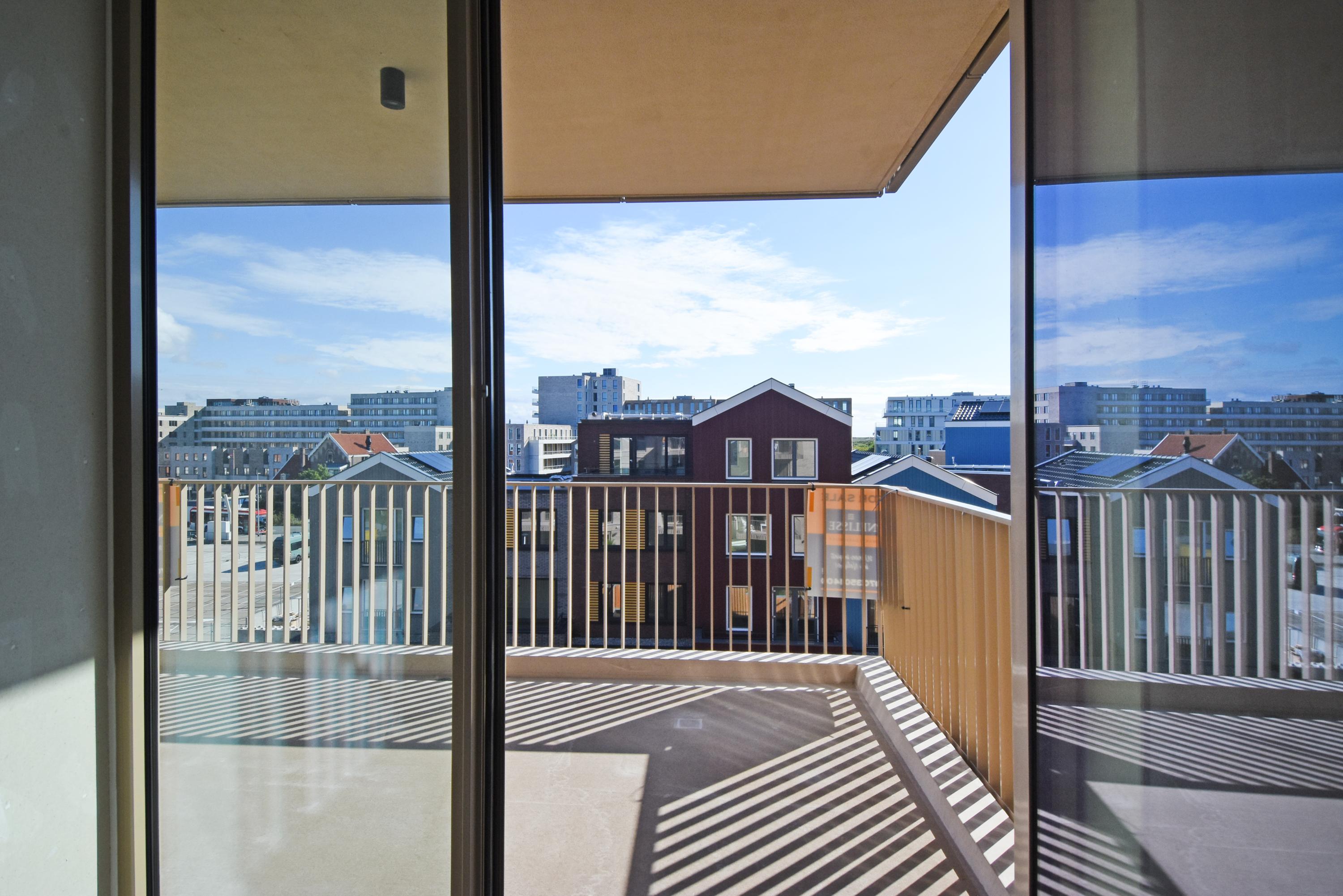Le séjour ouvert s’articule autour d’une cuisine NEXT-125 avec plan de travail en composite et électroménager intégré, comprenant un robinet Quooker, une plaque à induction avec ventilation intégrée et un four combiné. Un système de chauffage et de rafraîchissement par le sol s’étend dans tout l’appartement, atteignant l’efficacité du label énergétique A+++. Toutes les pièces, à l’exception de l’espace technique, baignent dans le confort. À l’arrière, le balcon exposé plein sud offre des moments de calme avec vue sur une cour commune, accessible depuis les deux chambres.
