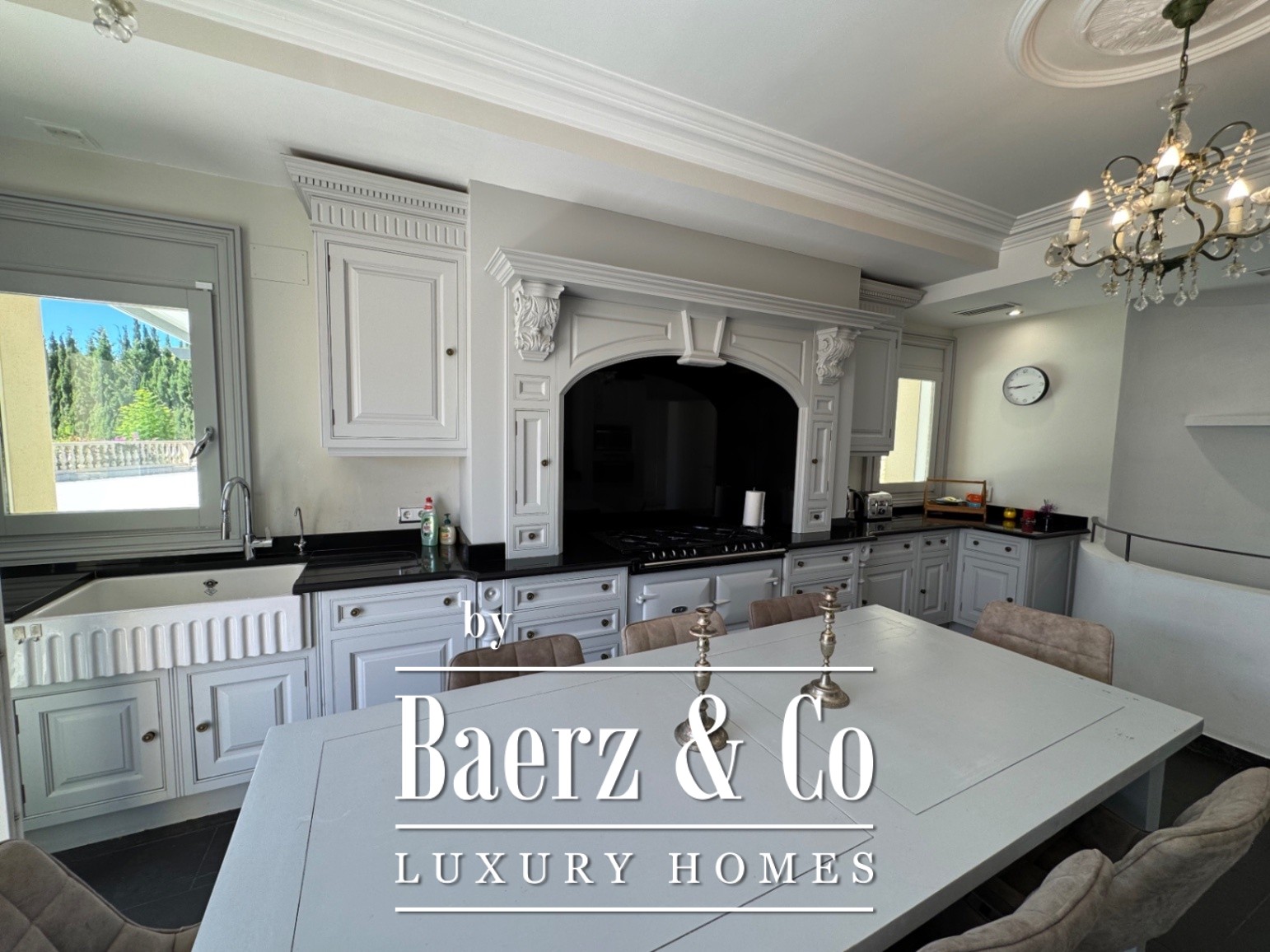 Un élégant hall d’entrée mène à des intérieurs baignés de lumière, articulés autour d’un salon avec cheminée et d’une salle à manger indépendante, tous deux ouvrant directement sur des terrasses ouvertes et couvertes. La cuisine est entièrement aménagée et comprend des toilettes invités ainsi qu’un bureau distinct pour travailler en toute quiétude. À l’étage, trois chambres sont desservies par deux salles de bains, dont une en suite, assurant sérénité et intimité.