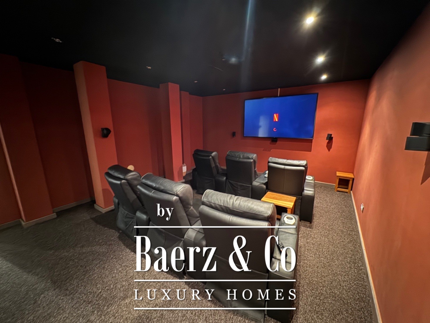 Le rez-de-chaussée est dédié au bien-être avec une salle de cinéma privée, un espace spa, une salle de sport et une buanderie, complétés par un appartement indépendant comprenant trois chambres et une cuisine équipée. Un garage pouvant accueillir trois voitures côtoie des espaces extérieurs soigneusement aménagés : piscine, jardin paysager et parcelle close et sécurisée de 6 315 m².