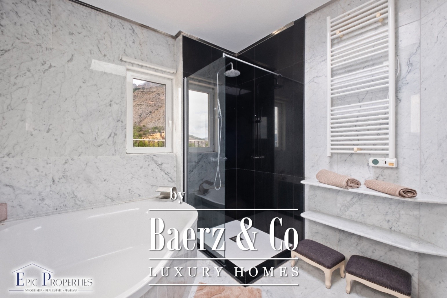 À l’extérieur, deux piscines invitantes — dont l’une avec cascade —, un solarium avec accès dédié, un espace barbecue et des jardins matures subliment le quotidien d’une élégance toute en discrétion. Un parking généreux, un carport et des prestations soignées telles que le double vitrage, une porte blindée et un terrain clos soulignent le confort de vie pour ceux qui recherchent authenticité, sérénité et douceur intemporelle d’Altea. Cette villa contemporaine se distingue comme une option raffinée pour l’acquisition d’une propriété de luxe à Altea avec des espaces intérieurs et extérieurs exemplaires.