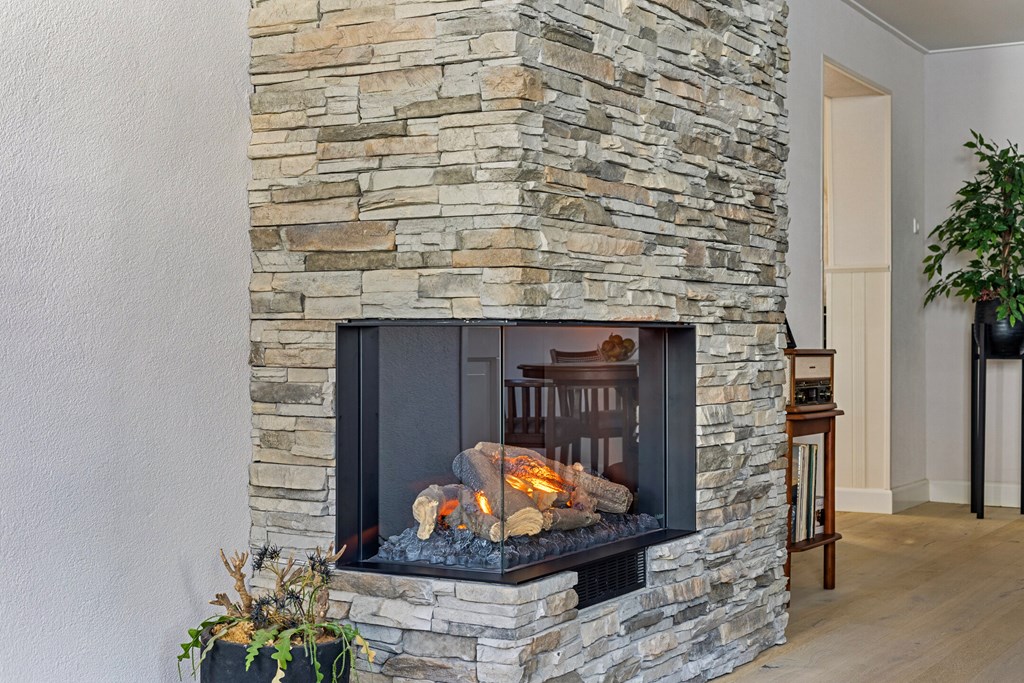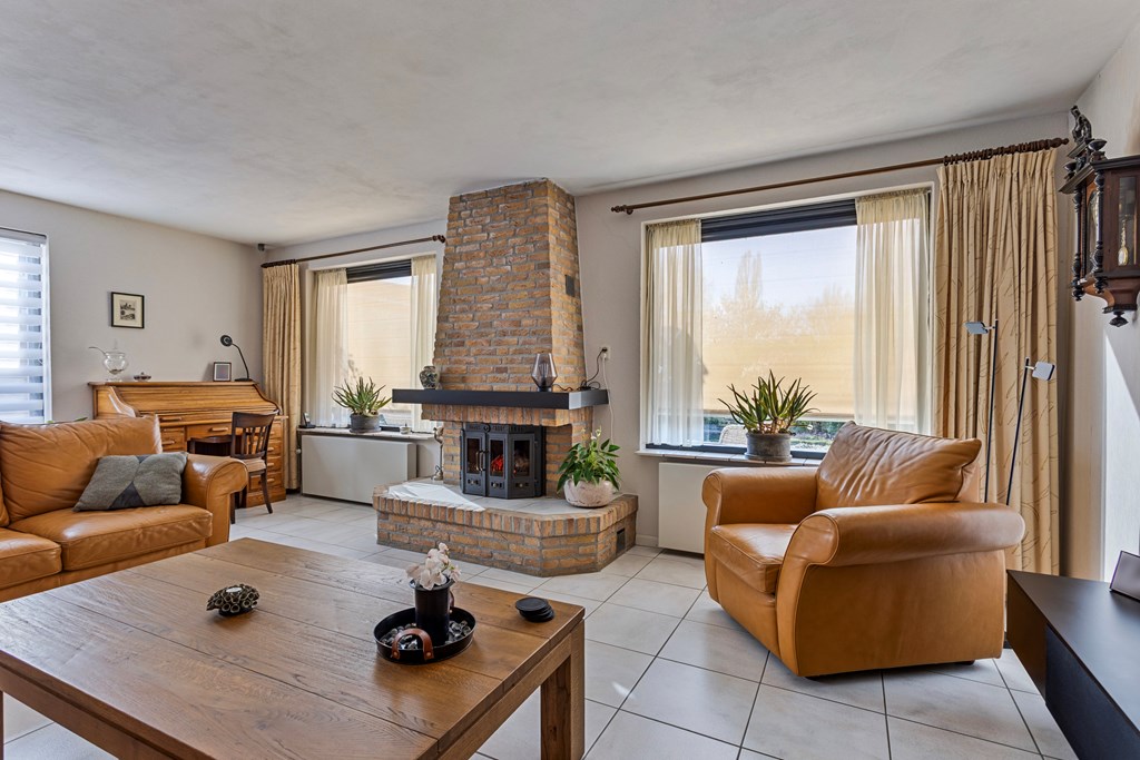L’entrée est discrète et mène depuis une allée privée permettant de stationner deux véhicules sous un carport couvert. À l’intérieur, de larges couloirs insufflent une atmosphère harmonieuse et relient les espaces de vie. Le salon principal est ouvert et accueillant, naturellement éclairé et agrémenté d’une cheminée électrique. La cuisine attenante se veut fonctionnelle, tout en laissant place à une modernisation à votre goût. Un second salon à l’arrière dispose d’une cheminée ouverte, d’un chauffage au sol et d’une vue sur le jardin.