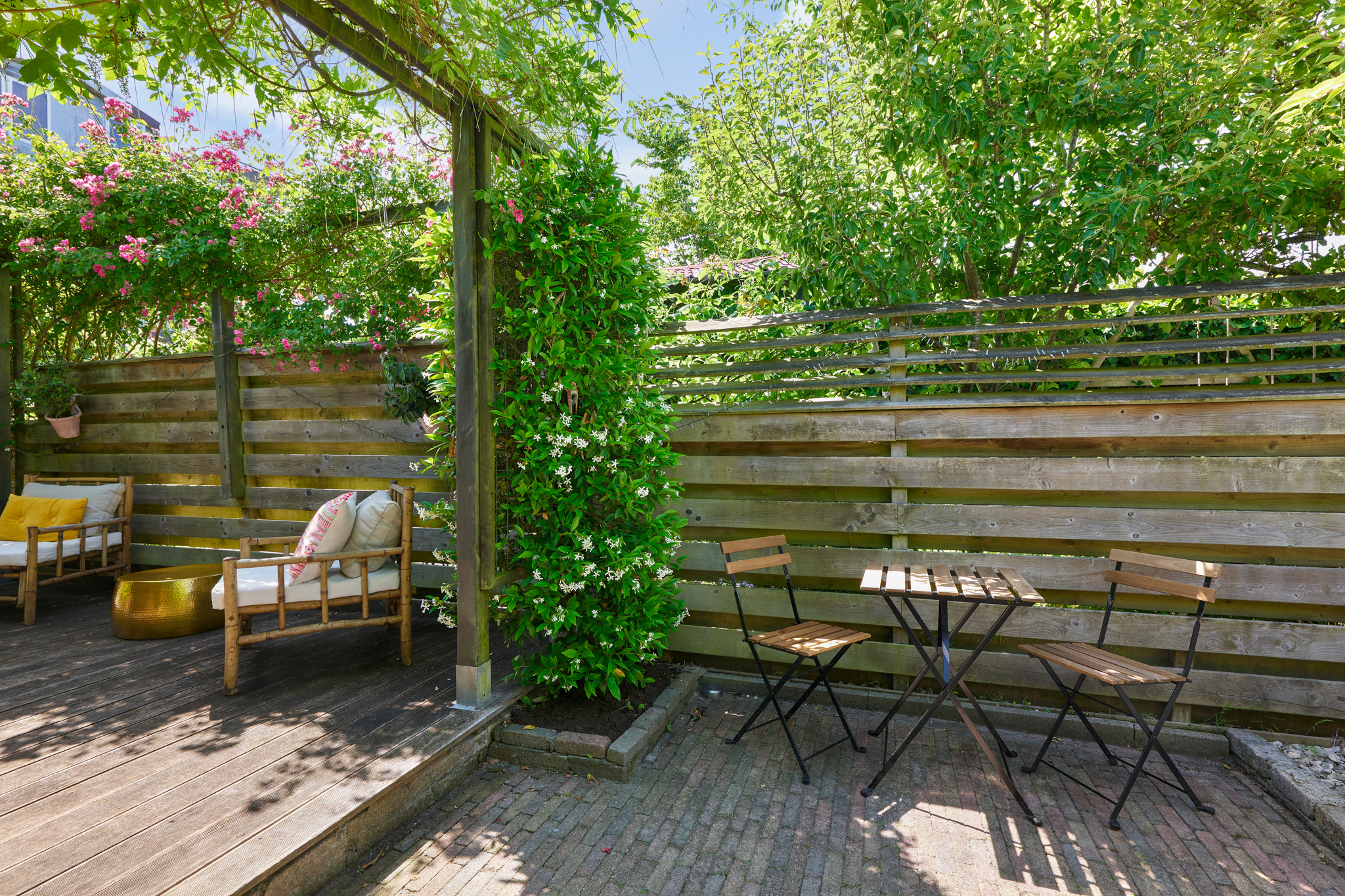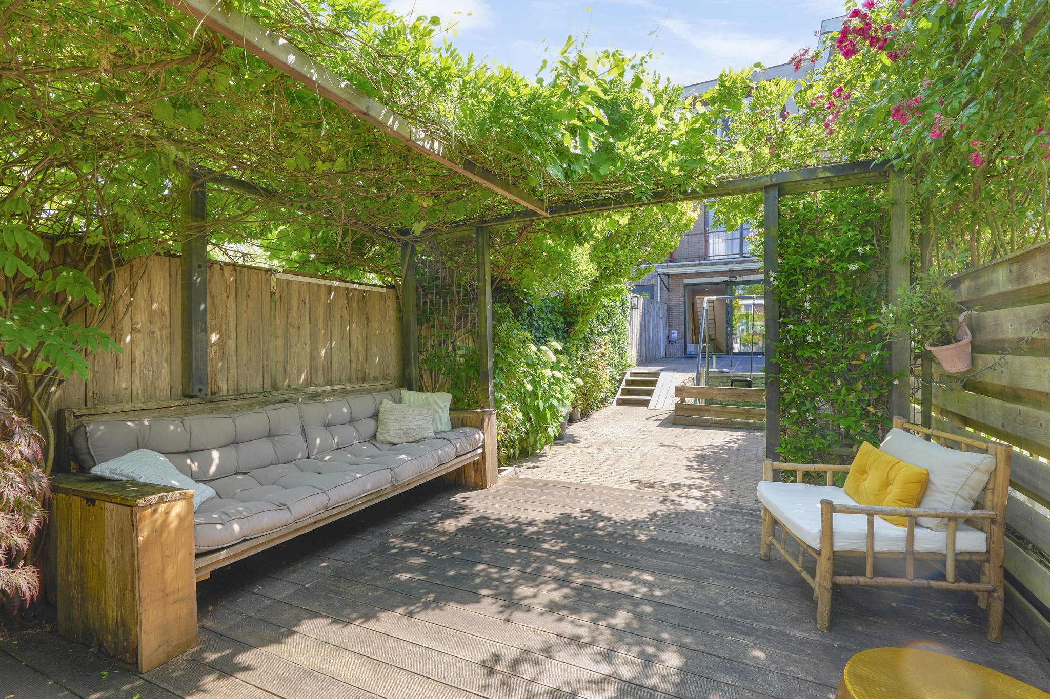 La maison principale développe 124 m² d’espaces pensés, centrés autour d’une cuisine ouverte équipée d’appareils Boretti et Bosch. Trois chambres, deux salles de bains et de grandes fenêtres inondent les lieux de lumière naturelle et offrent des vues sur le jardin, prolongeant l’art de vivre vers l’extérieur. Le jardin paysager profond de 39 mètres offre un havre urbain rare où règnent sérénité et intimité.