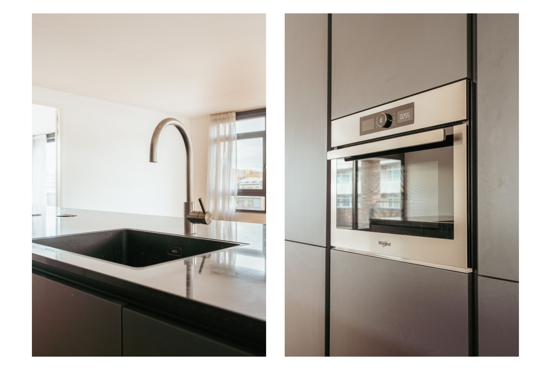 Dès l’entrée, un hall central mène à l’espace de vie généreux de 120 m², où de larges baies vitrées permettent une transition fluide entre intérieur et terrasse. La cuisine Siematic s’équipe d’appareils Siemens et d’un plan de travail en pierre naturelle, conjuguant exigence fonctionnelle et esthétique. Le chauffage au sol et le vitrage HR++ procurent confort et rendement énergétique dans l’ensemble de l’appartement.