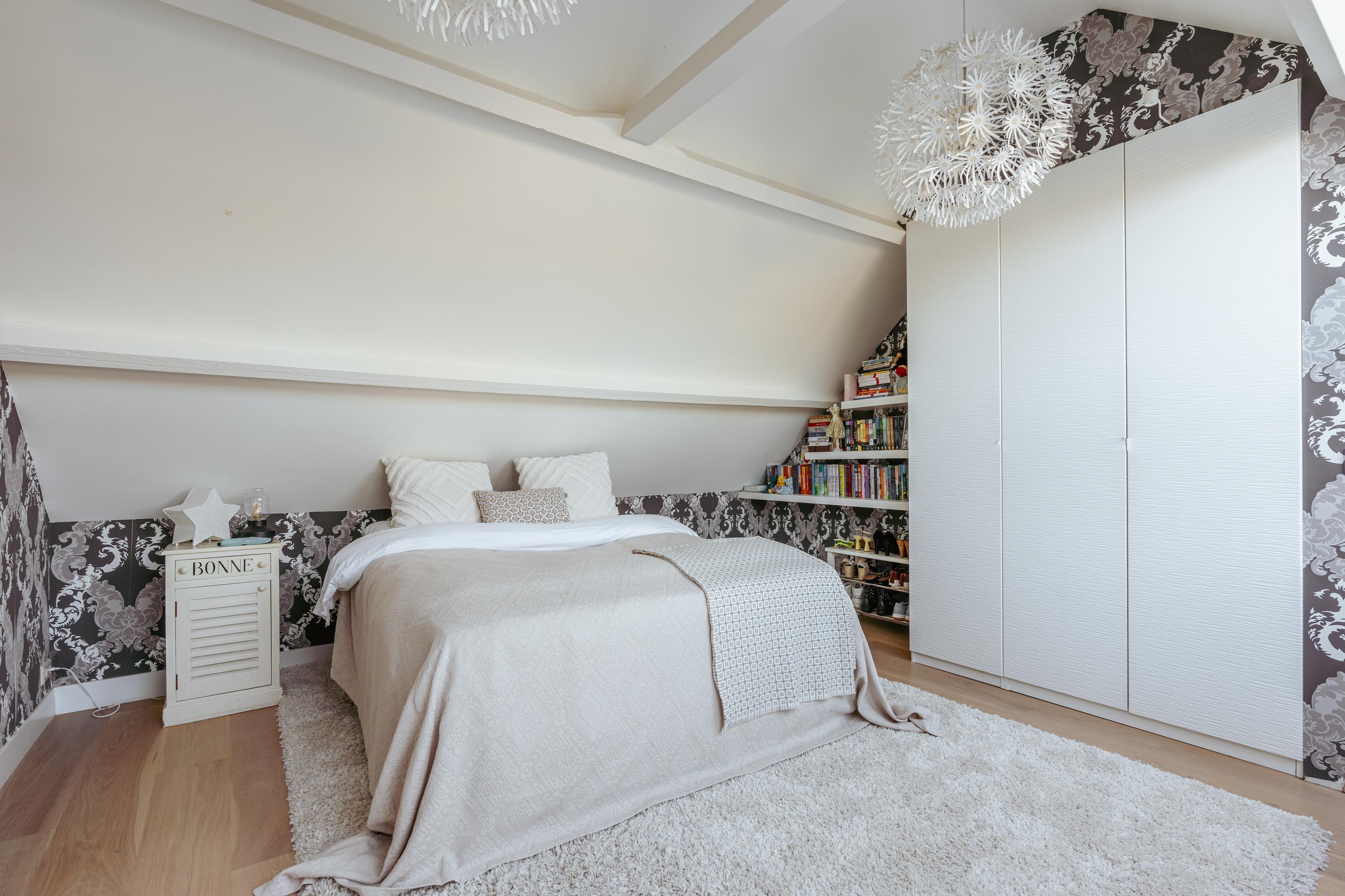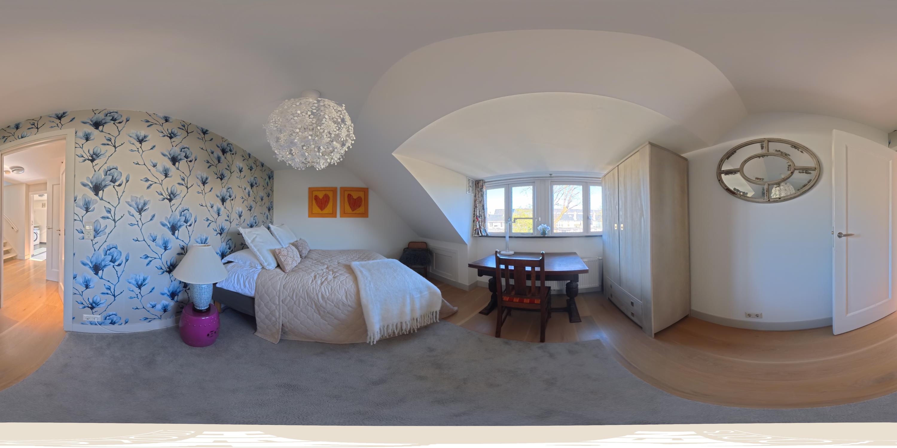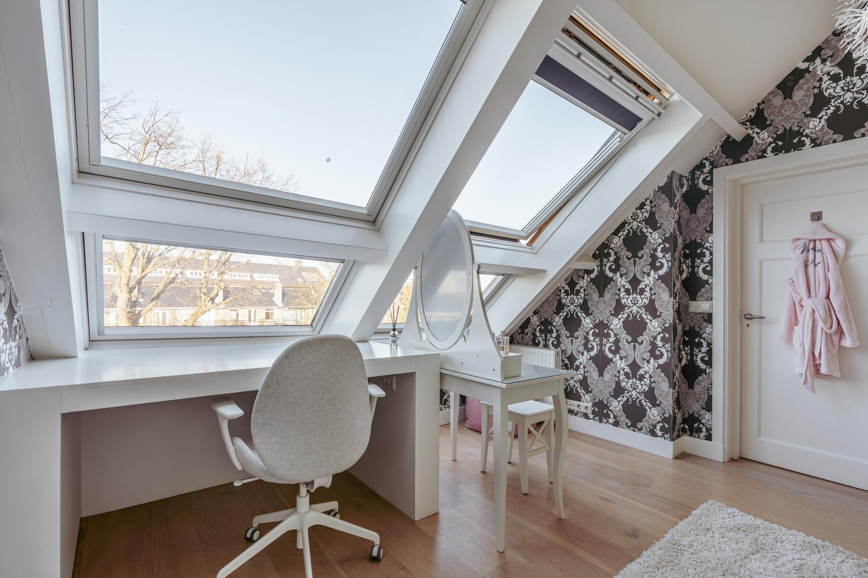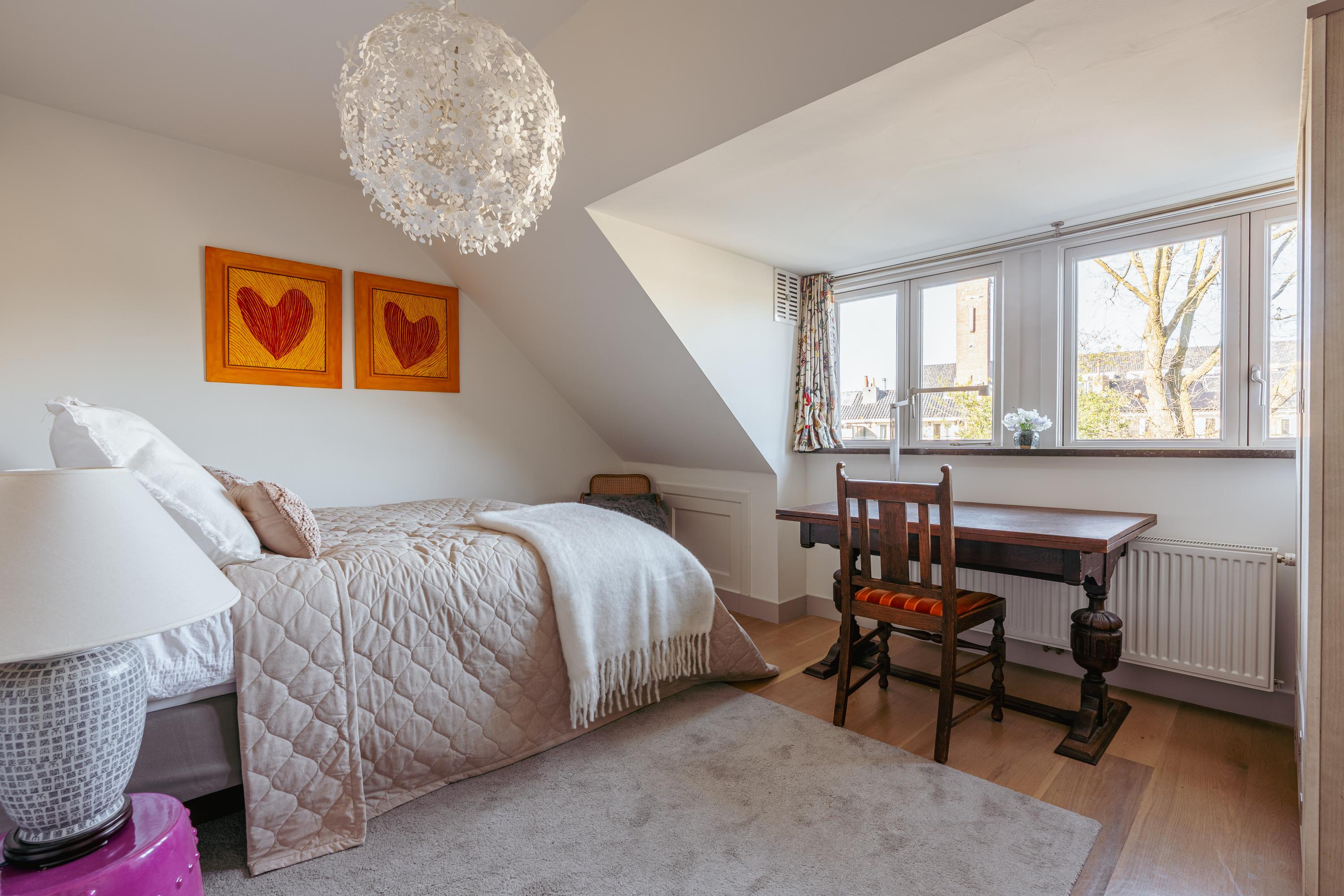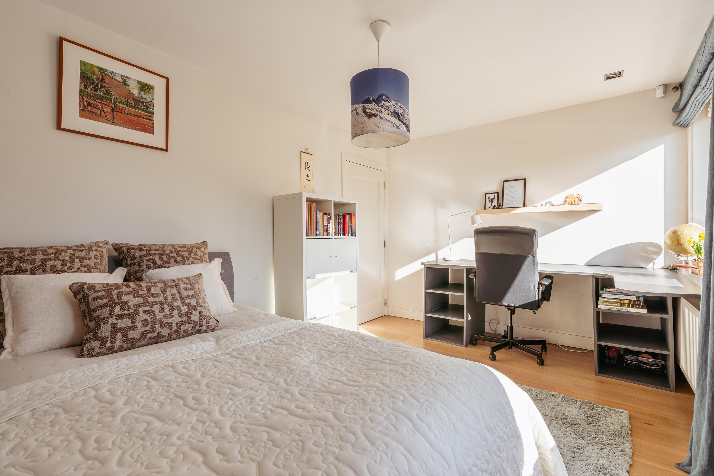 Les étages supérieurs accueillent de généreuses chambres, y compris une suite parentale dotée de placards sur mesure et d'un balcon discret. La présence de plusieurs salles de bains garantit confort et intimité. Le dernier étage, baigné de lumière naturelle grâce à une remarquable hauteur sous plafond, se prête aussi bien au travail qu’à la détente. Les finitions haut de gamme, un « dakraam » offrant une lumière supplémentaire, ainsi que des dispositifs d’isolation tels que la « dakisolatie » et le double vitrage, procurent un confort optimal.