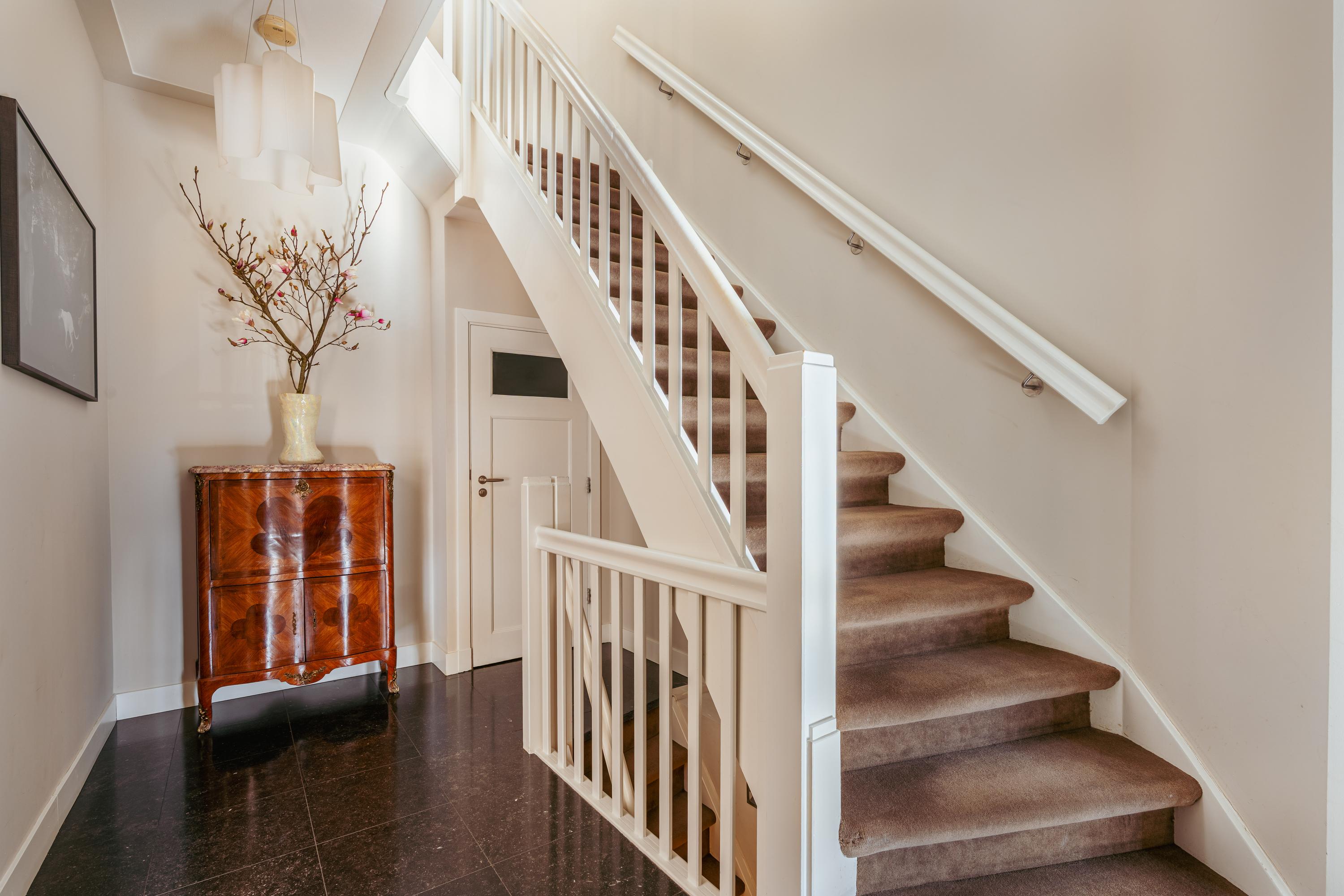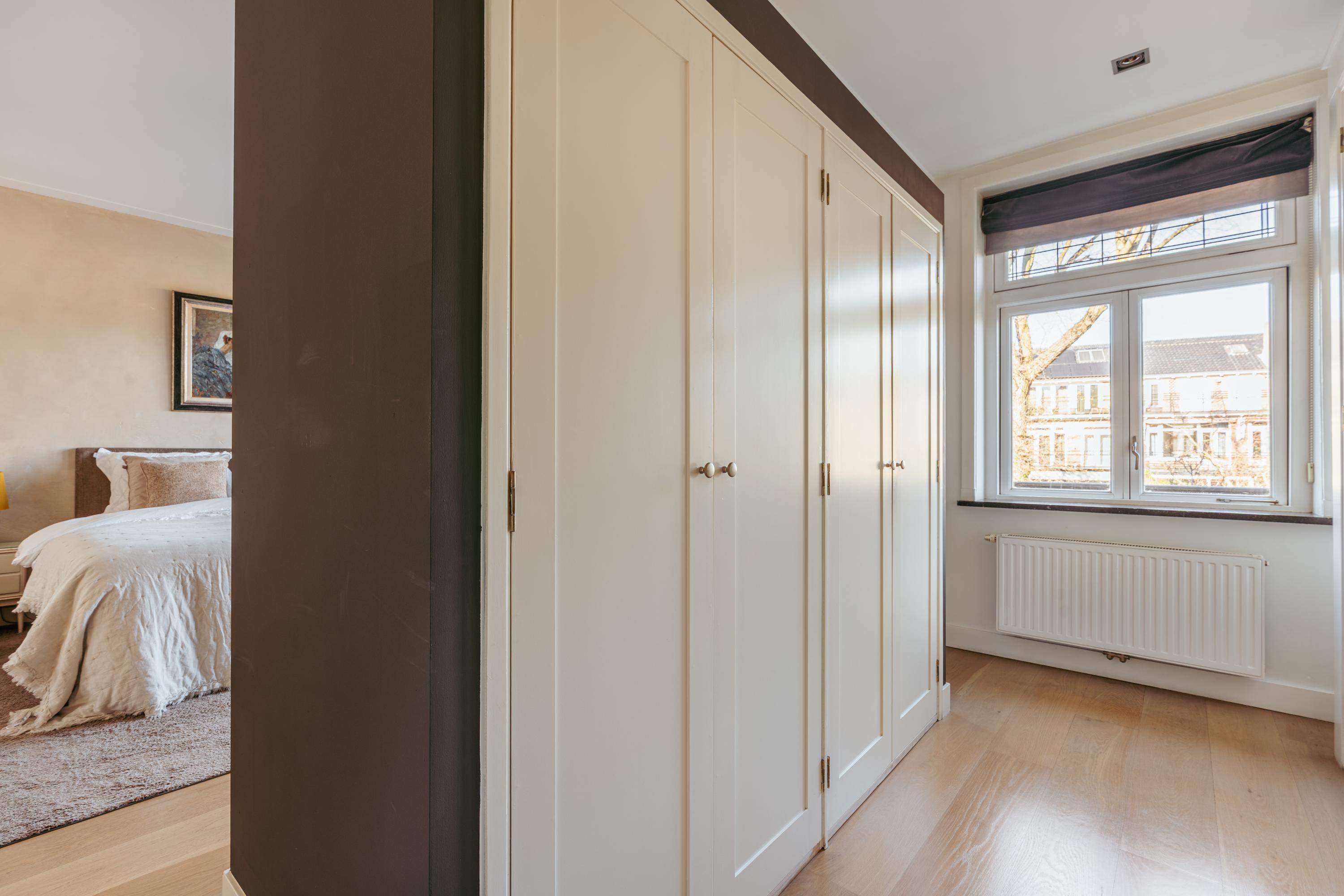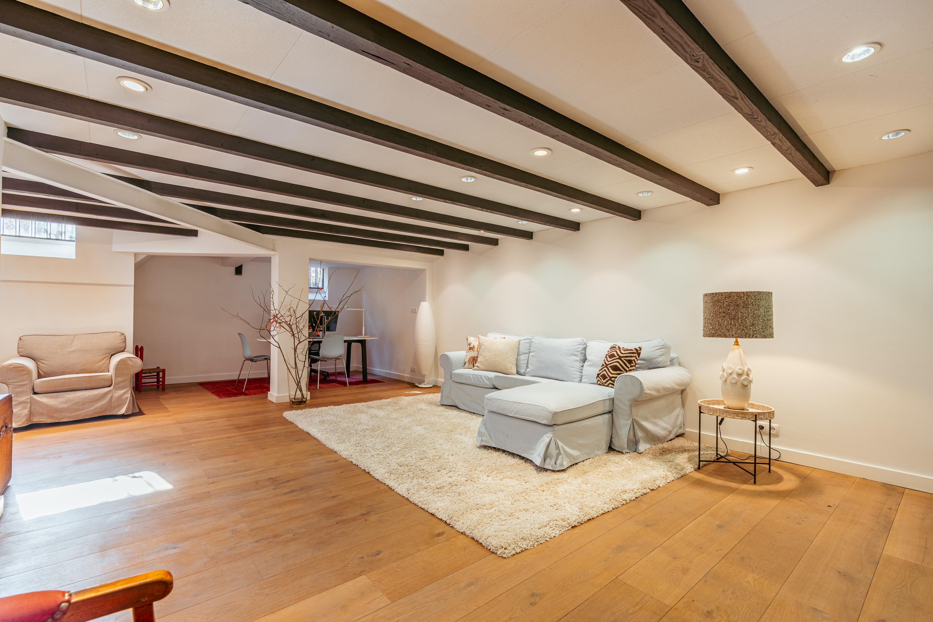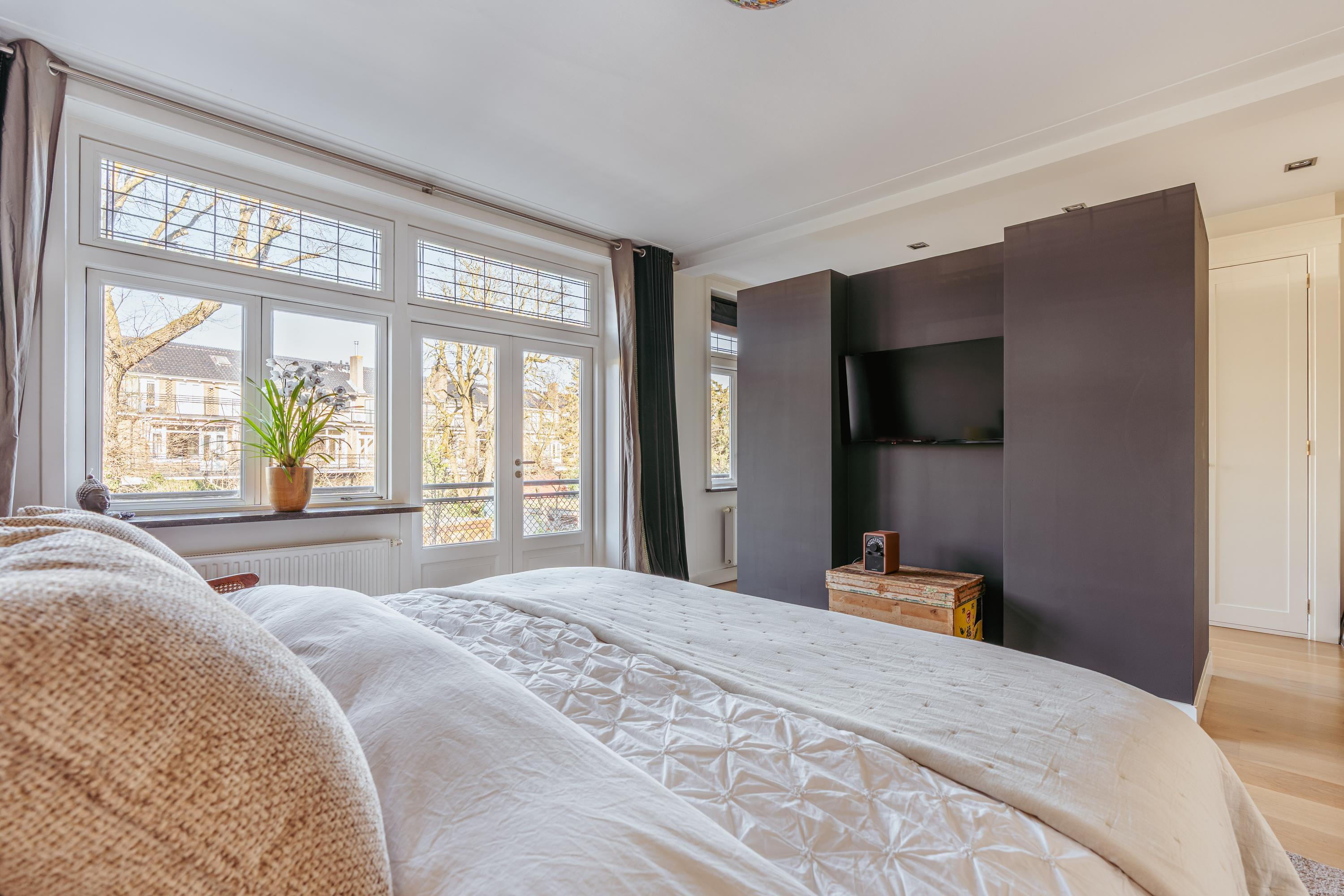 Les étages supérieurs accueillent de généreuses chambres, y compris une suite parentale dotée de placards sur mesure et d'un balcon discret. La présence de plusieurs salles de bains garantit confort et intimité. Le dernier étage, baigné de lumière naturelle grâce à une remarquable hauteur sous plafond, se prête aussi bien au travail qu’à la détente. Les finitions haut de gamme, un « dakraam » offrant une lumière supplémentaire, ainsi que des dispositifs d’isolation tels que la « dakisolatie » et le double vitrage, procurent un confort optimal.