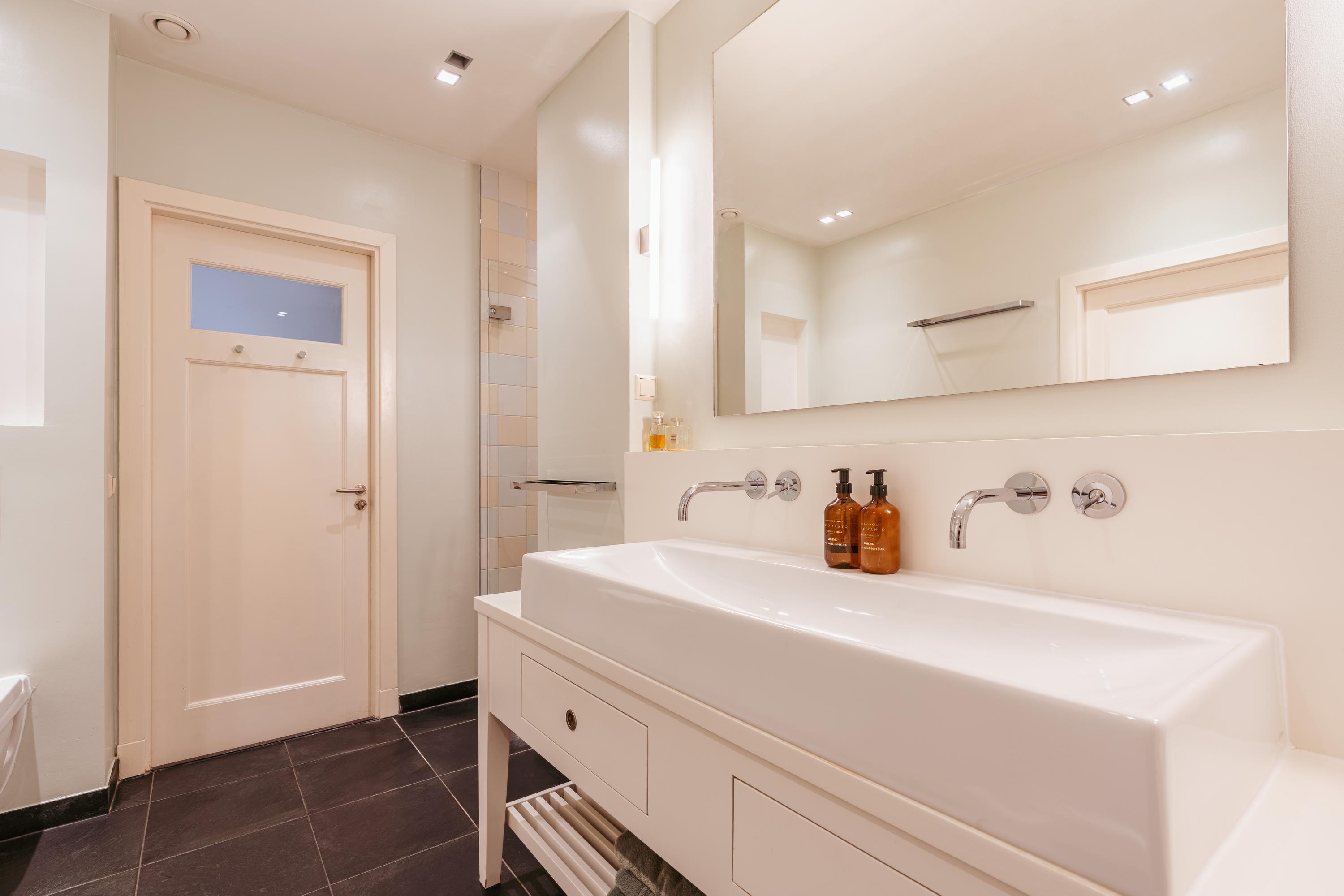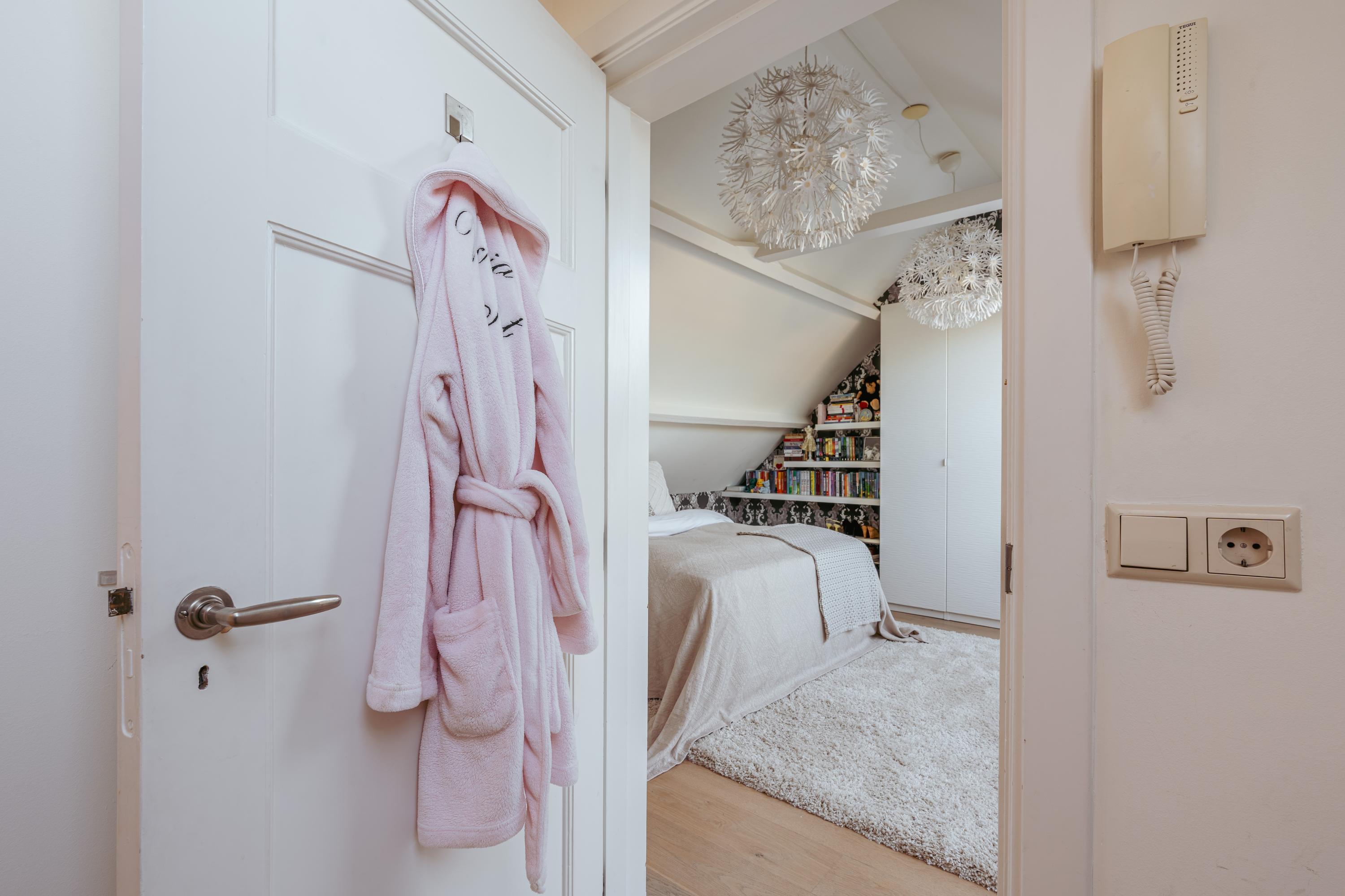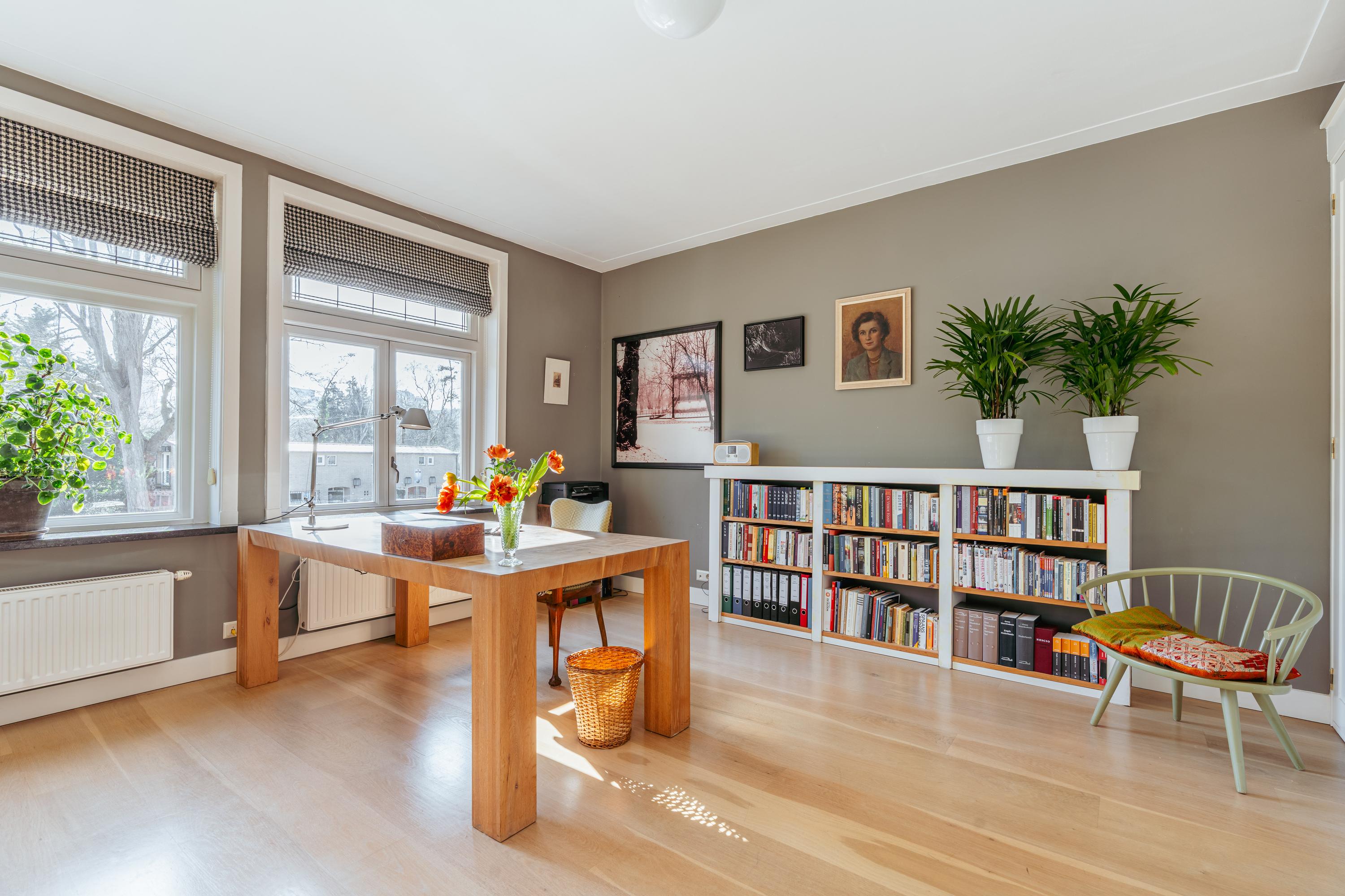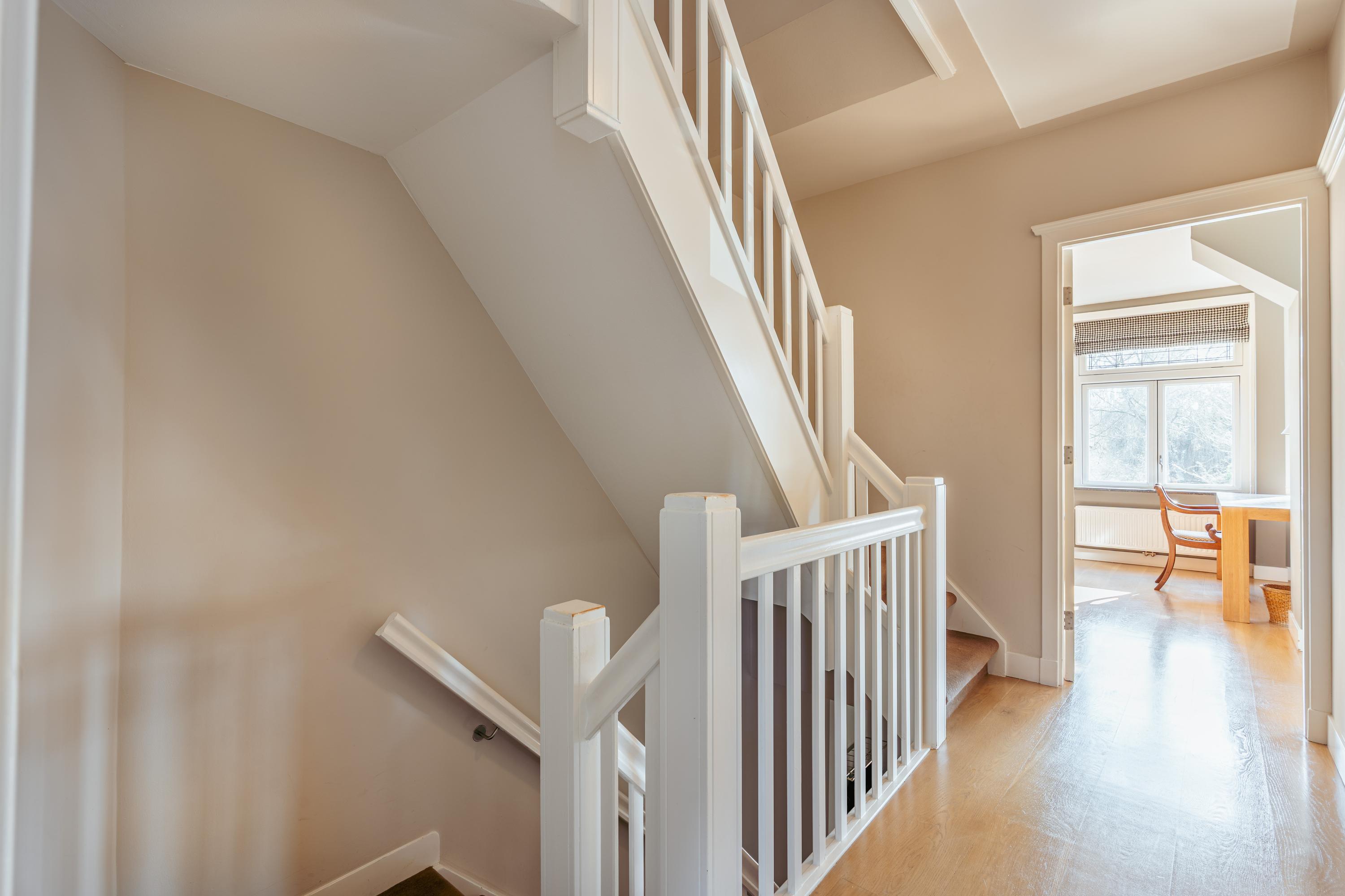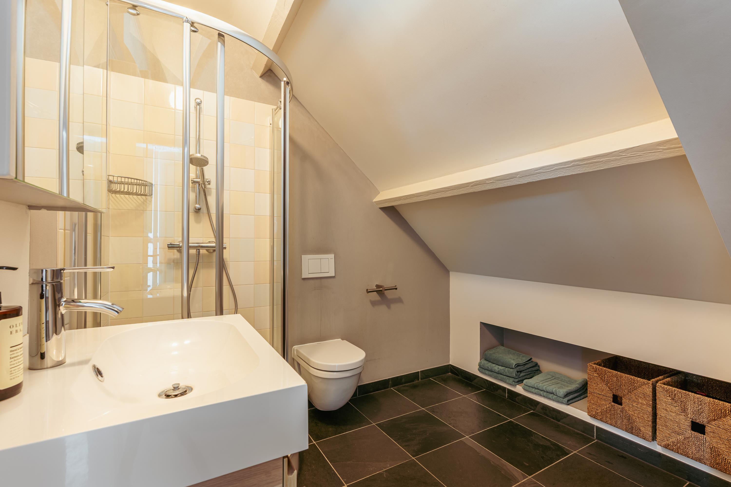 Les étages supérieurs accueillent de généreuses chambres, y compris une suite parentale dotée de placards sur mesure et d'un balcon discret. La présence de plusieurs salles de bains garantit confort et intimité. Le dernier étage, baigné de lumière naturelle grâce à une remarquable hauteur sous plafond, se prête aussi bien au travail qu’à la détente. Les finitions haut de gamme, un « dakraam » offrant une lumière supplémentaire, ainsi que des dispositifs d’isolation tels que la « dakisolatie » et le double vitrage, procurent un confort optimal.