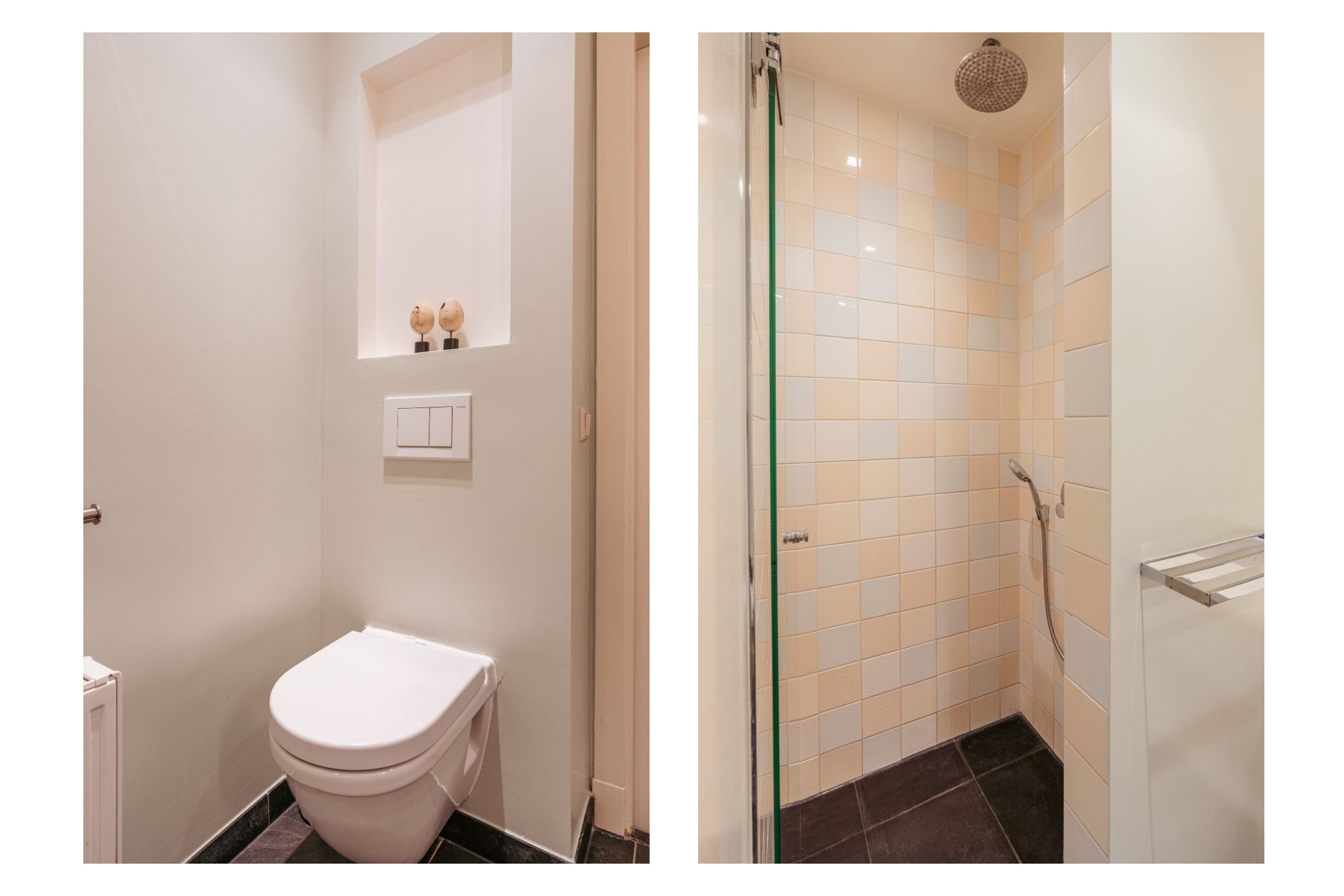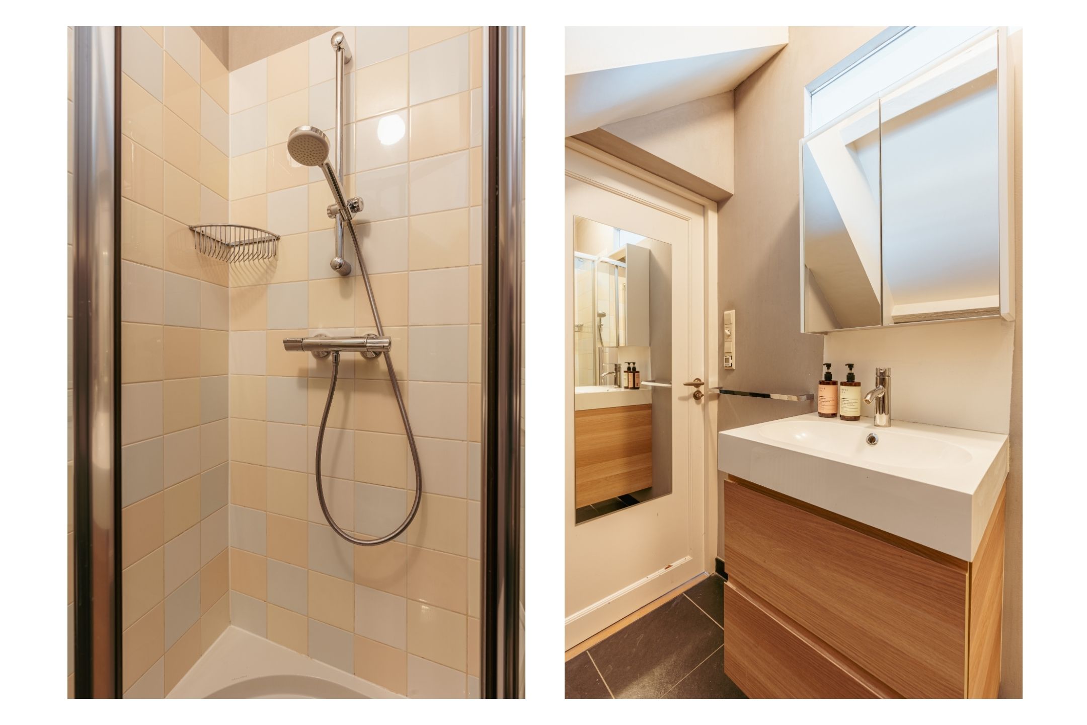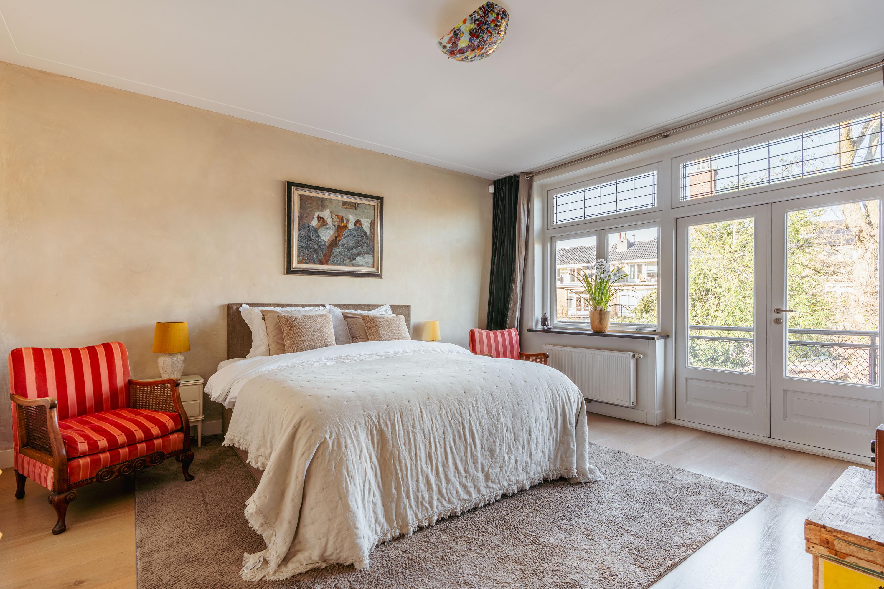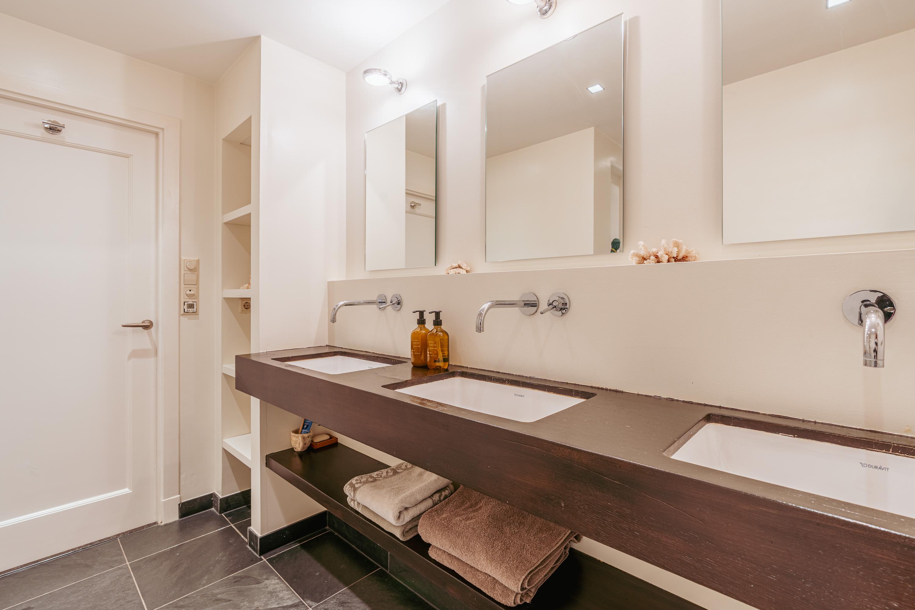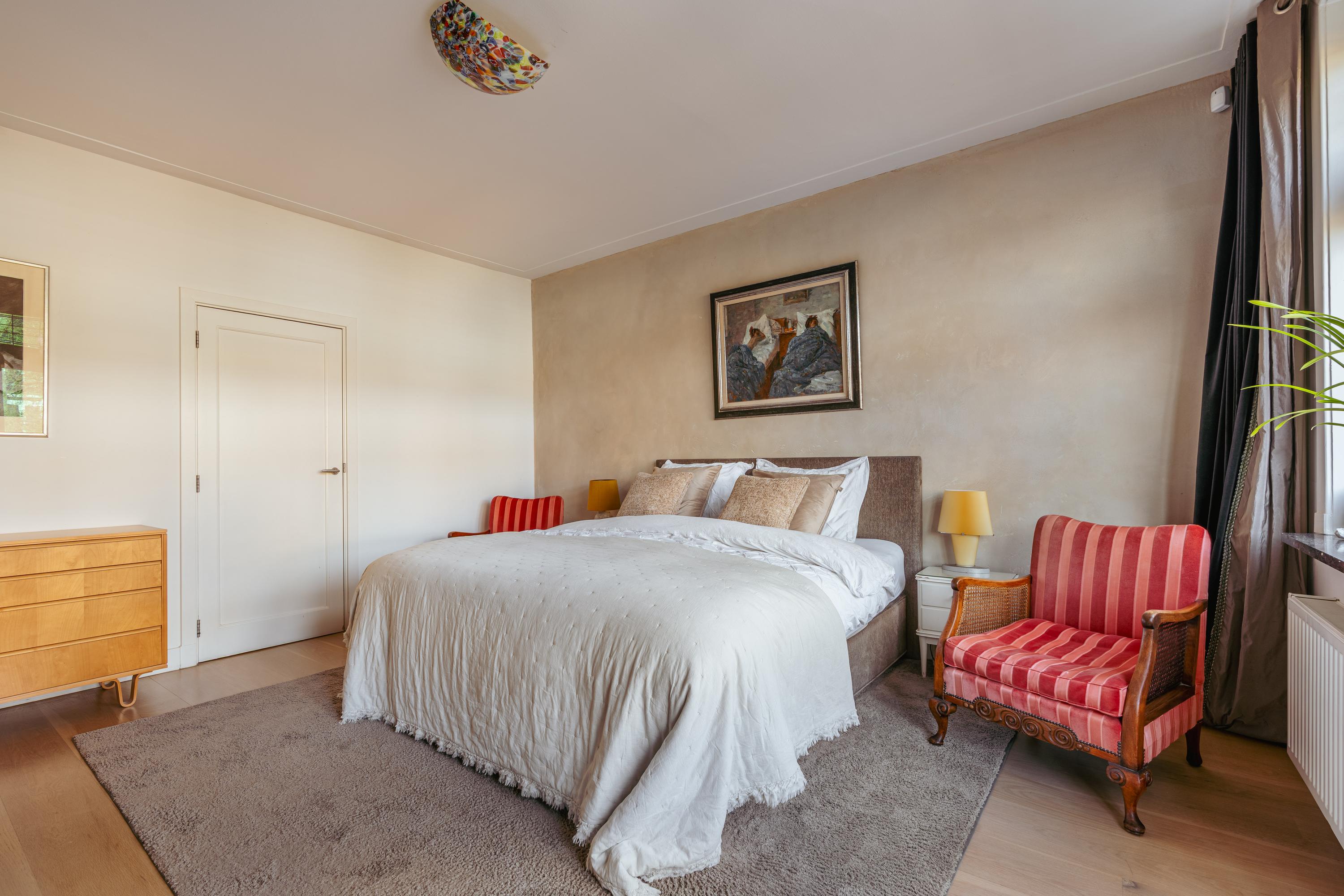 Les étages supérieurs accueillent de généreuses chambres, y compris une suite parentale dotée de placards sur mesure et d'un balcon discret. La présence de plusieurs salles de bains garantit confort et intimité. Le dernier étage, baigné de lumière naturelle grâce à une remarquable hauteur sous plafond, se prête aussi bien au travail qu’à la détente. Les finitions haut de gamme, un « dakraam » offrant une lumière supplémentaire, ainsi que des dispositifs d’isolation tels que la « dakisolatie » et le double vitrage, procurent un confort optimal.