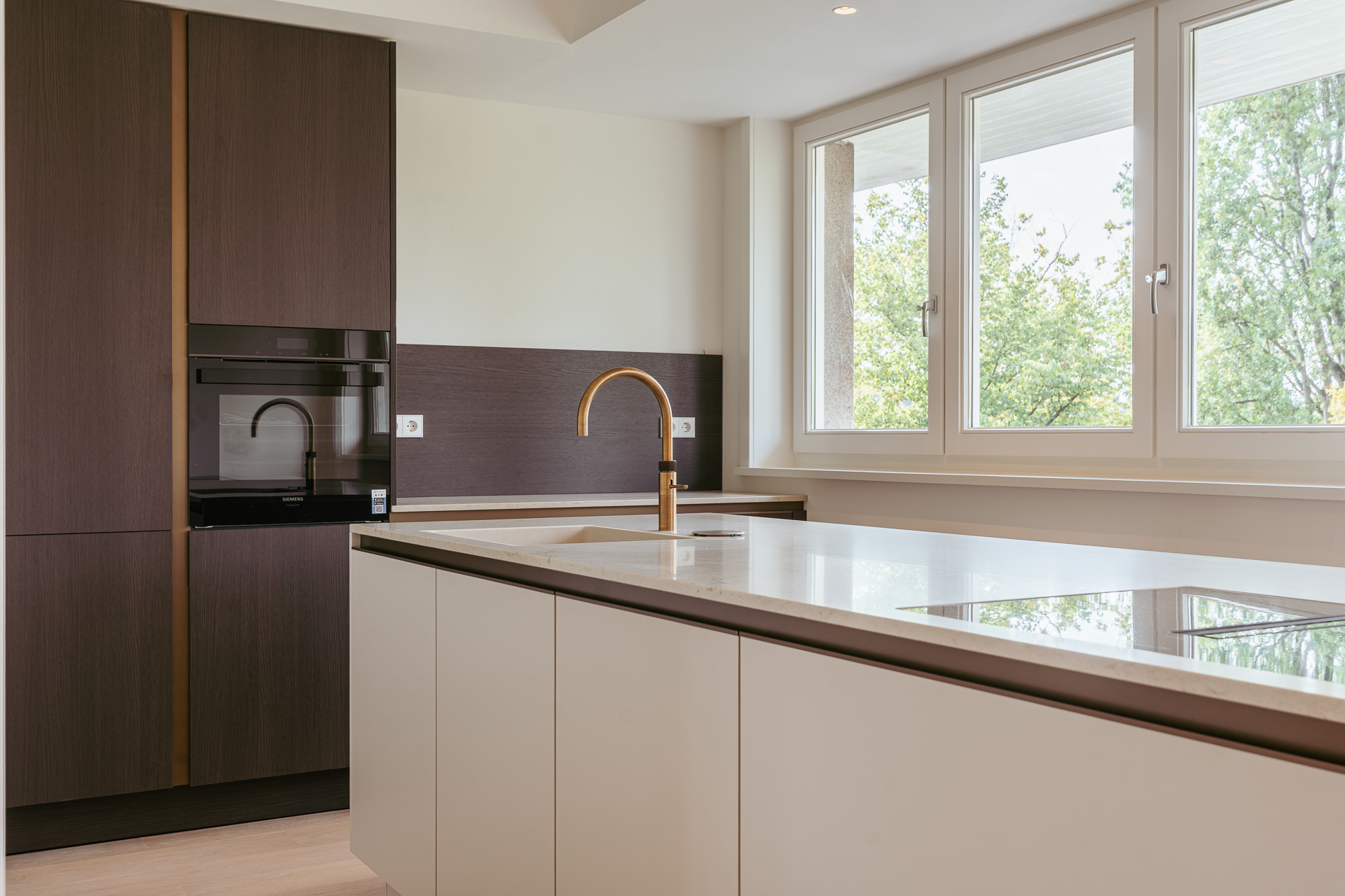 En accédant par un escalier privatif, le troisième étage spacieux accueille un séjour baigné de lumière avec de larges fenêtres offrant une vue dégagée sur les avenues élégantes. La cuisine ouverte, équipée d’appareils haut de gamme et d’un mariage raffiné de menuiseries contemporaines et de bois chaleureux, se prolonge vers un balcon orienté sud-est, idéal pour des matinées paisibles ou des après-midis ensoleillés. Une suite d’invités dotée d’une douche privée et d’une buanderie offre une souplesse supplémentaire pour les visiteurs ou l’aménagement d’un bureau à domicile.