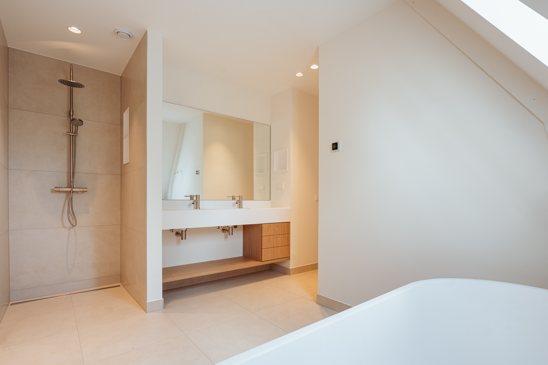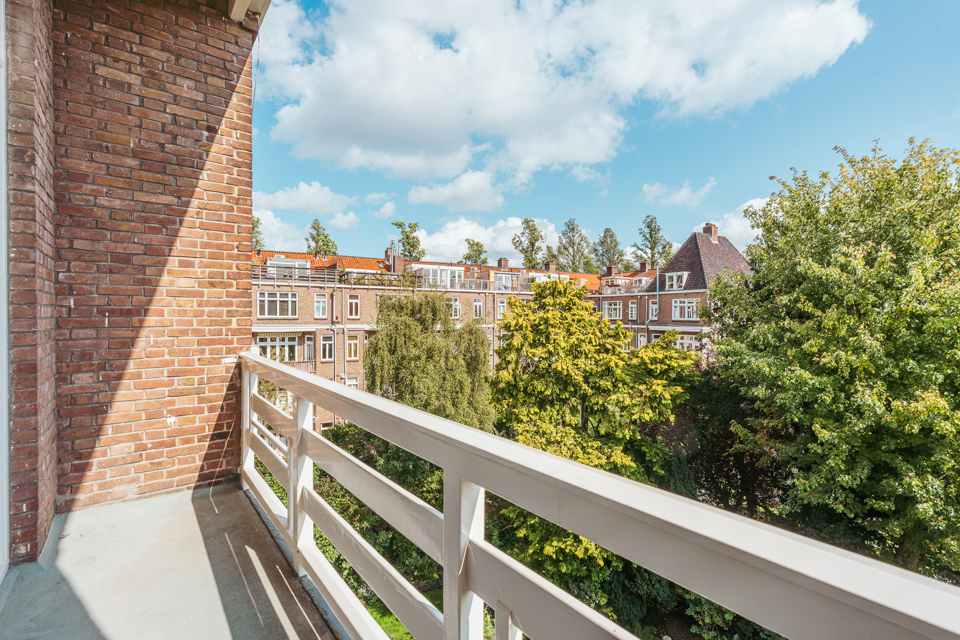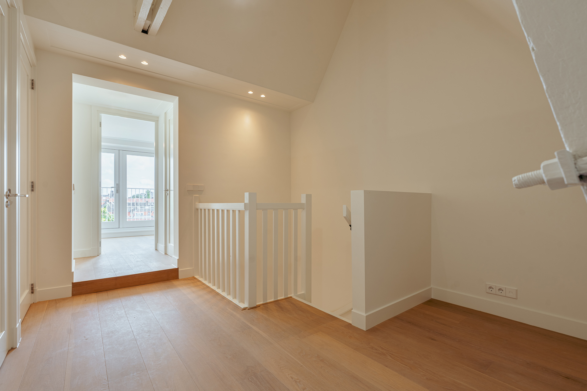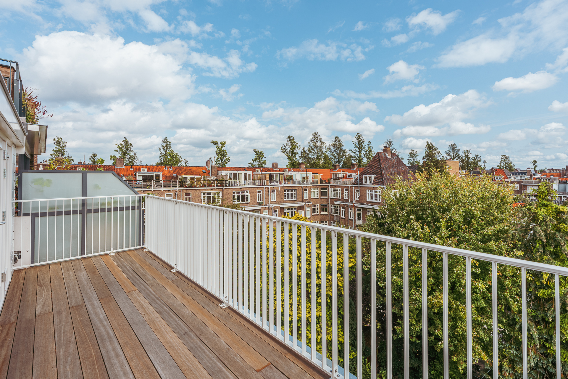 À l’étage supérieur, une chambre principale avec accès terrasse, une seconde chambre reliée au même espace extérieur ensoleillé et une salle de bains équipée d’une baignoire, d’une douche et d’une double vasque composent l’espace nuit. S’ajoutent des toilettes séparées, une buanderie fonctionnelle, de généreux espaces de rangement dans les combles et un confort de classe énergétique A grâce à une isolation et un chauffage avancés. À quelques pas des boutiques, espaces verts, écoles réputées et lieux culturels, cet appartement de luxe à vendre à Amsterdam Olympiaplein incarne l’élégance discrète au cœur de la ville.