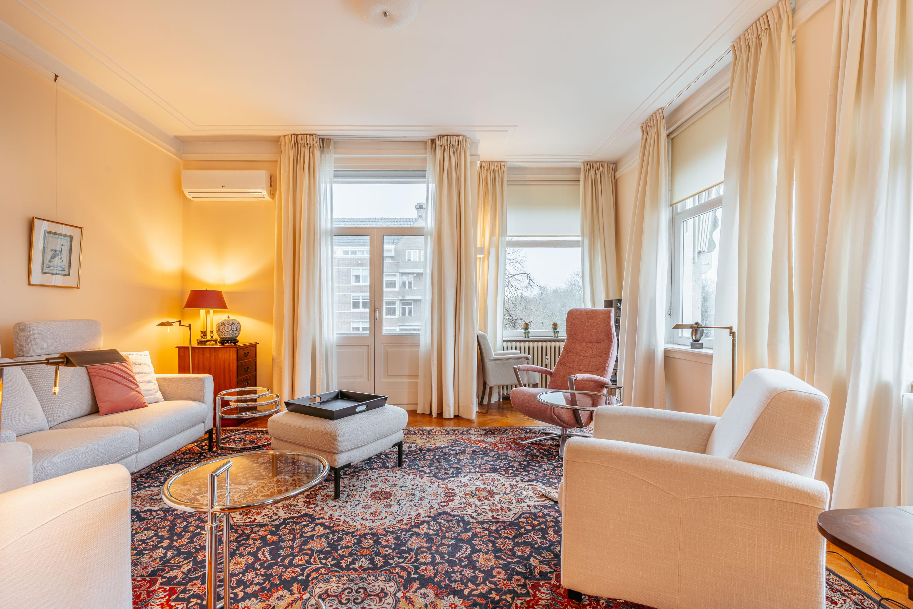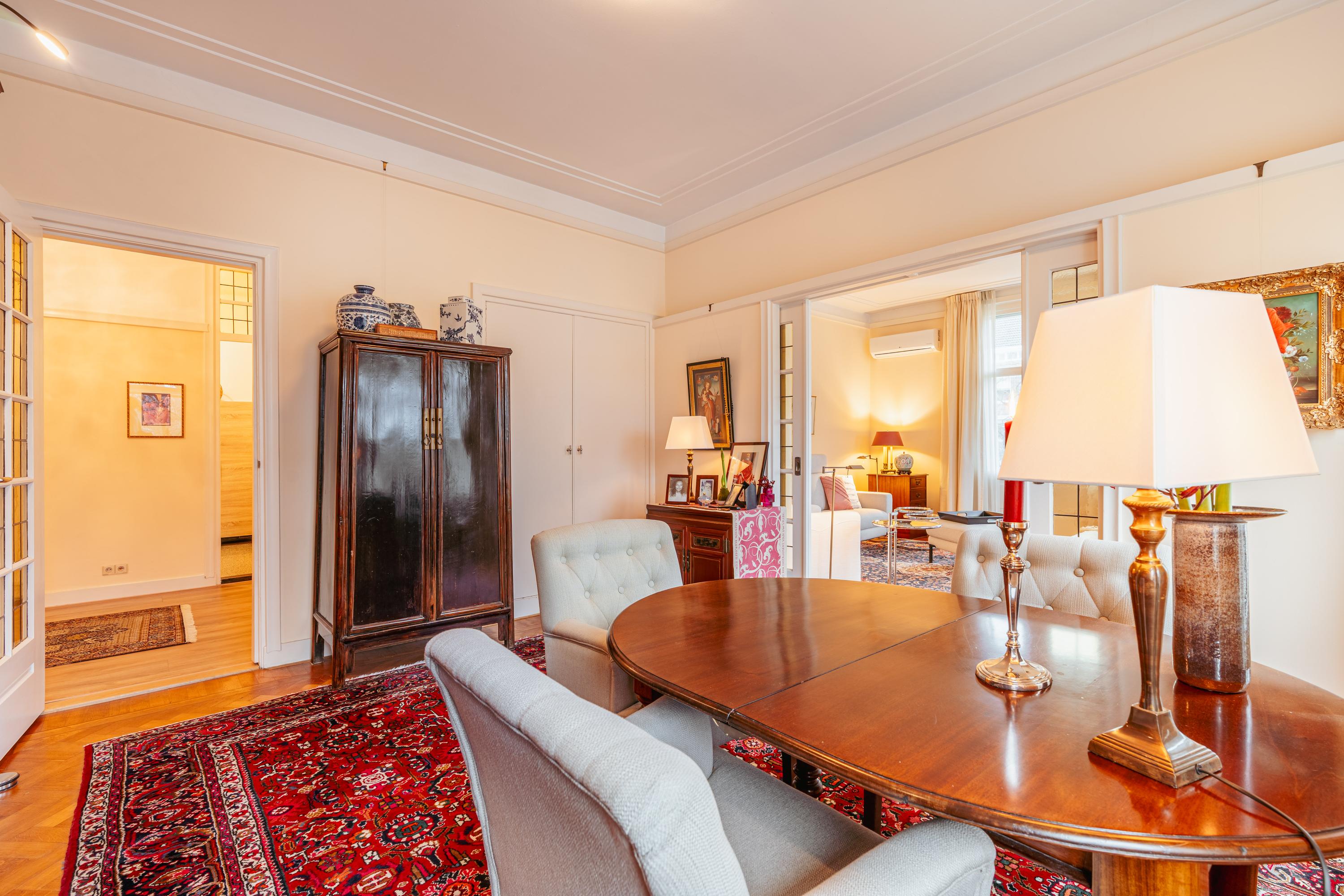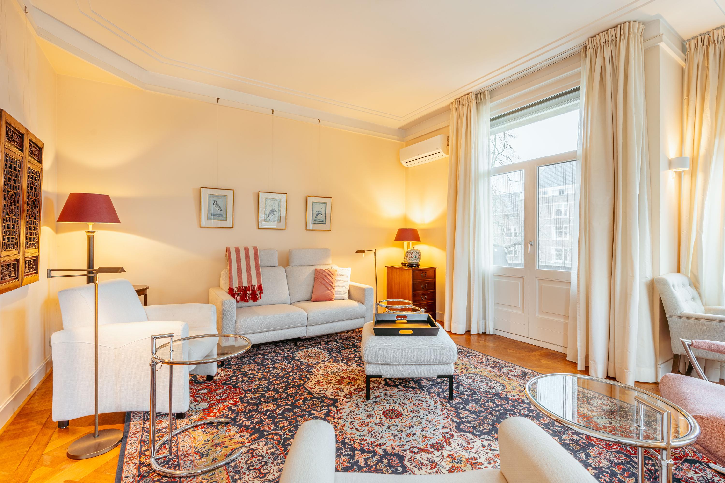 L’Appartement Amsterdam Zuid incarne un équilibre réfléchi entre l’énergie urbaine et la sérénité d’une vie au bord de l’eau. Ce logement d’angle de 120 m² se situe dans les quartiers paisibles de Stadion et Beethoven, offrant des vues sur le canal et la Minervalaan, avec une abondance de lumière naturelle mettant en valeur des espaces généreusement proportionnés. L’appartement comprend un salon-salle à manger lumineux ouvrant sur un balcon, deux chambres, une cuisine équipée avec un plan de travail en bois et une salle de bains élégamment aménagée comprenant une douche à l’italienne et une double vasque. Un confort contemporain est assuré grâce à la présence d’un ascenseur, de fenêtres à double vitrage et du chauffage urbain. Un espace de rangement privatif d’environ 10 m² au quatrième étage ajoute une capacité de stockage supplémentaire.