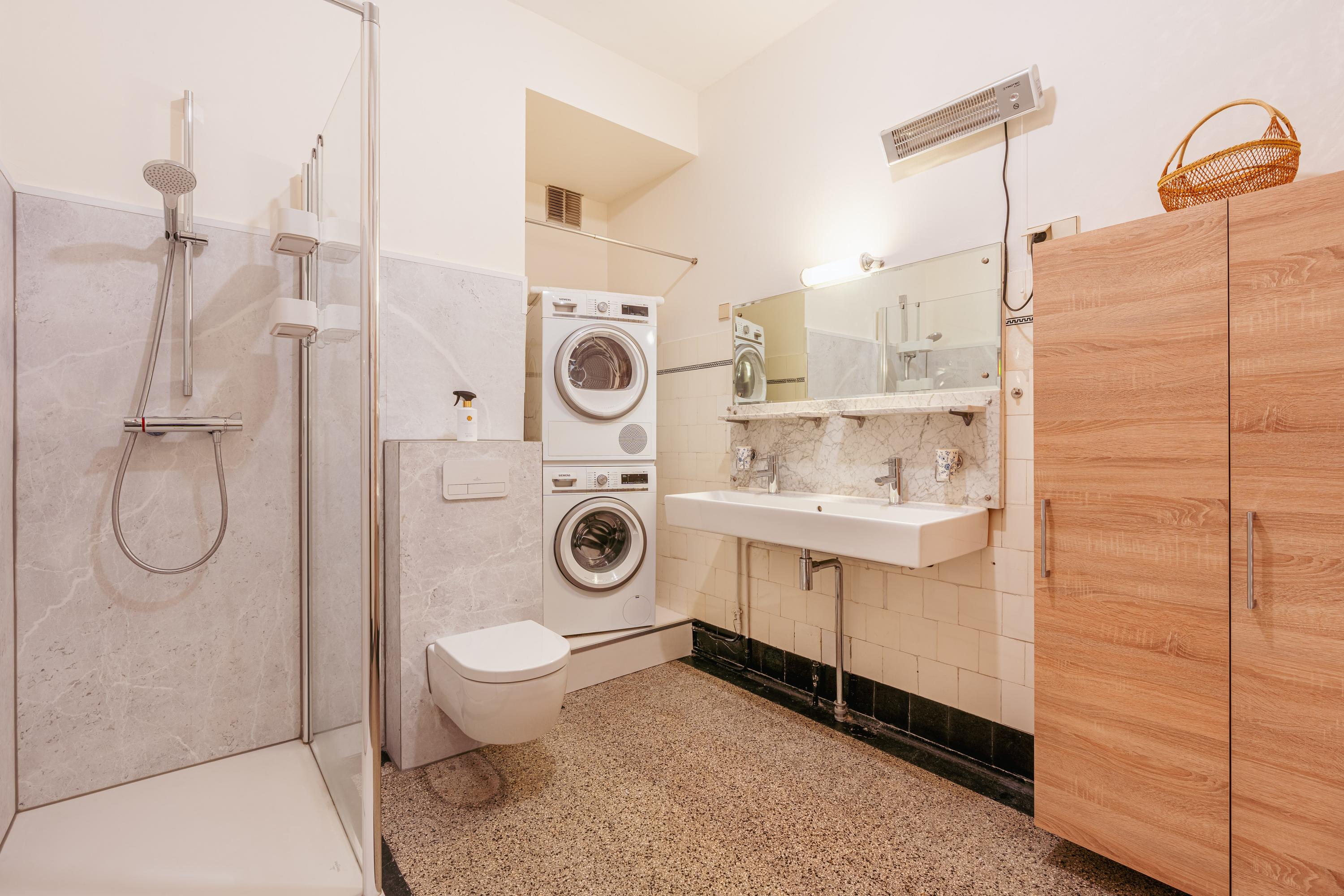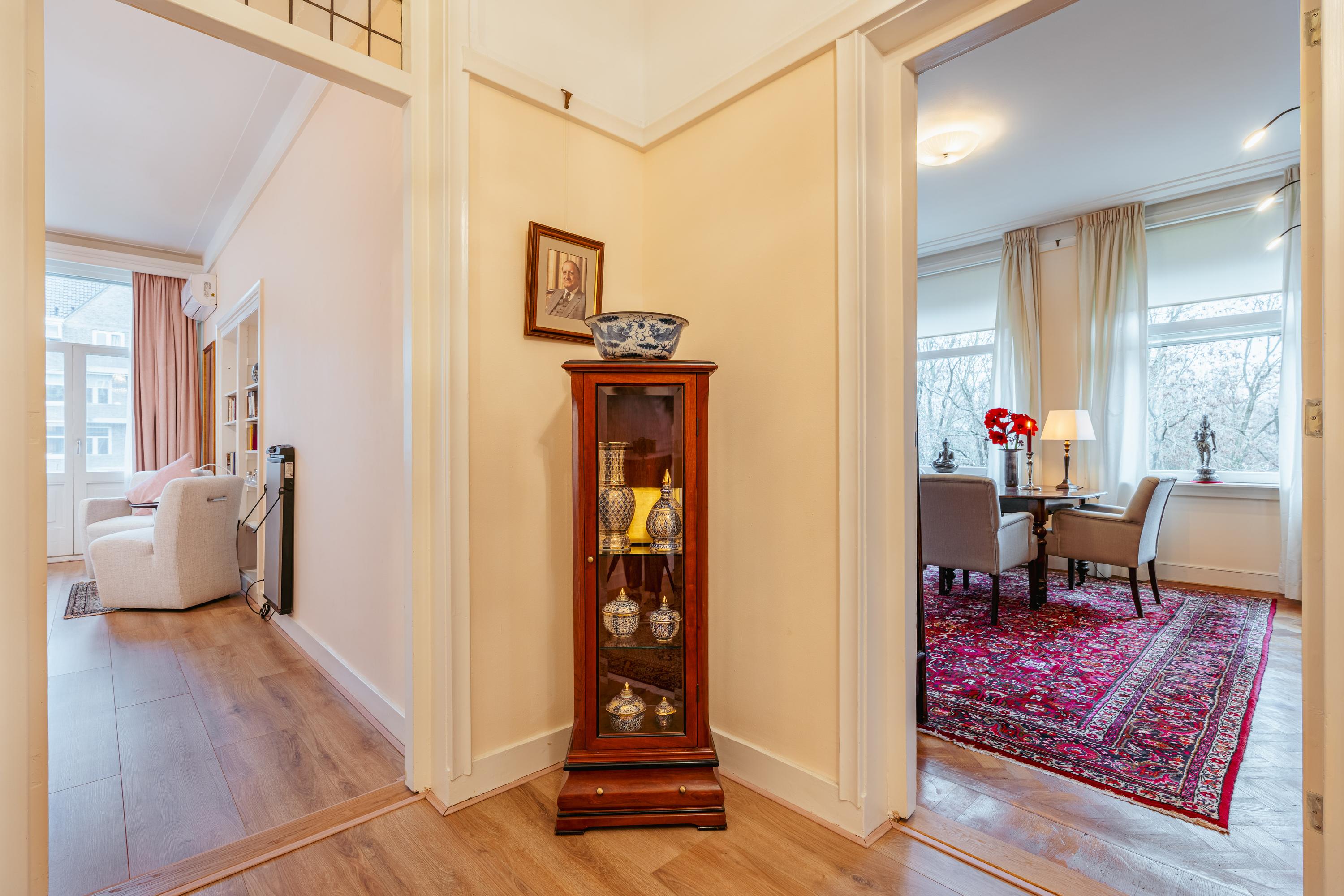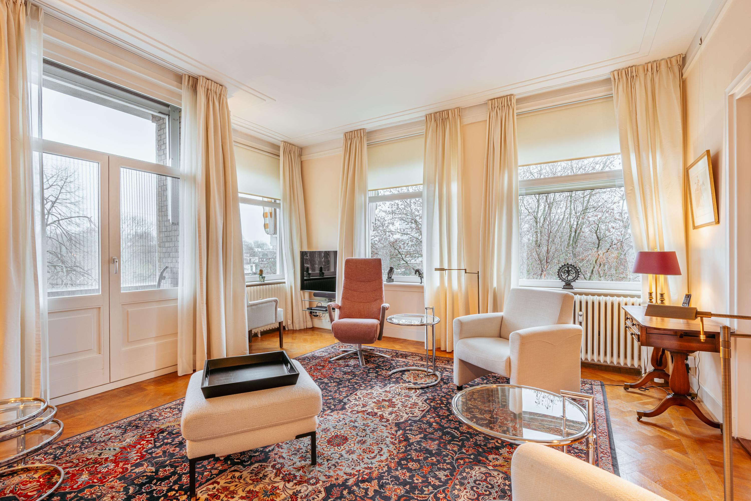 L’Appartement Amsterdam Zuid incarne un équilibre réfléchi entre l’énergie urbaine et la sérénité d’une vie au bord de l’eau. Ce logement d’angle de 120 m² se situe dans les quartiers paisibles de Stadion et Beethoven, offrant des vues sur le canal et la Minervalaan, avec une abondance de lumière naturelle mettant en valeur des espaces généreusement proportionnés. L’appartement comprend un salon-salle à manger lumineux ouvrant sur un balcon, deux chambres, une cuisine équipée avec un plan de travail en bois et une salle de bains élégamment aménagée comprenant une douche à l’italienne et une double vasque. Un confort contemporain est assuré grâce à la présence d’un ascenseur, de fenêtres à double vitrage et du chauffage urbain. Un espace de rangement privatif d’environ 10 m² au quatrième étage ajoute une capacité de stockage supplémentaire.