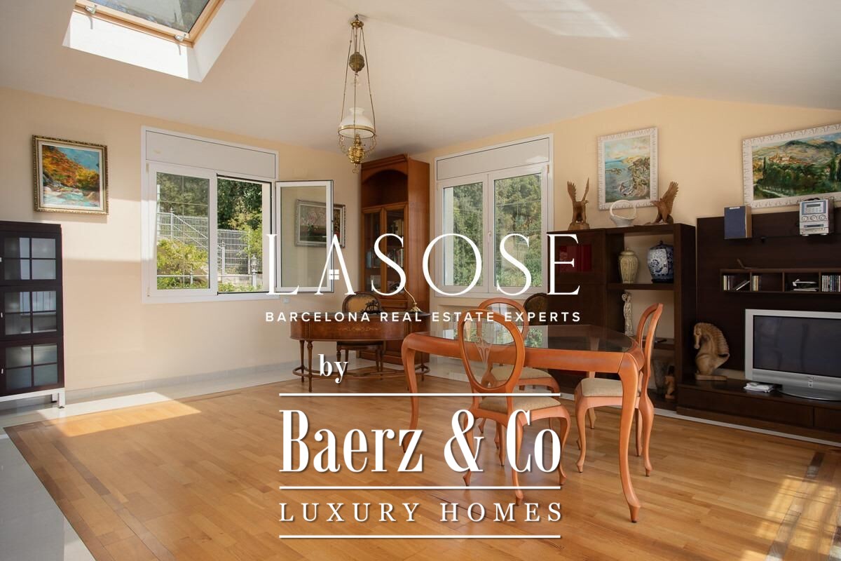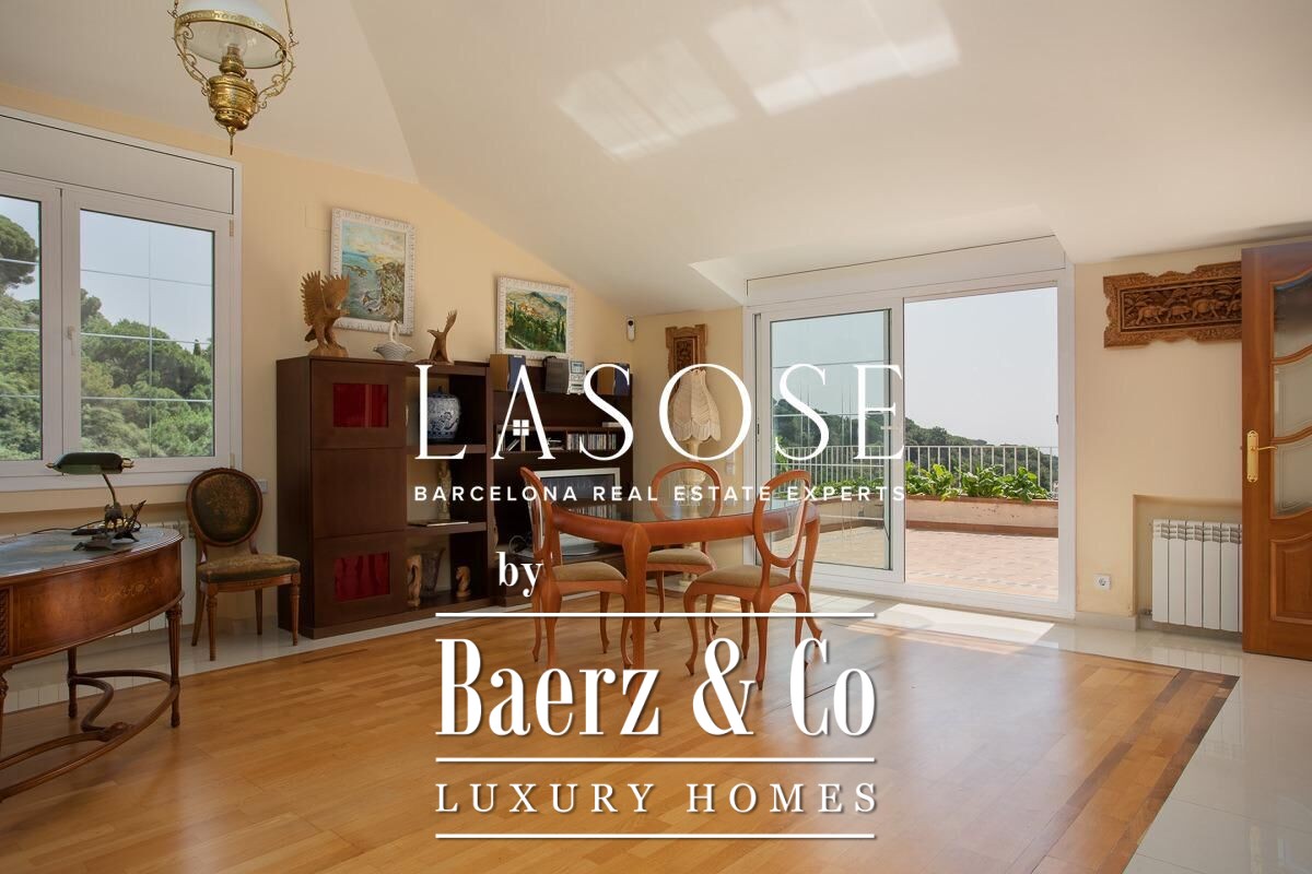 Articulée sur quatre niveaux reliés par ascenseur, l’architecture de la villa privilégie la lumière, la fluidité des espaces, et l’harmonie entre intérieur et extérieur. Les pièces à vivre, dotées de sols en marbre et d’une cheminée, s’ouvrent sur de vastes terrasses et un jardin de plain-pied, mettant en valeur des panoramas spectaculaires qui embrassent la ligne d’horizon de Barcelone les jours clairs. Cinq chambres et cinq salles de bains invitent à la sérénité, tandis que deux cuisines entièrement équipées offrent une grande flexibilité. Bibliothèque privée, vaste cellier et espaces de rangement dédiés achèvent de souligner le confort sans jamais sacrifier l’élégance.