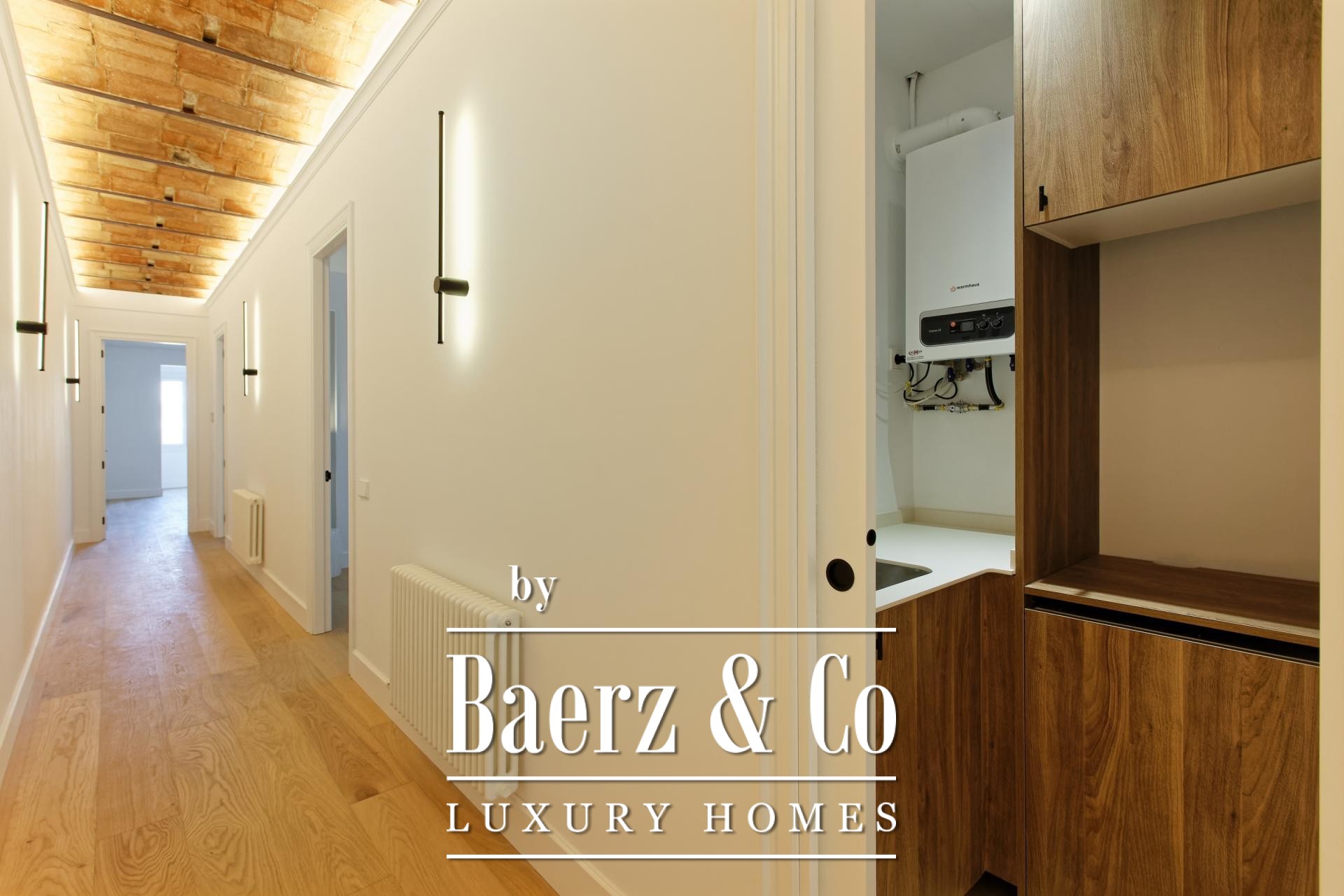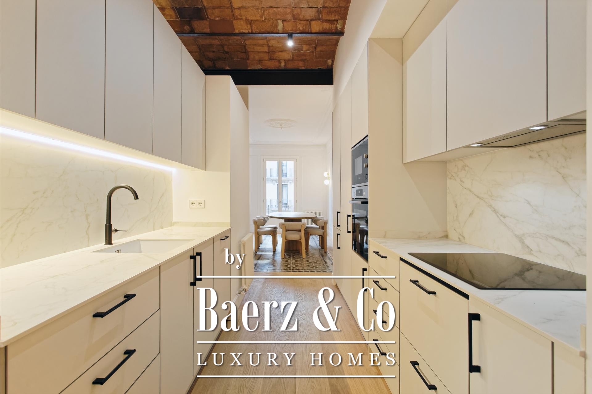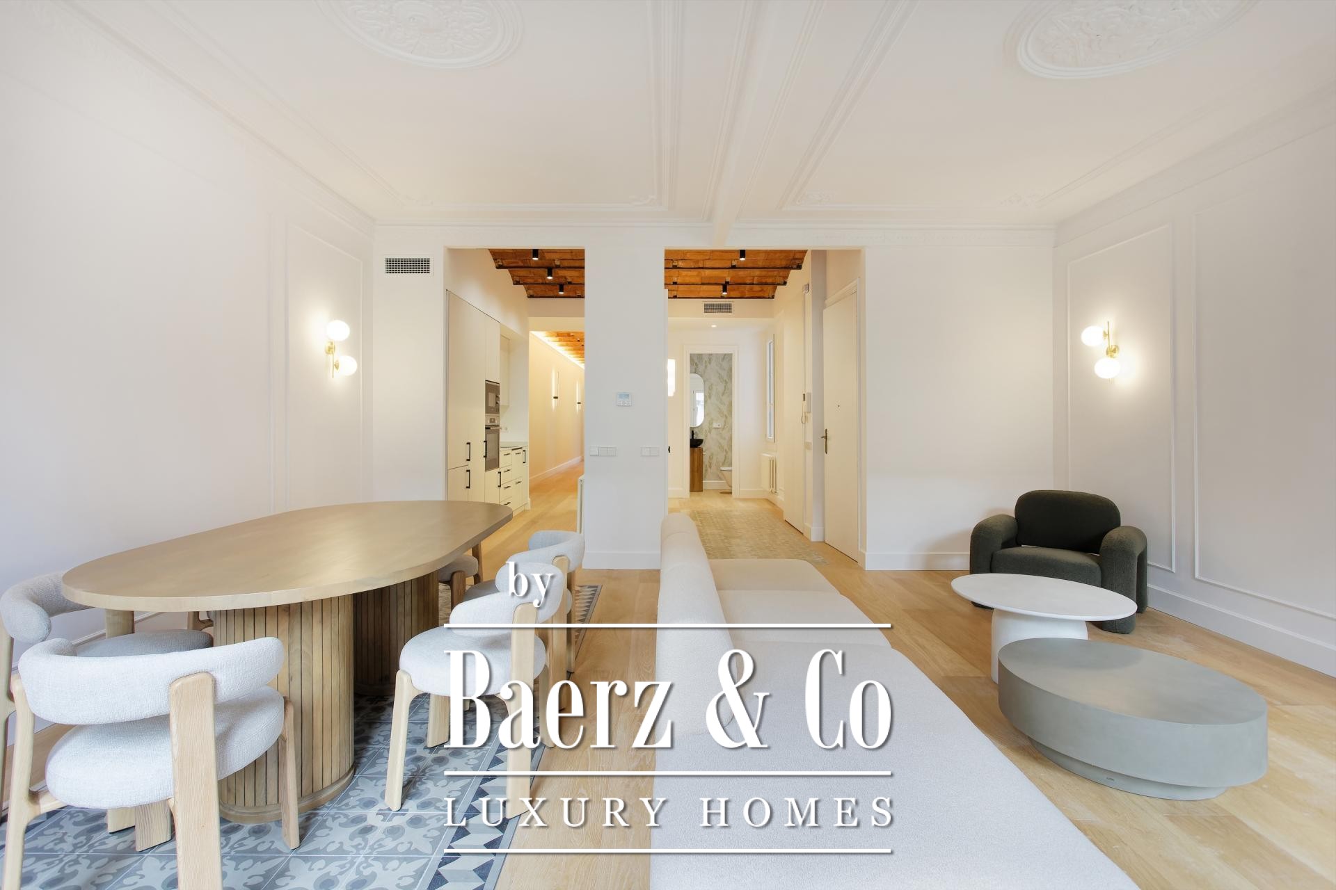 Les pièces à vivre et à manger sont pensées pour le confort et l’accueil raffiné, complétées par une cuisine entièrement équipée et une buanderie séparée. Soigneusement rénové, cet appartement allie authenticité, finitions contemporaines et accès par ascenseur, pour une atmosphère de vie barcelonaise aussi discrète qu’emblématique.