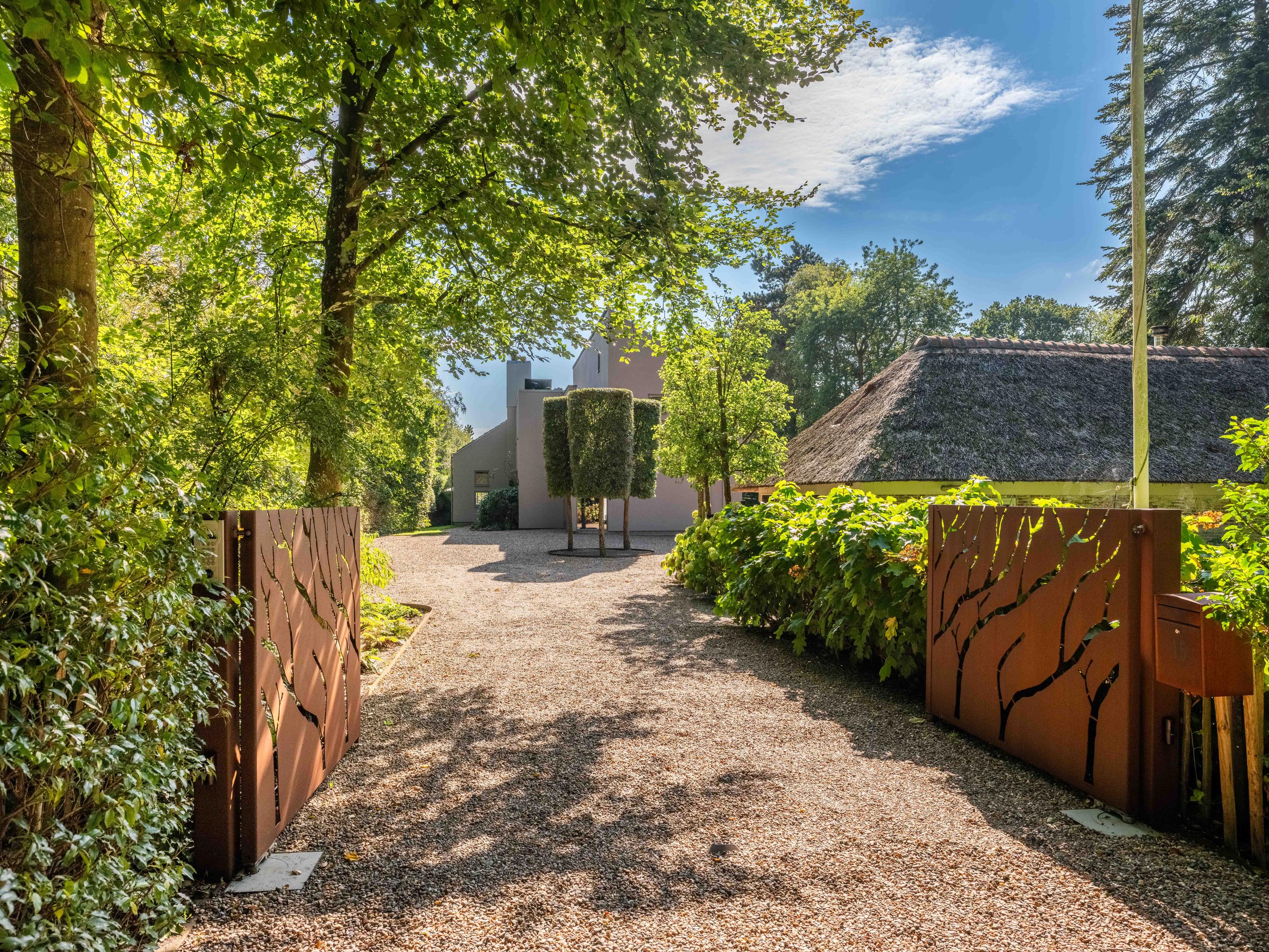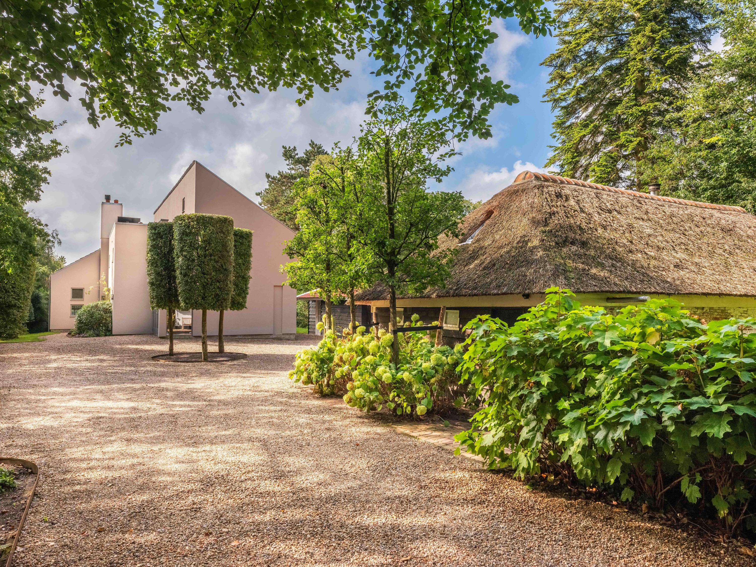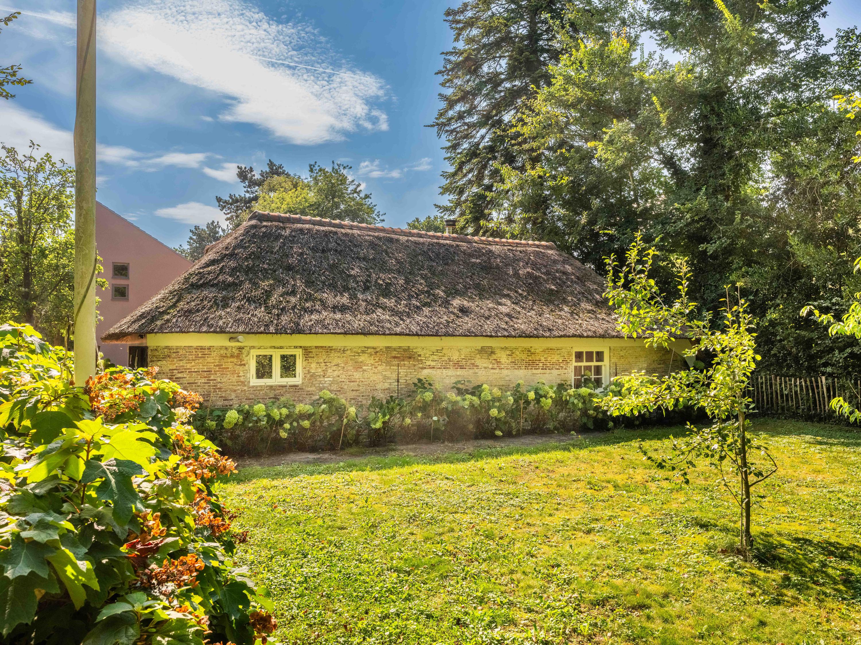 La villa Bergen se dresse dans un cadre d’une quiétude rare, avec de vastes prairies à perte de vue et une intimité totale, sublimée par un portail d’artiste à l’entrée. Ce domaine conjugue histoire et modernité avec subtilité. En façade du terrain de 2 684 m², une ferme au toit de chaume du milieu du XVIIIe siècle, entièrement rénovée en 2014, signe un accueil élégant et authentique. Cette dépendance parfaitement aménagée offre la flexibilité d’un bureau à domicile, d’un atelier ou d’un espace de vie d’appoint, fidèle à ses origines.