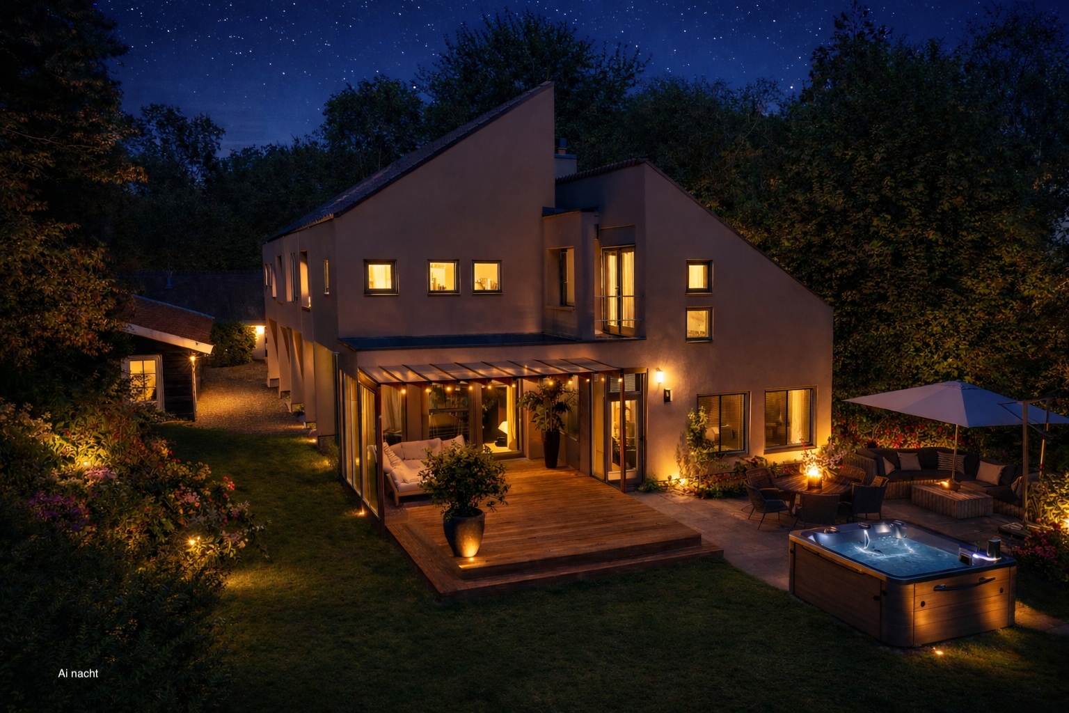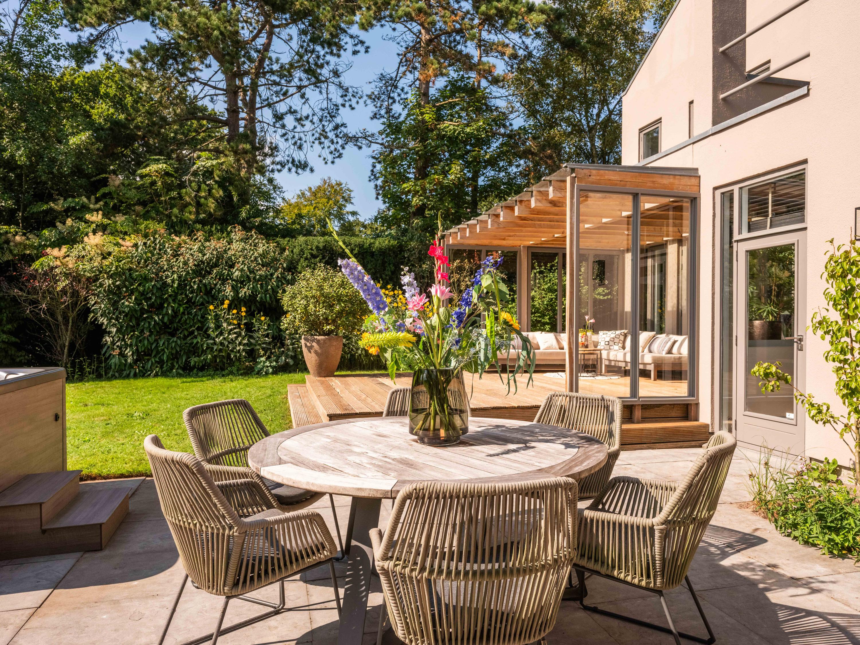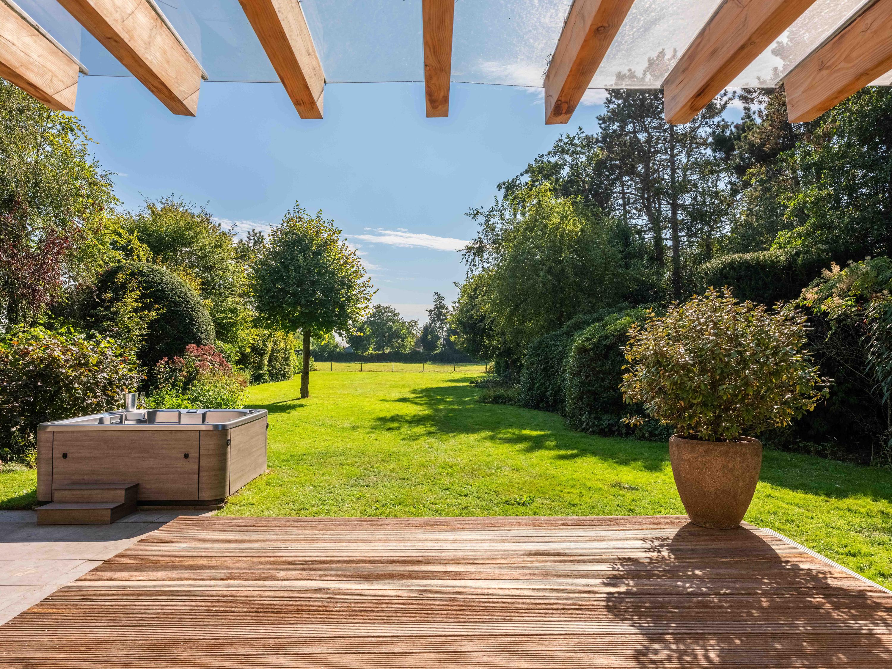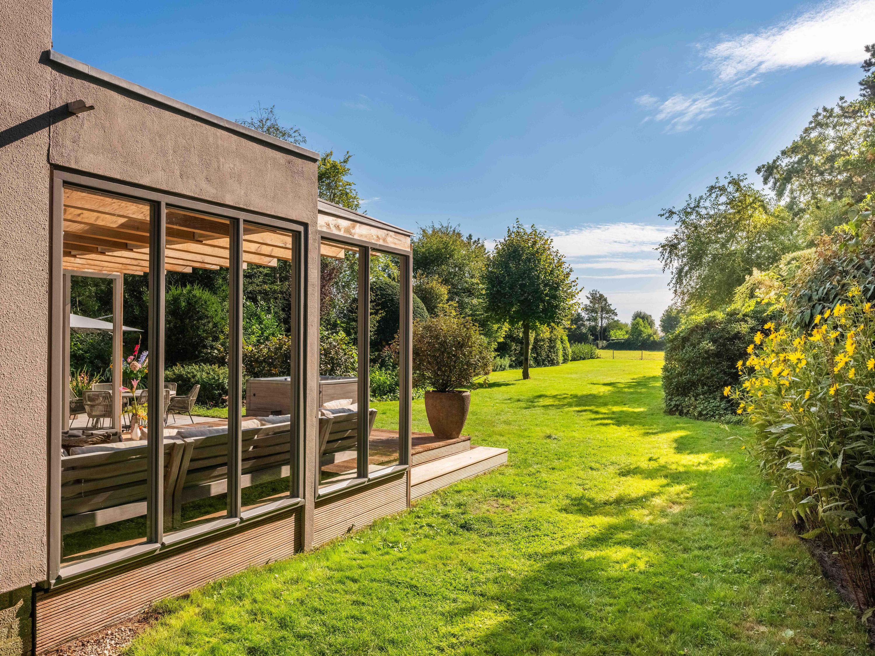 La villa Bergen se dresse dans un cadre d’une quiétude rare, avec de vastes prairies à perte de vue et une intimité totale, sublimée par un portail d’artiste à l’entrée. Ce domaine conjugue histoire et modernité avec subtilité. En façade du terrain de 2 684 m², une ferme au toit de chaume du milieu du XVIIIe siècle, entièrement rénovée en 2014, signe un accueil élégant et authentique. Cette dépendance parfaitement aménagée offre la flexibilité d’un bureau à domicile, d’un atelier ou d’un espace de vie d’appoint, fidèle à ses origines.