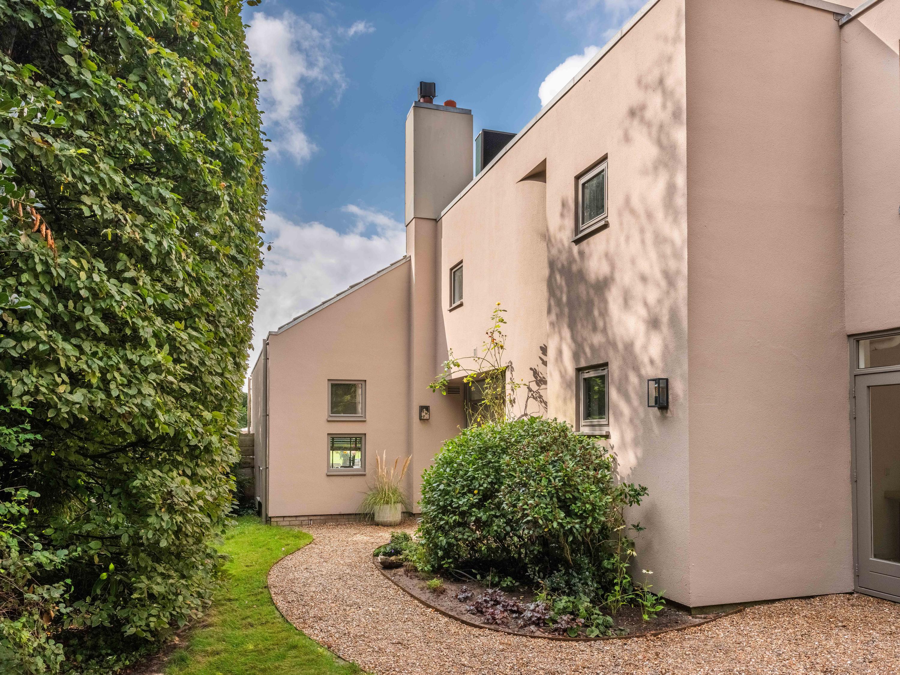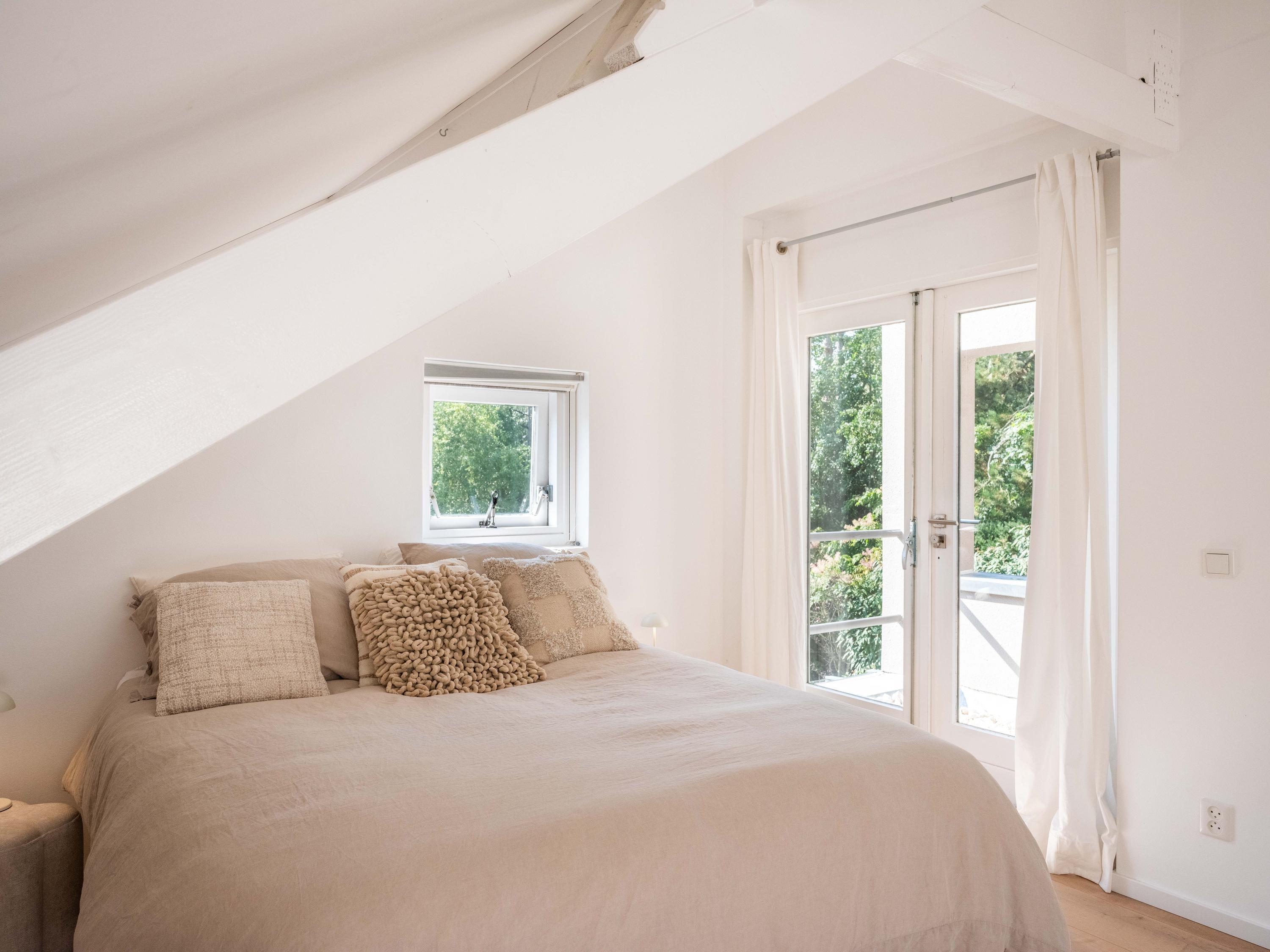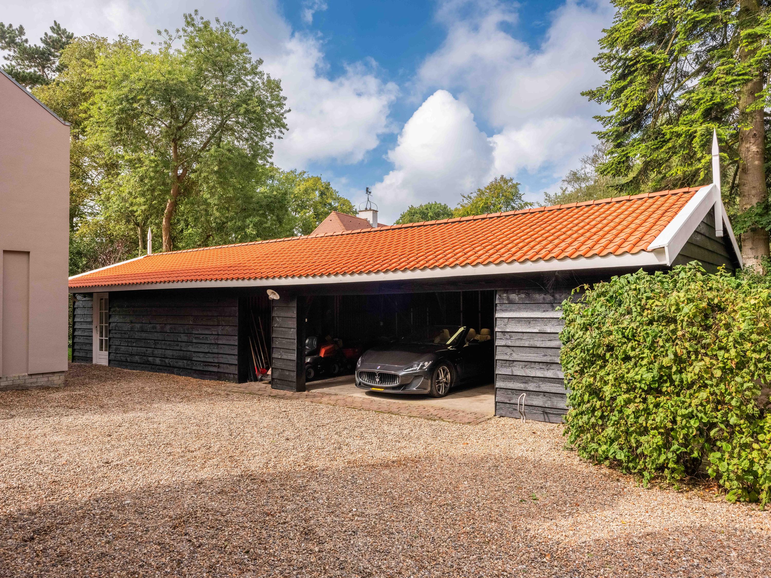 Un carport en bois abrite plusieurs véhicules et s’étend sur un atelier déjà préparé pour accueillir des équipements bien-être. À l’arrière, le jardin paysager invite tantôt au recueillement, tantôt à la convivialité, avec plusieurs terrasses idéalement orientées pour profiter de la lumière et des vues pastorales. Ici, à seulement quelques minutes du centre vivant de Bergen et du littoral, architecture intemporelle et douceur de la nature se marient dans une proposition d’exception.