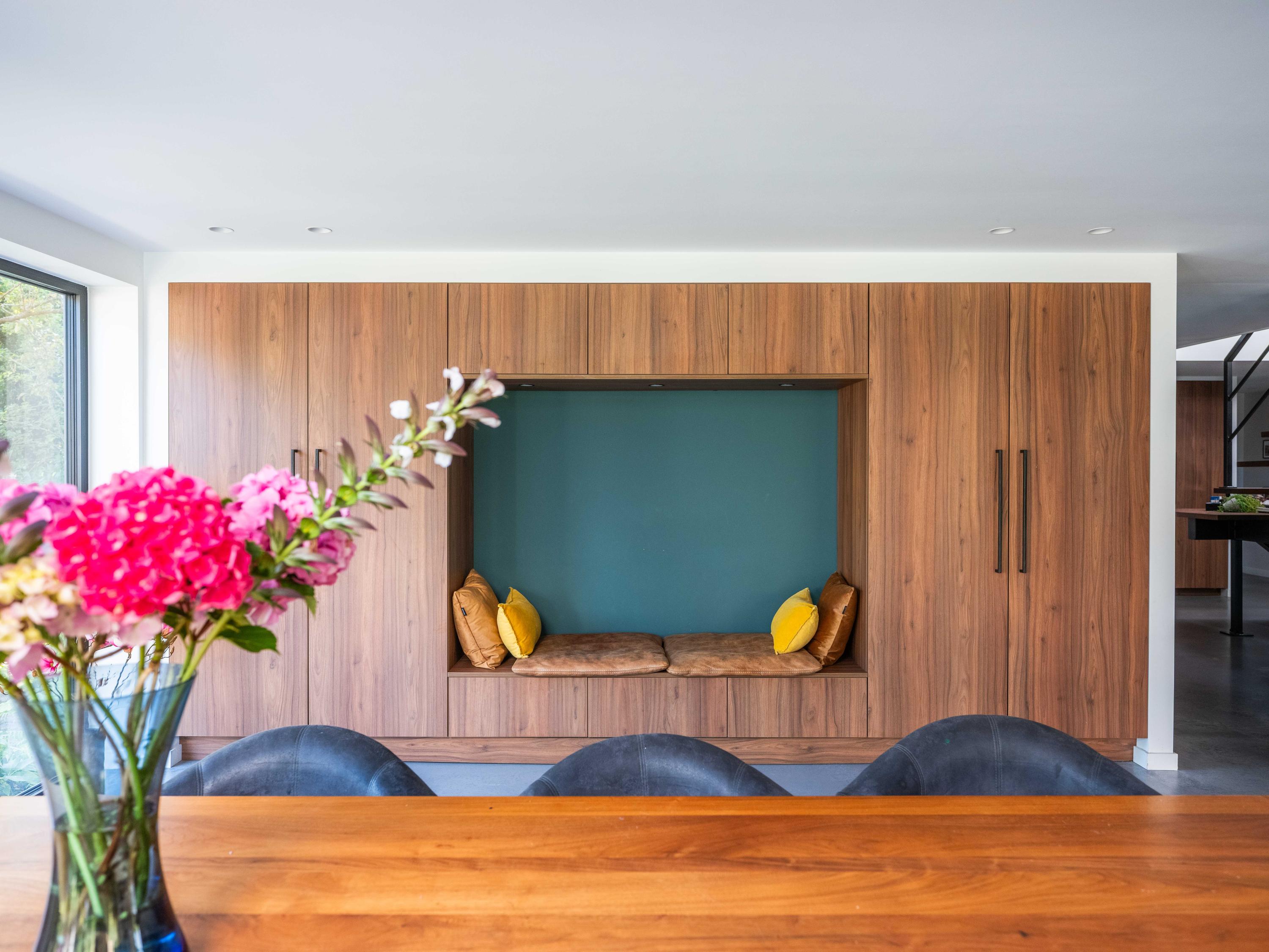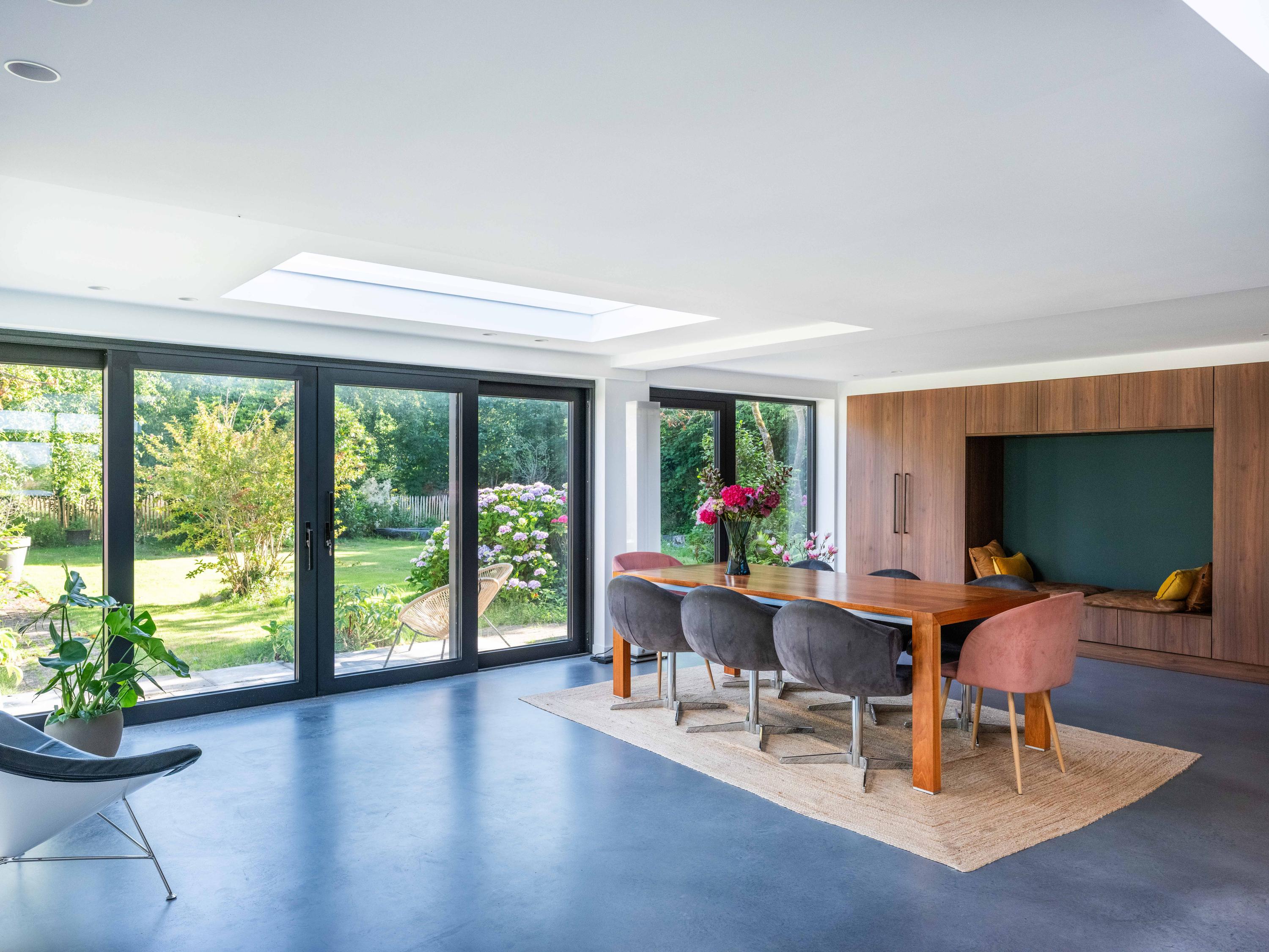 Le rez-de-chaussée baigné de lumière s’ouvre sur un hall d'entrée conçu sur mesure, un séjour chaleureux aux vues dégagées et une cuisine équipée d’appareils haut de gamme, d’une armoire à vin climatique et d’un mur architectural en noyer révélant un espace utilitaire dissimulé. La suite principale, également au rez-de-chaussée, dispose d’un dressing et d’une salle de bain type spa avec douche à l’italienne, baignoire, double vasque, chauffage au sol et accès direct à la quiétude du jardin.