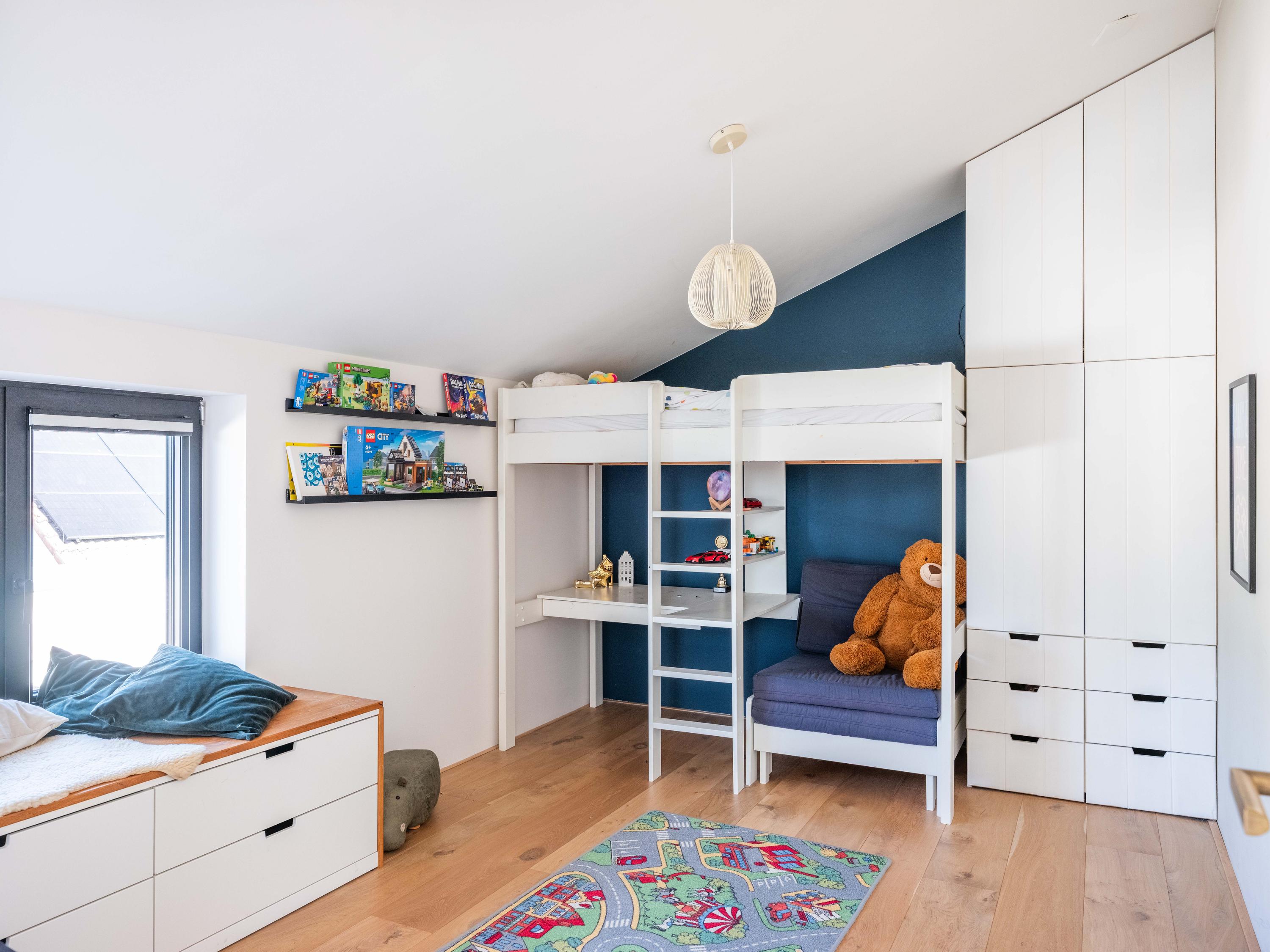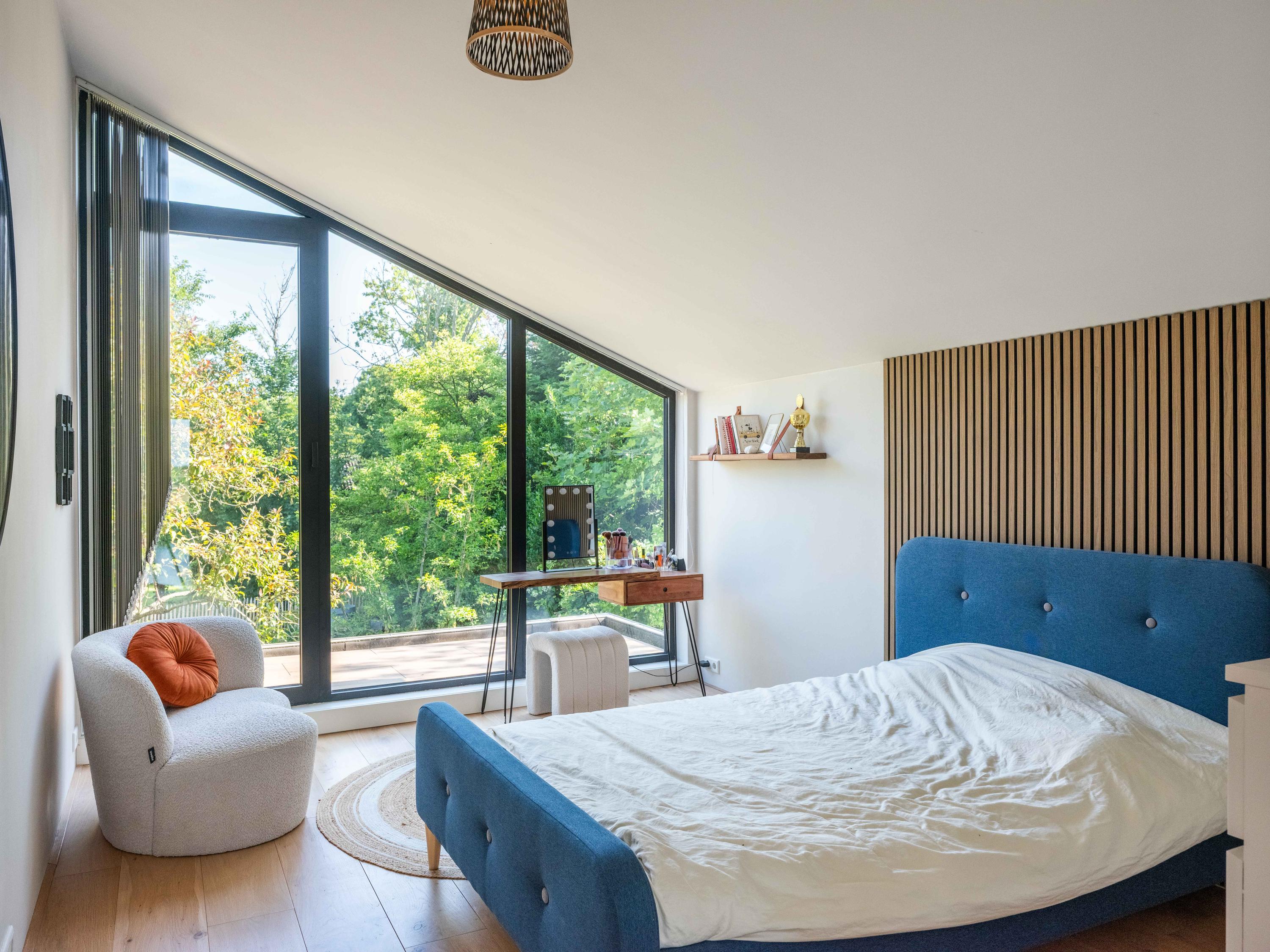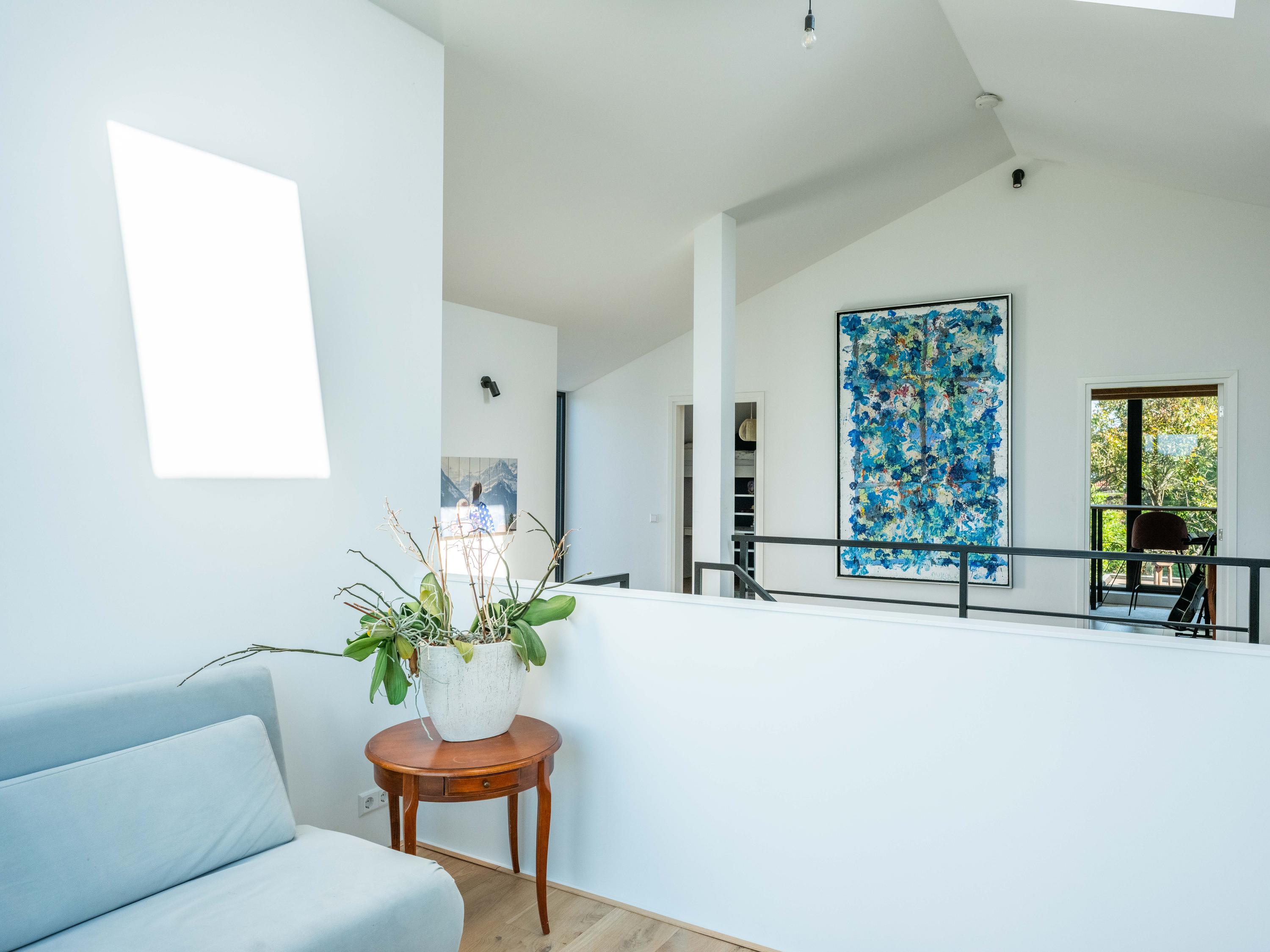 À l’étage, trois chambres, un bureau polyvalent avec vue panoramique, une salle de yoga et une mezzanine à la conception ludique répondent à la fois à la vie de famille et aux projets créatifs. Une seconde salle de bain complète, une buanderie séparée et un soin du détail constant offrent un confort réfléchi.